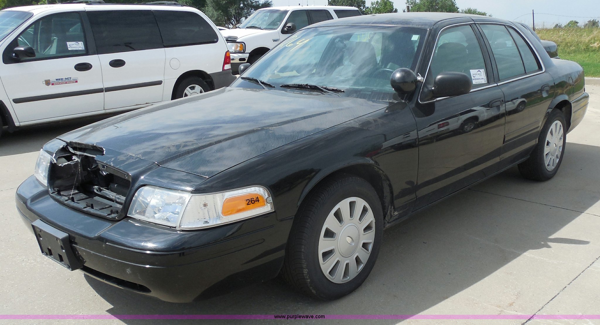Purple Wave is selling a used Passenger Vehicle in Kansas. This item is a 2008 Ford Crown Victoria with the following: 112,740 miles on odometer, Gas engine, Automatic transmission, AC and heat, Tilt, Cruise, AM/FM, Power windows, locks, and mirrors, Cloth interior, Spotlight, 235/55ZR17 tires, Front end damage, Unit# SHR264