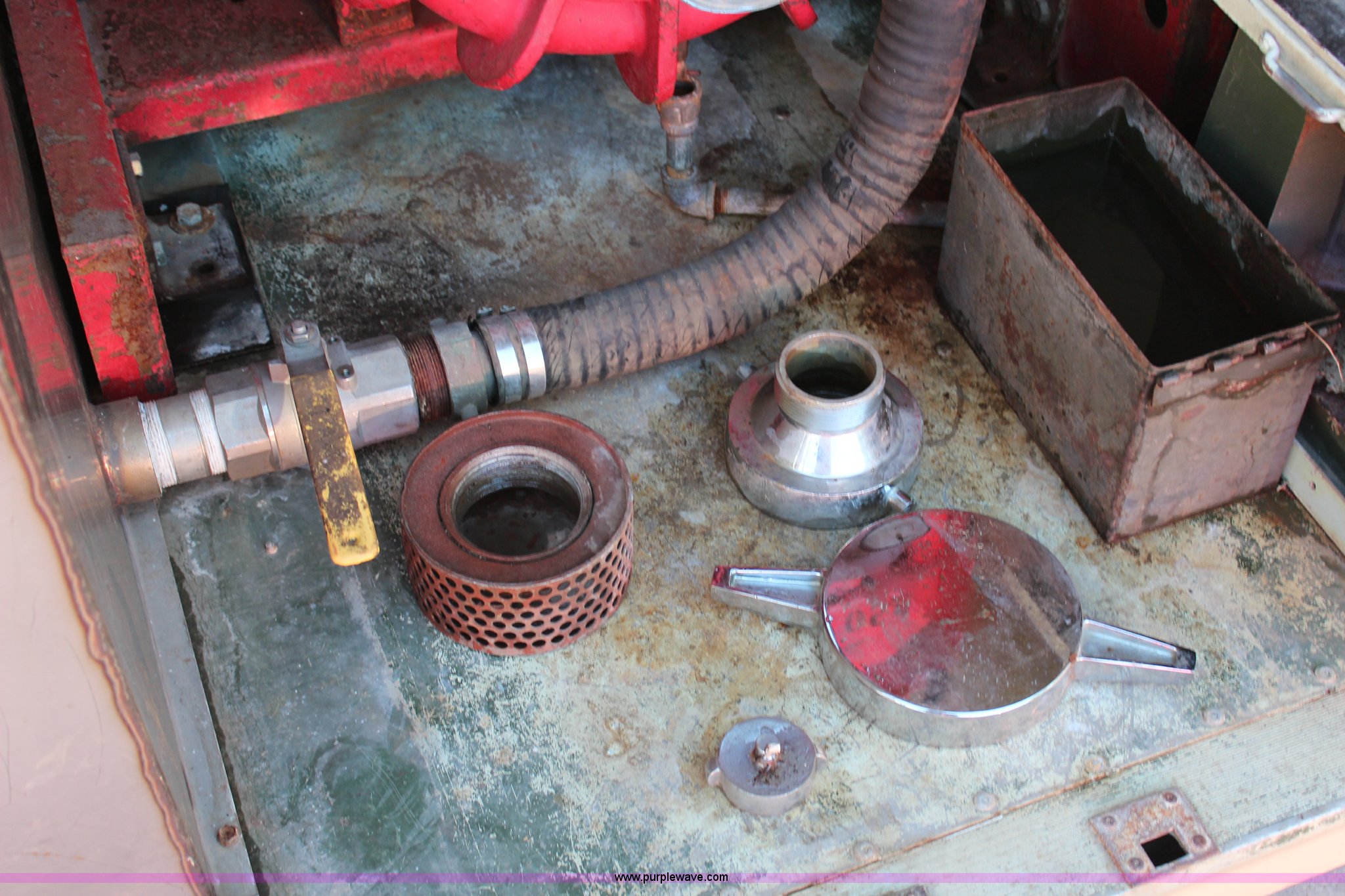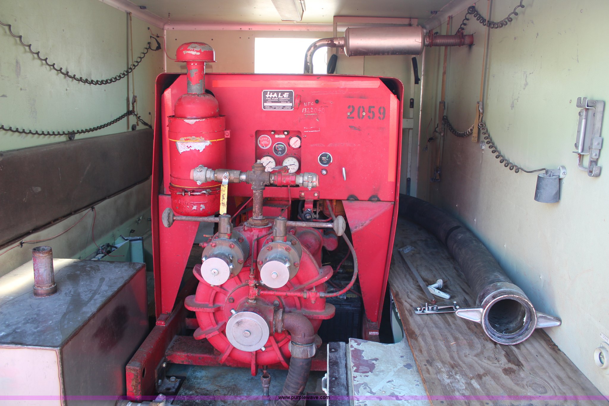 Purple Wave is selling a used Pump in Kansas. This item is a Hale 40FA-HD236 pump with the following: International 236 cu. in. six cylinder diesel engine, 500 gallon per minute capacity, 9'5"L x 6'5"W box, Batteries are dead, Unknown running condition, Serial 51612