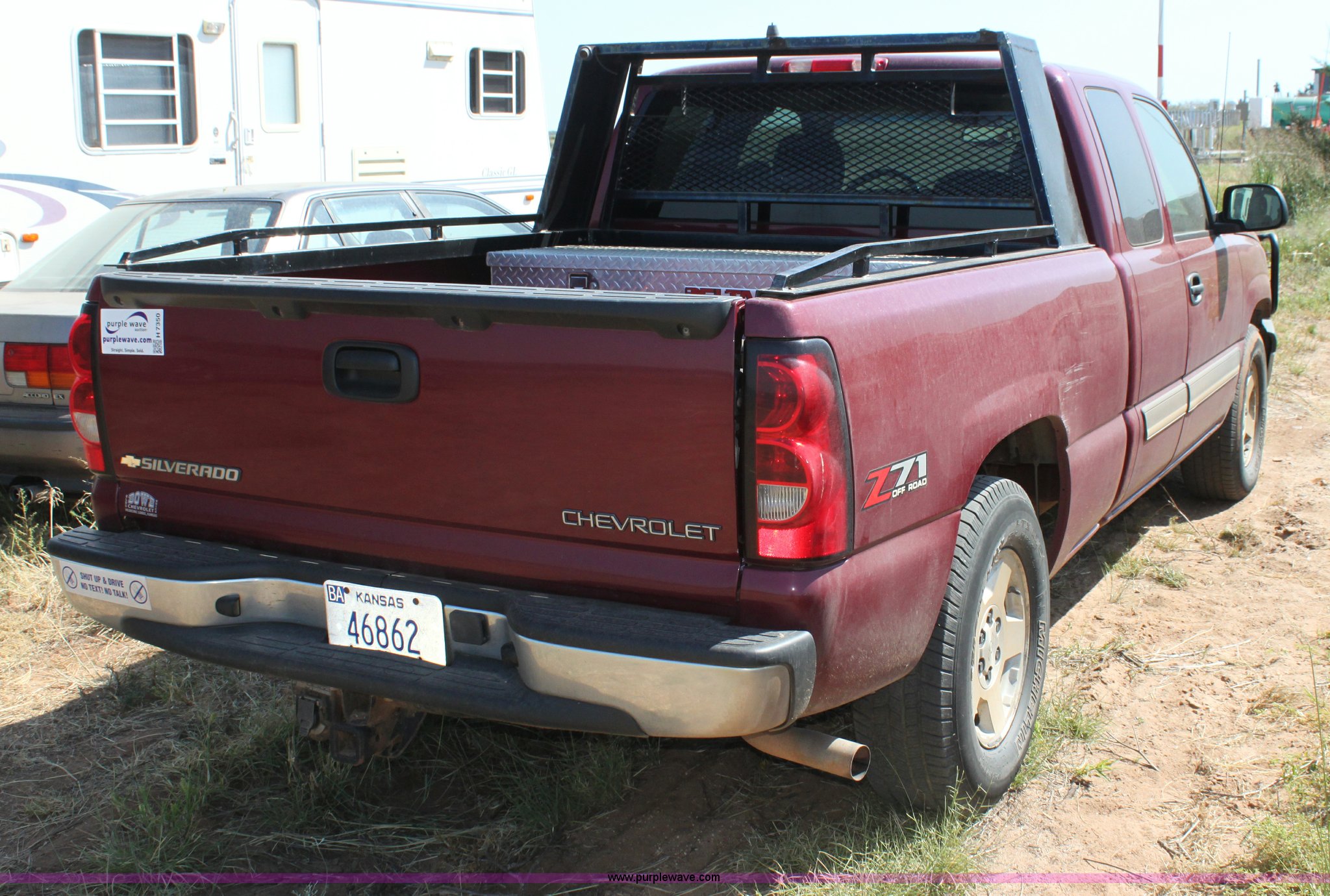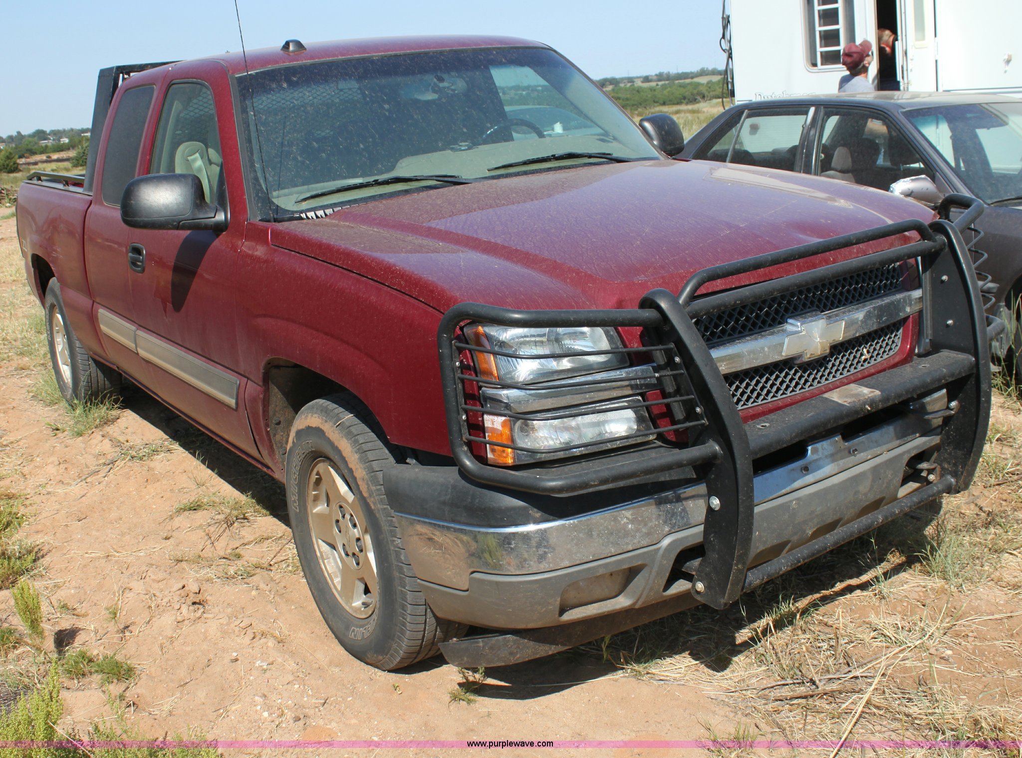 Purple Wave is selling a used Passenger Vehicle in Kansas. This item is a 2005 Chevrolet Silverado 1500 Ext. Cab pickup truck with the following: 257,696 miles on odometer, 5.3L V8 OHV 16V gas engine, Engine replaced approximately 80,000 miles ago, Automatic transmission, AC and heat, Dual climate control, Tilt, Cruise, AM/FM/CD, Power windows, locks, and mirrors, Grill guard, Loose, 265/70R17 tires