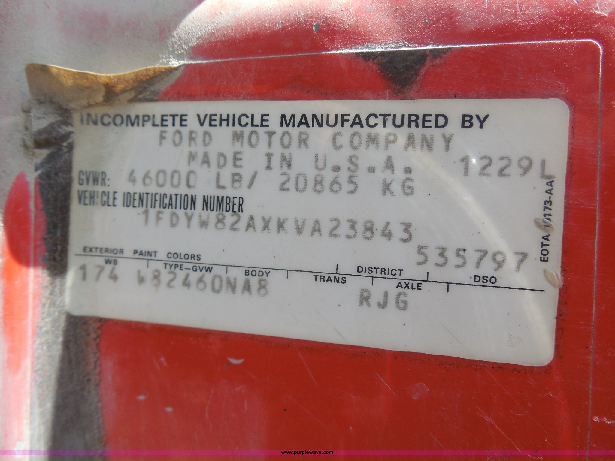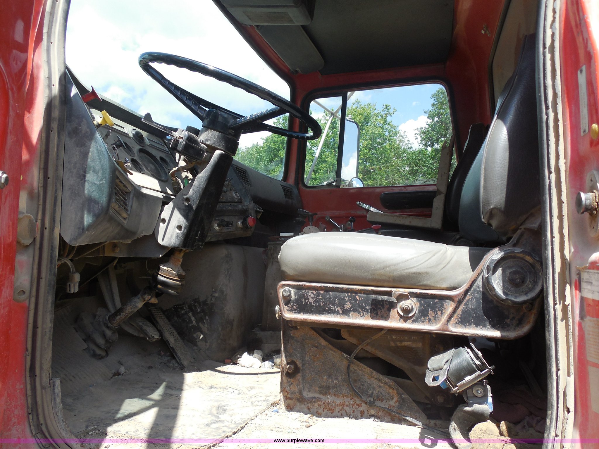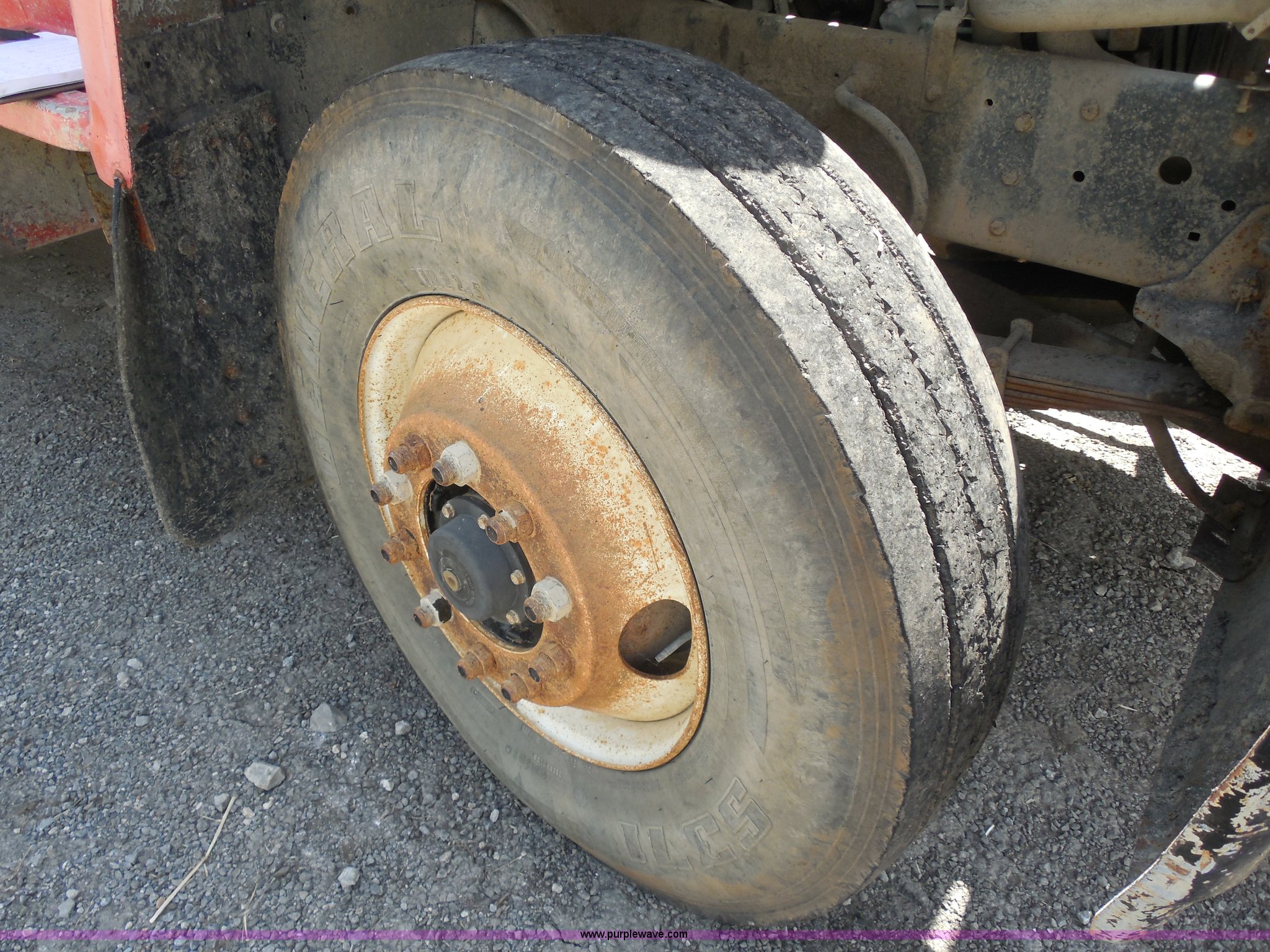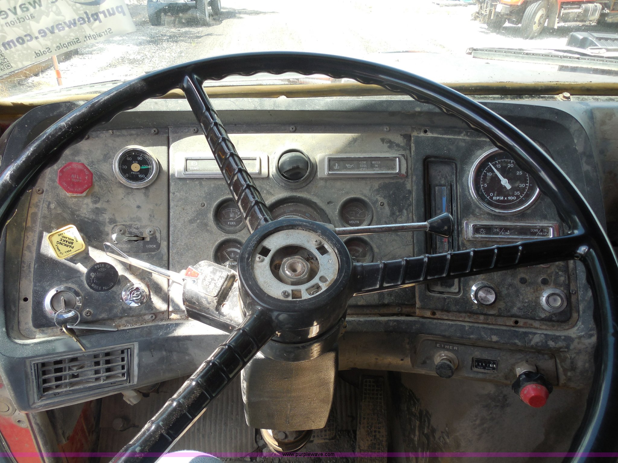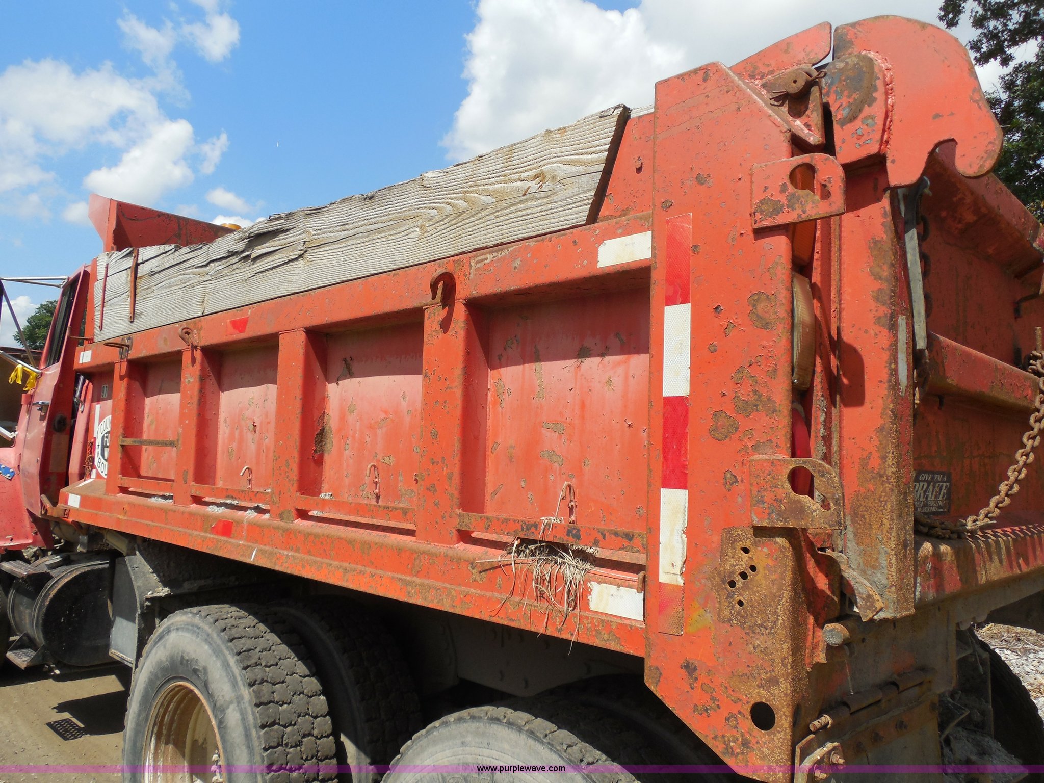 Purple Wave is selling a used Construction Dump Truck in Kansas. This item is a 1989 Ford LNT8000 dump truck with the following: 280,523 miles on odometer, 5,567 hours on meter, 7.8L L6 turbo diesel engine, Automatic transmission, Heat, AM/FM, 8'L dump bed, Manual end gate, 50 gallon fuel tank, Pintle hitch, PTO, Spring suspension, 174" wheelbase, 11R24.5 tires, GVWR 46,000 lbs
