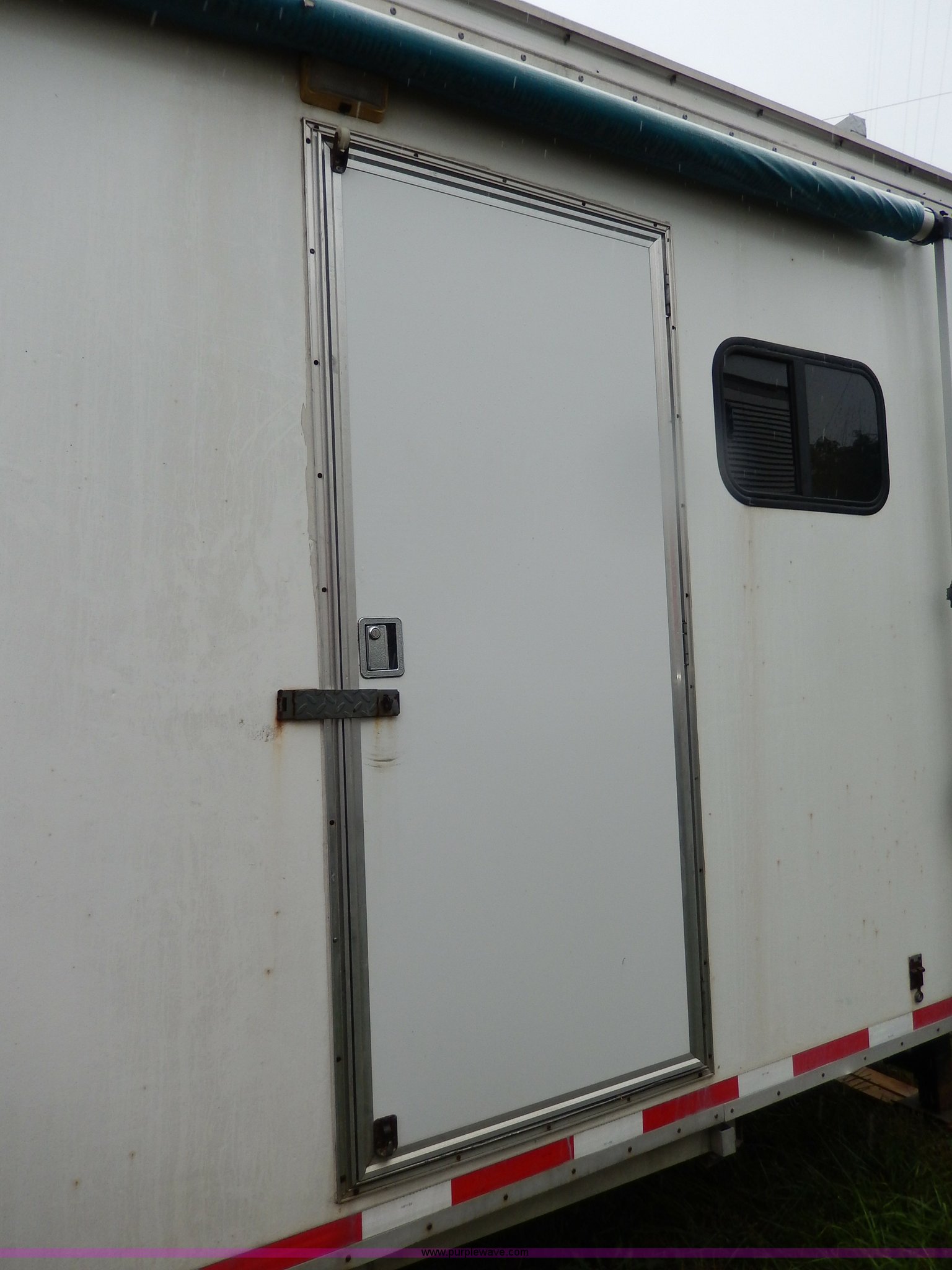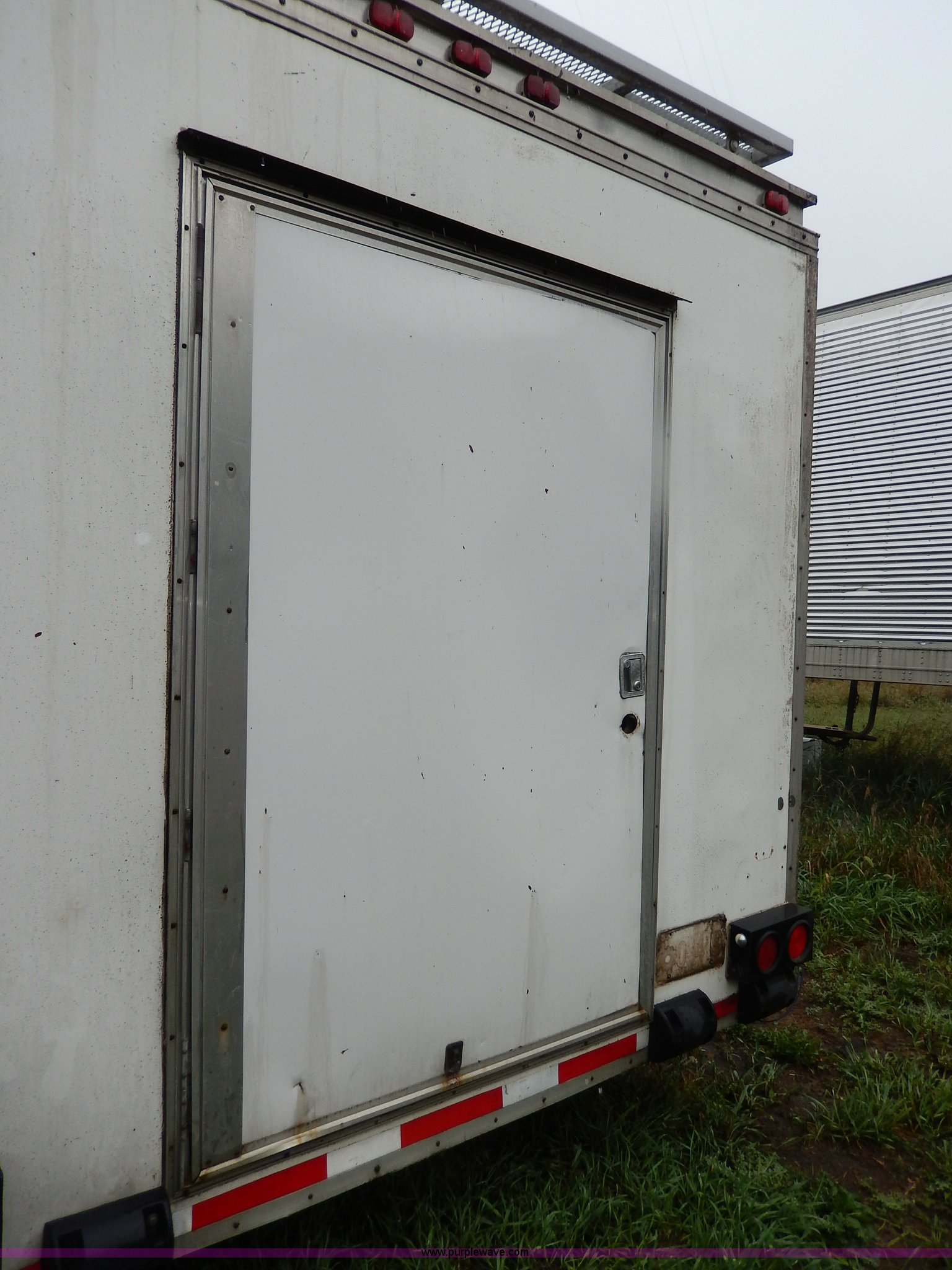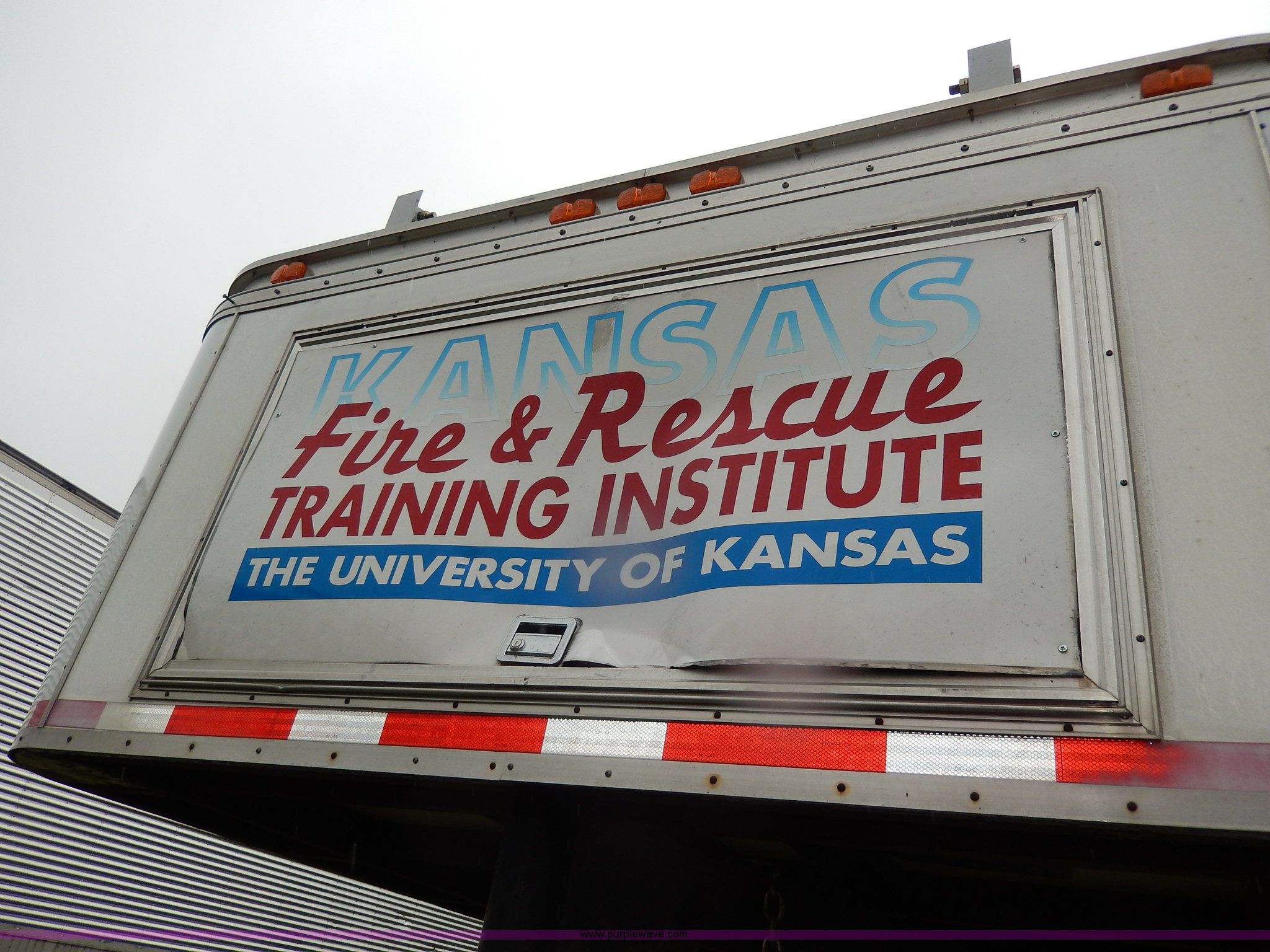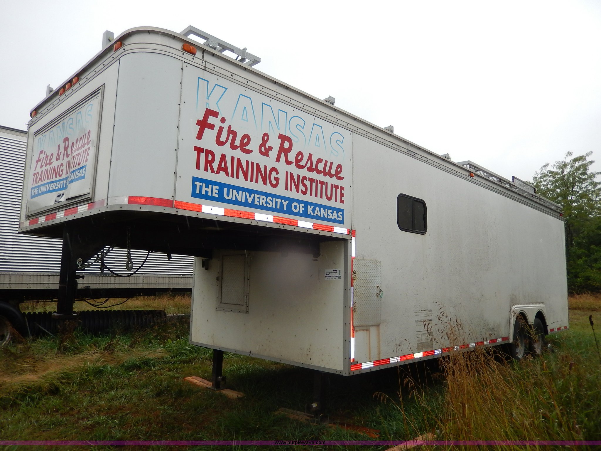 Purple Wave is selling a used Enclosed Cargo Trailer in Kansas. This item is a 1994 Speedwagon fifth wheel fire rescue simulator trailer with the following: 24'L main body, 88"H interior, 7'L tongue, 102"W, Outlet compartment, Hide-away jack handle compartment, Awning, Rear and side door entry, Interior dead bolt, 8' ramp, Stairs to top side, Retractable side rails and roof simulator for drills, Lights, Safety chains, 235/85R16 tires, GVWR 12,000 lbs