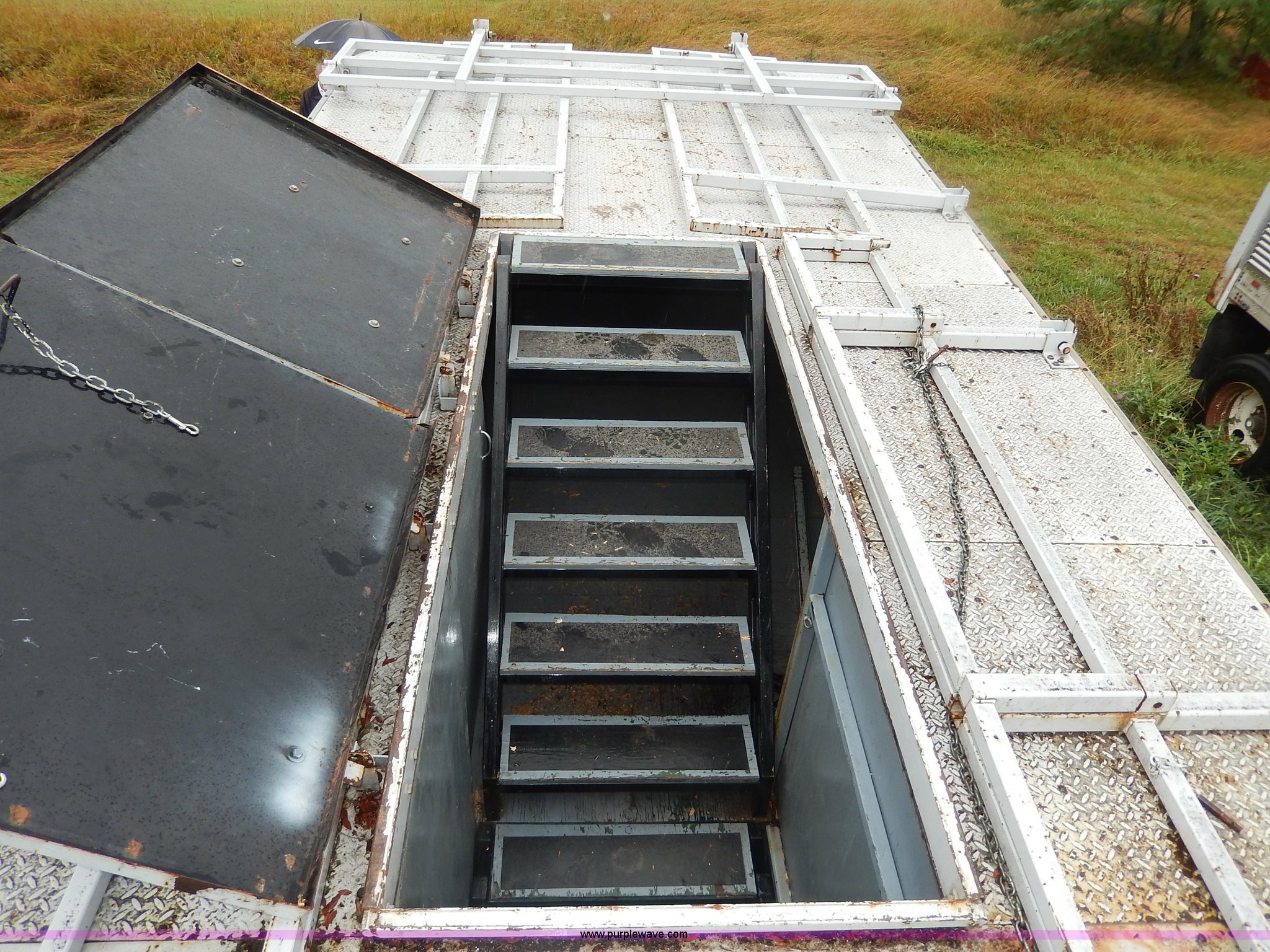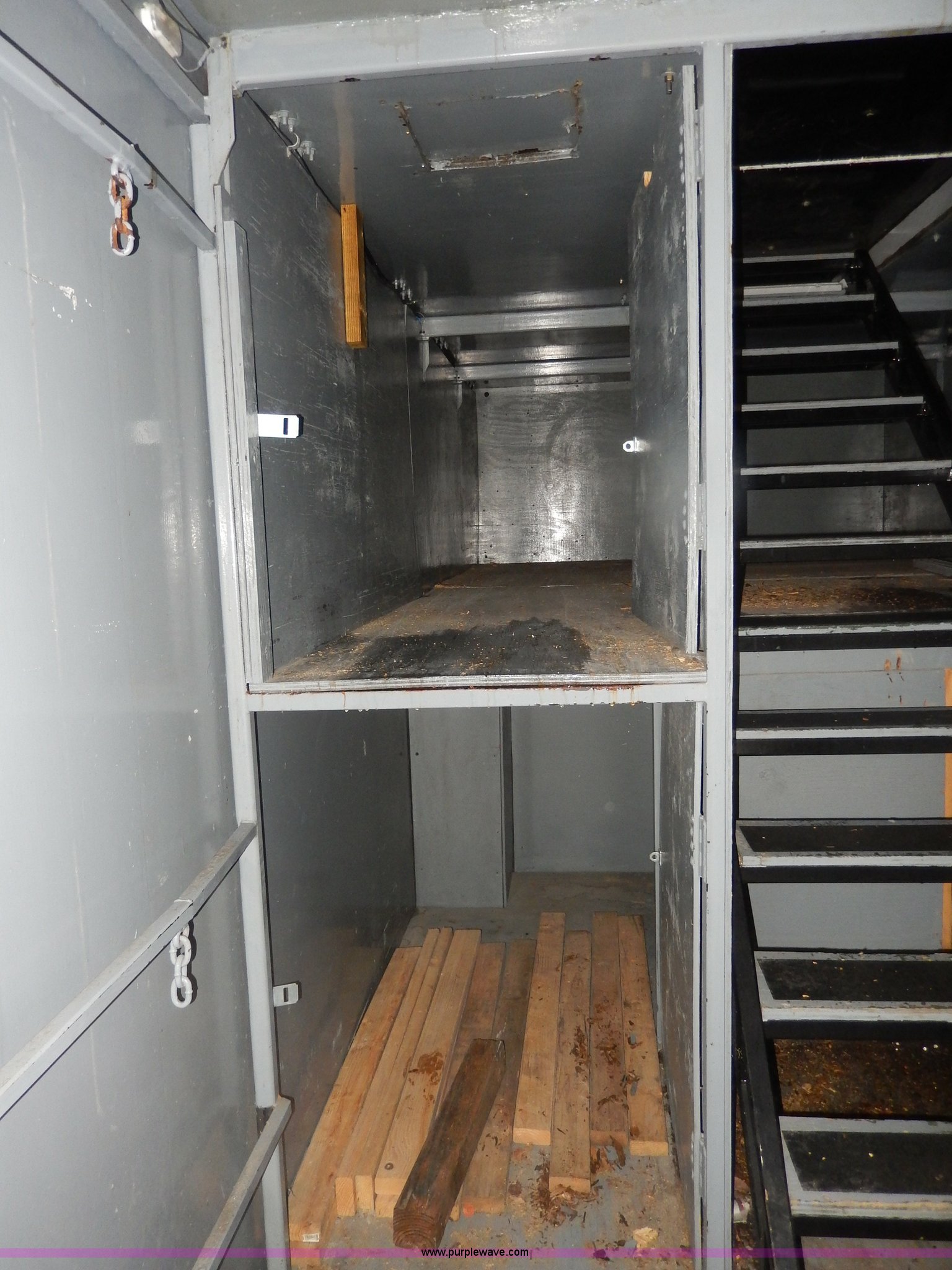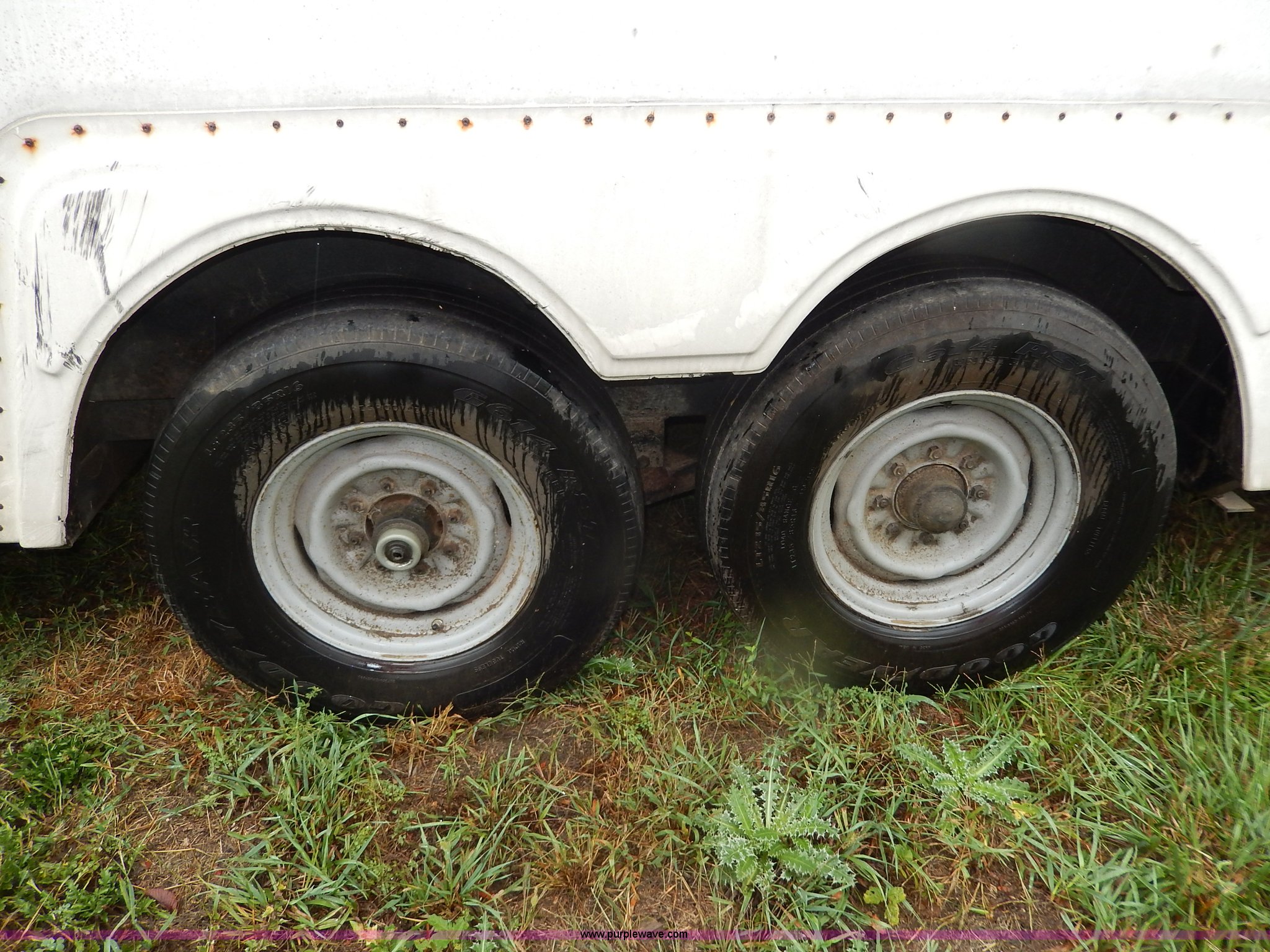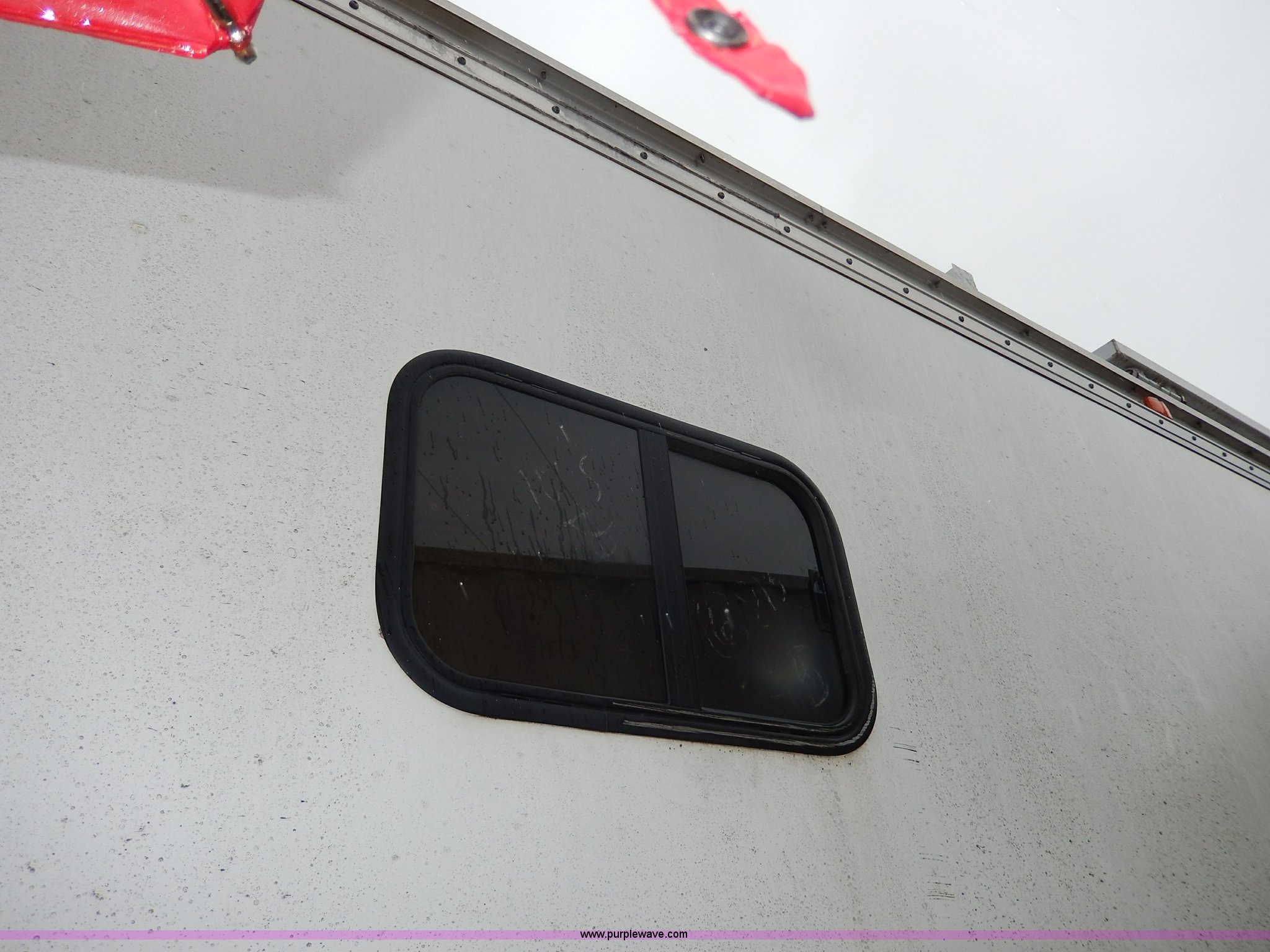 Purple Wave is selling a used Enclosed Cargo Trailer in Kansas. This item is a 1994 Speedwagon fifth wheel fire rescue simulator trailer with the following: 24'L main body, 88"H interior, 7'L tongue, 102"W, Outlet compartment, Hide-away jack handle compartment, Awning, Rear and side door entry, Interior dead bolt, 8' ramp, Stairs to top side, Retractable side rails and roof simulator for drills, Lights, Safety chains, 235/85R16 tires, GVWR 12,000 lbs