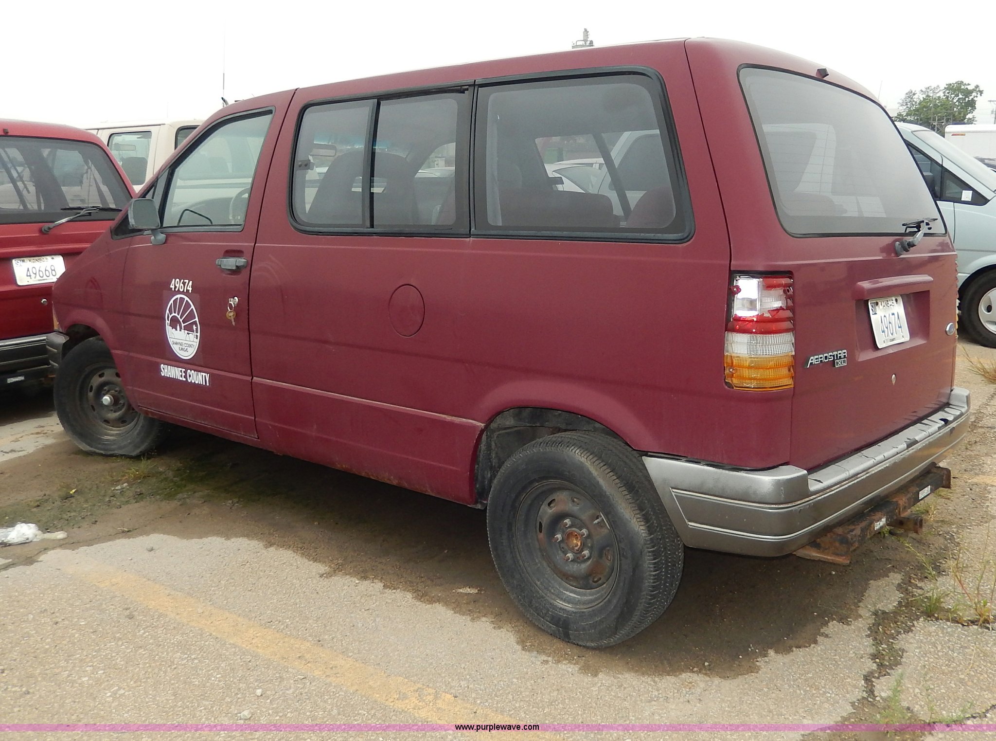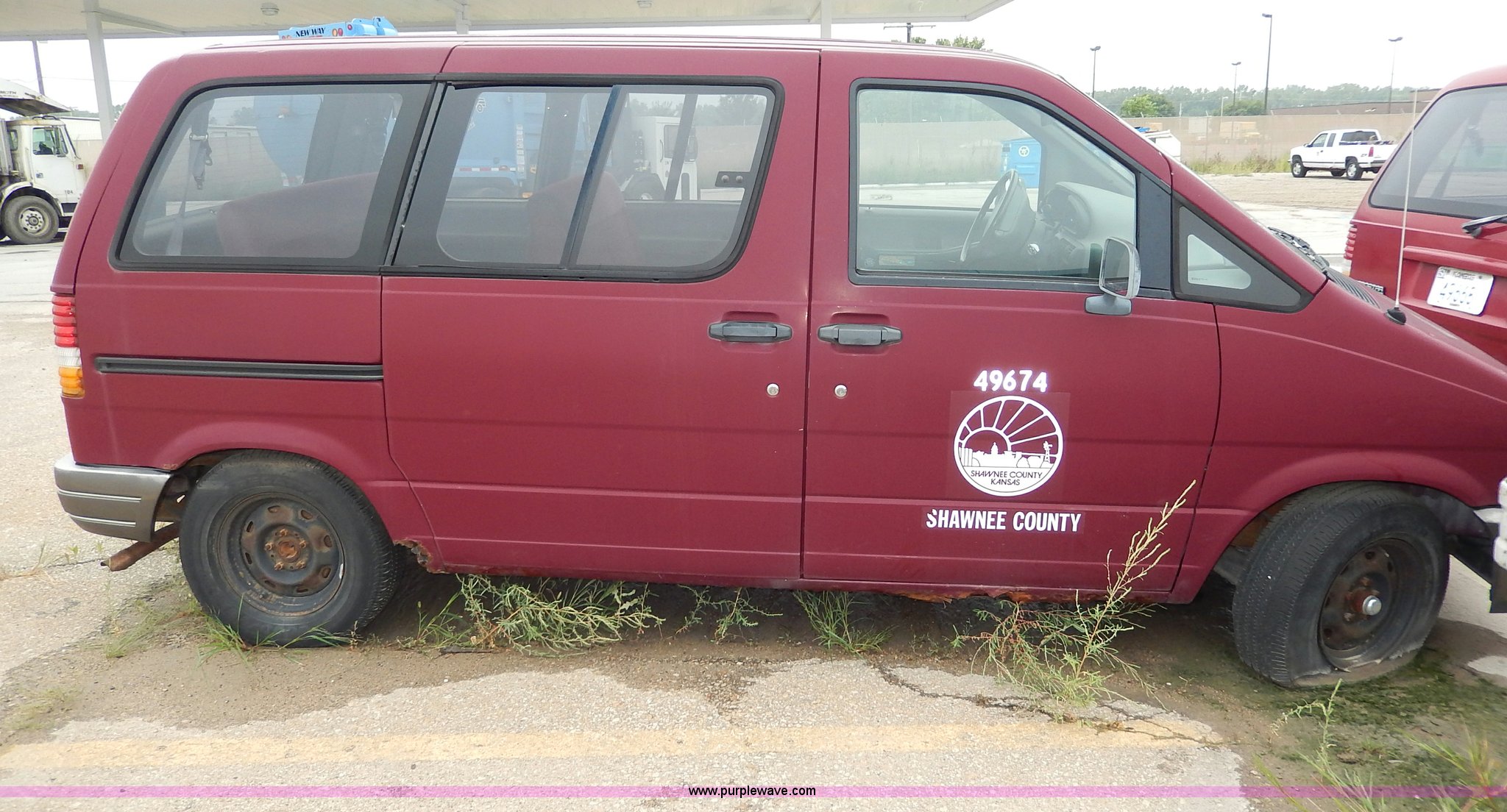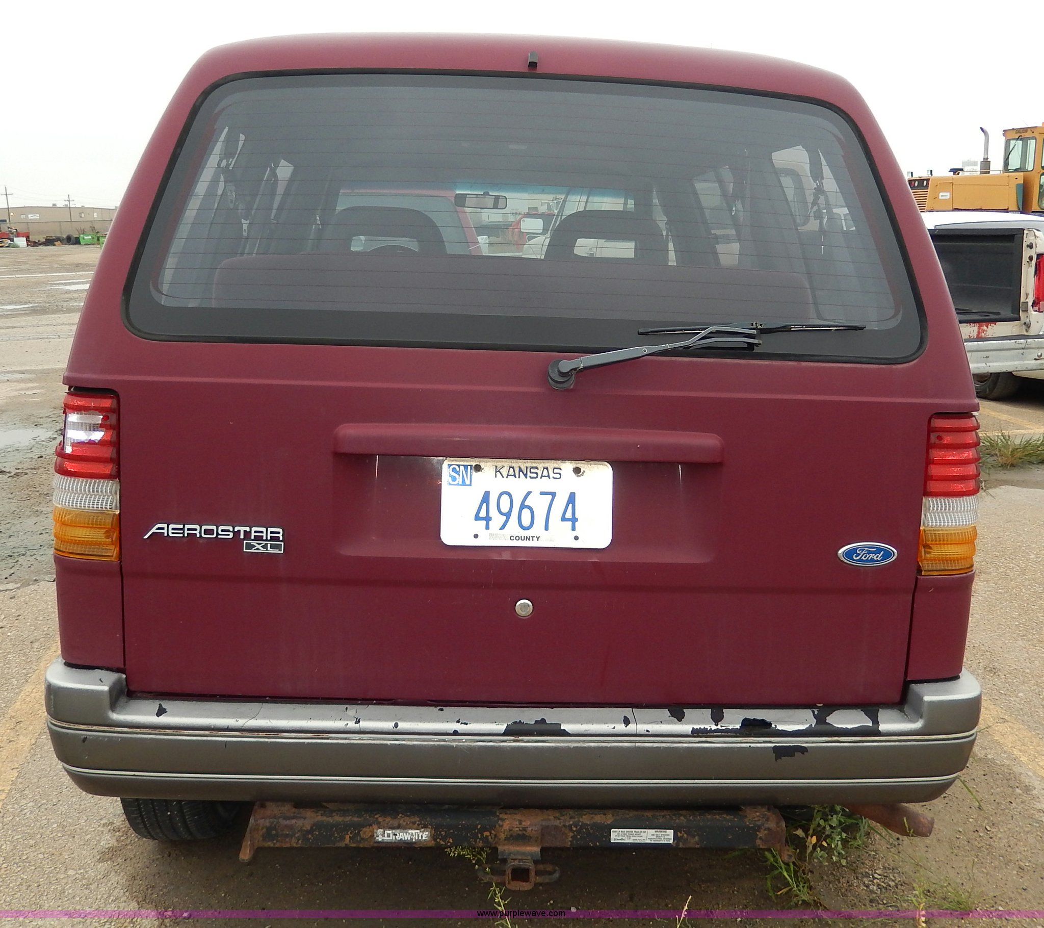 Purple Wave is selling a used Passenger Vehicle in Kansas. This item is a 1993 Ford Aerostar XL van with the following: 92,220 miles on odometer, 3.0L V6 OHV 12V gas engine, Engine needs replaced, Water in oil, Automatic transmission, AC and heat, AM/FM, Manual windows and locks, Cloth interior, Receiver hitch, 215/70R14 tires, Flat, Windshield cracked, Tailgate cracked, Rear bumper cosmetic damage, Rust, Paint faded, Battery dead, Unit# 49674