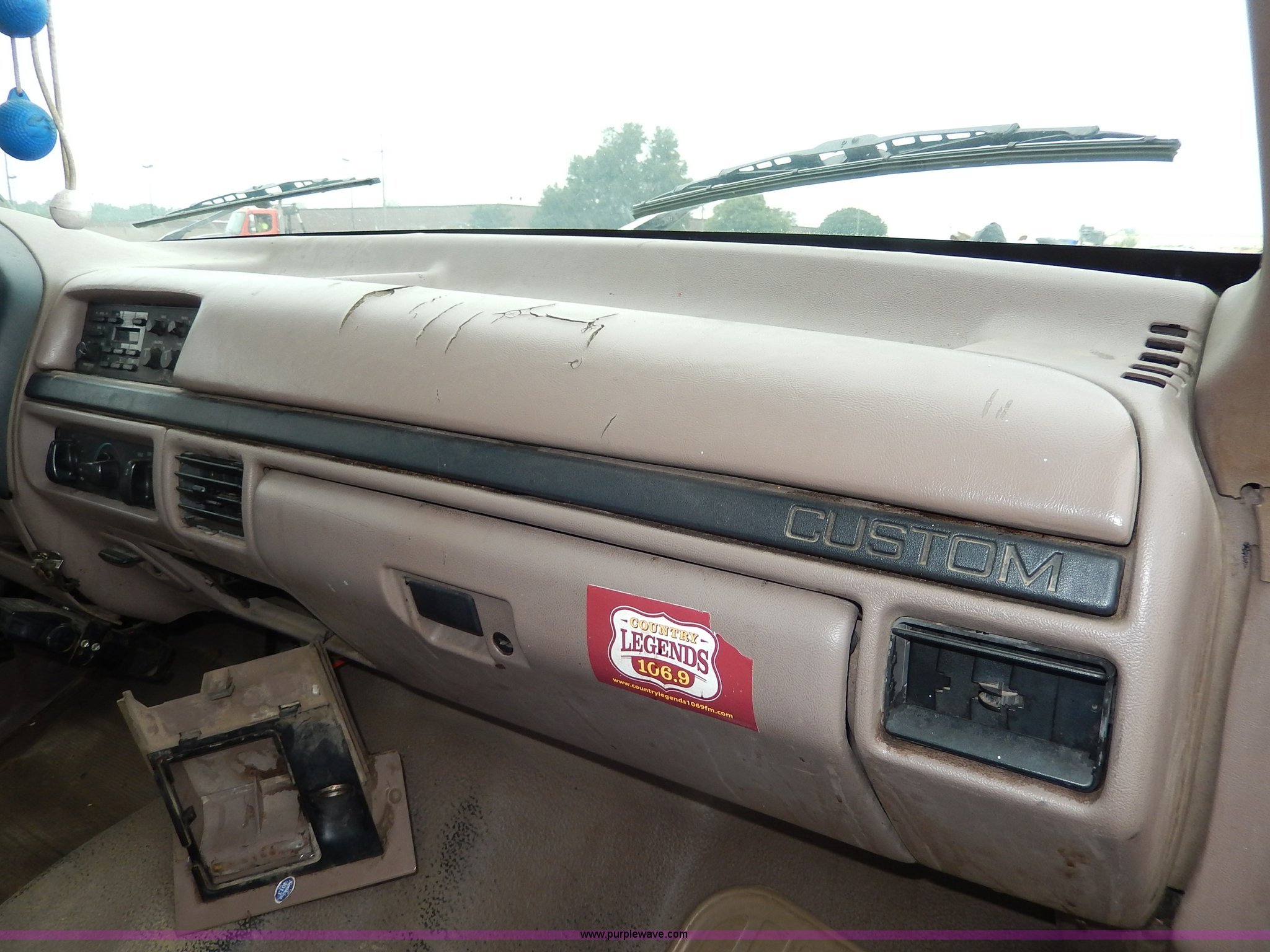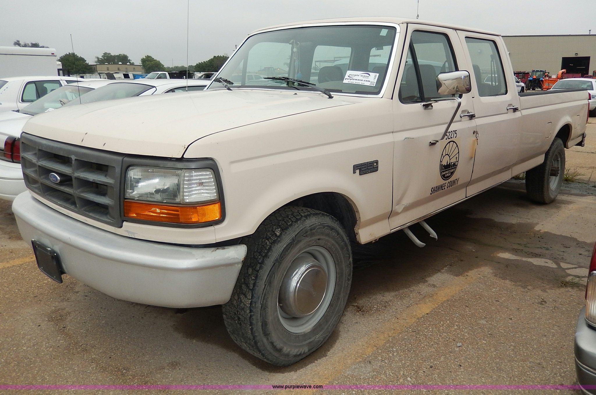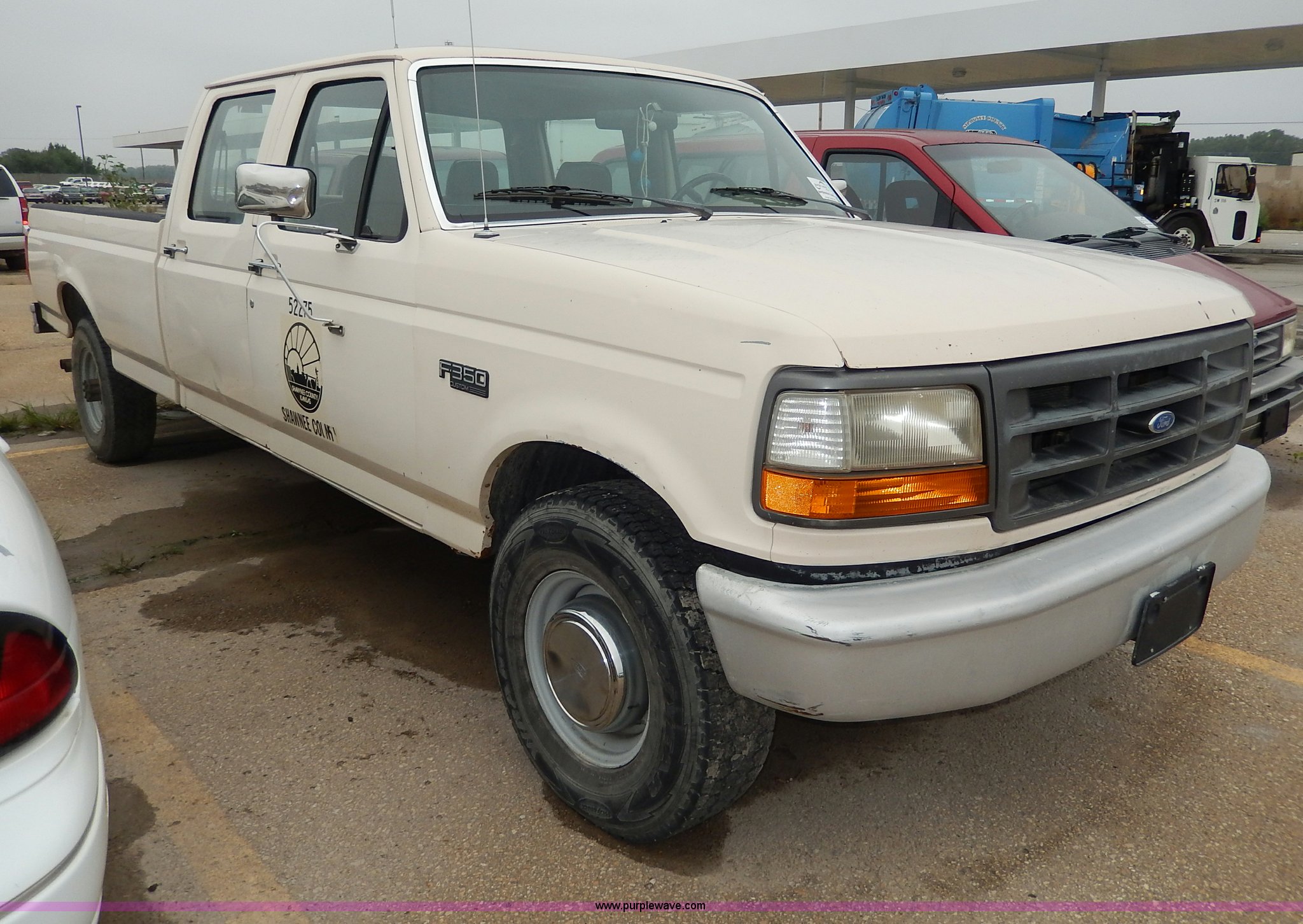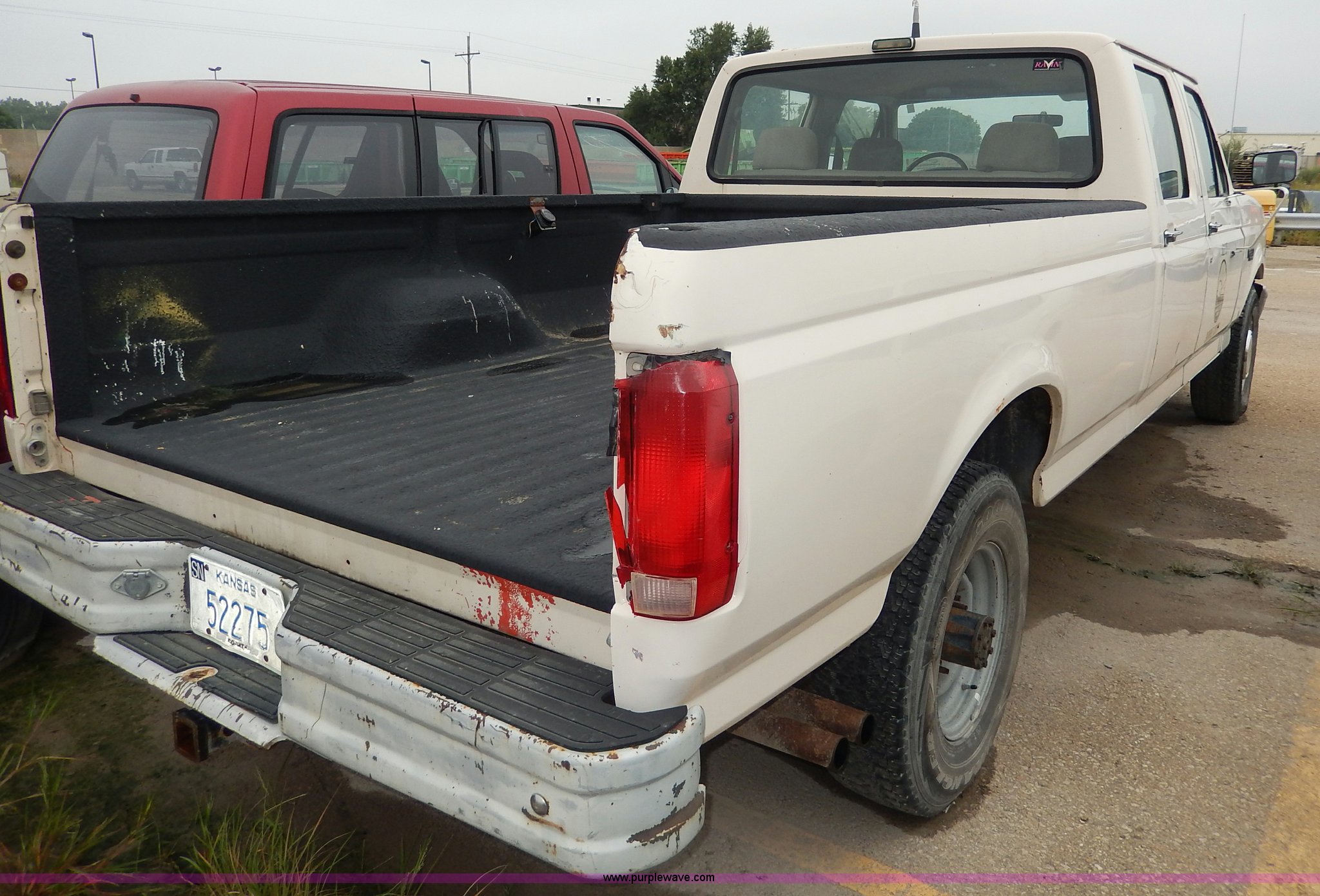 Purple Wave is selling a used Passenger Vehicle in Kansas. This item is a 1992 Ford F350 Custom pickup truck with the following: 153,242 miles on odometer, 5.8L V8 OHV 16V gas engine, Engine inoperable, Automatic transmission, AC and heat, AM/FM, Manual windows and locks, Vinyl interior, Spray-in bed liner, Dual fuel tanks, Long bed, Receiver hitch, Trailer wiring, 235/85R16 tires, Tailgate missing, Exterior cosmetic damage, Scratched and dented, Battery dead, Hail damage, Unit# 52275