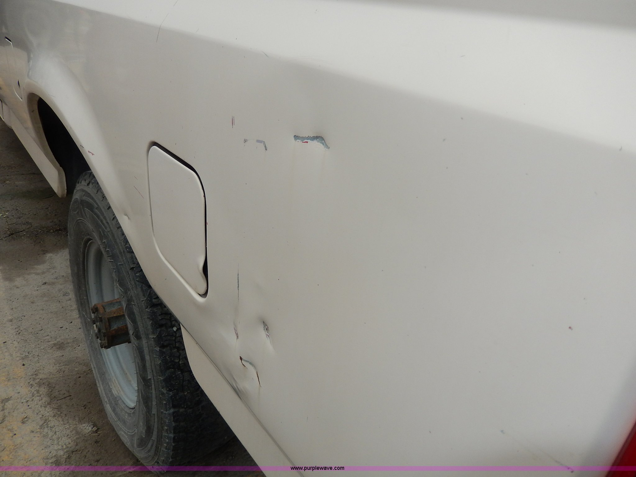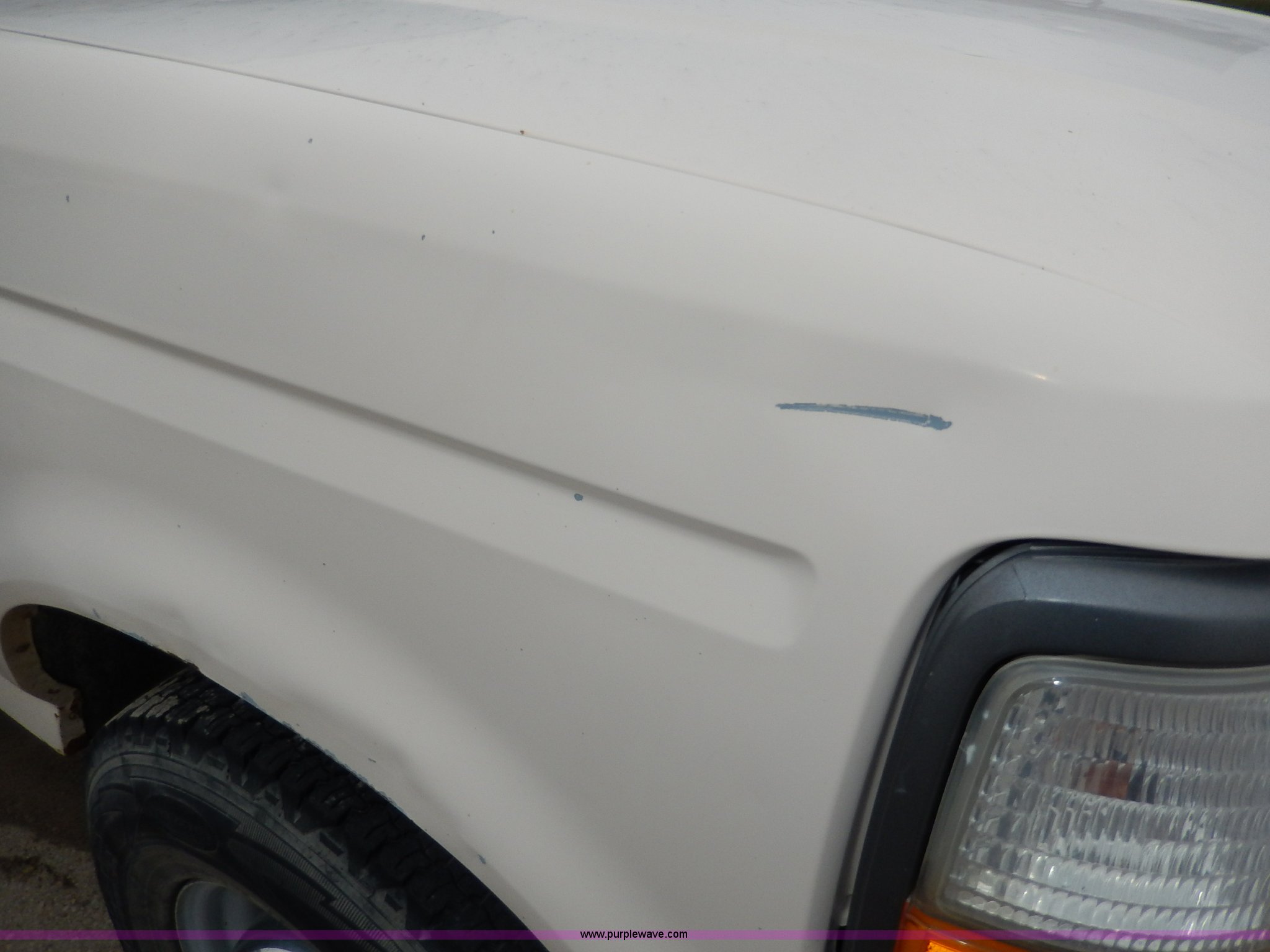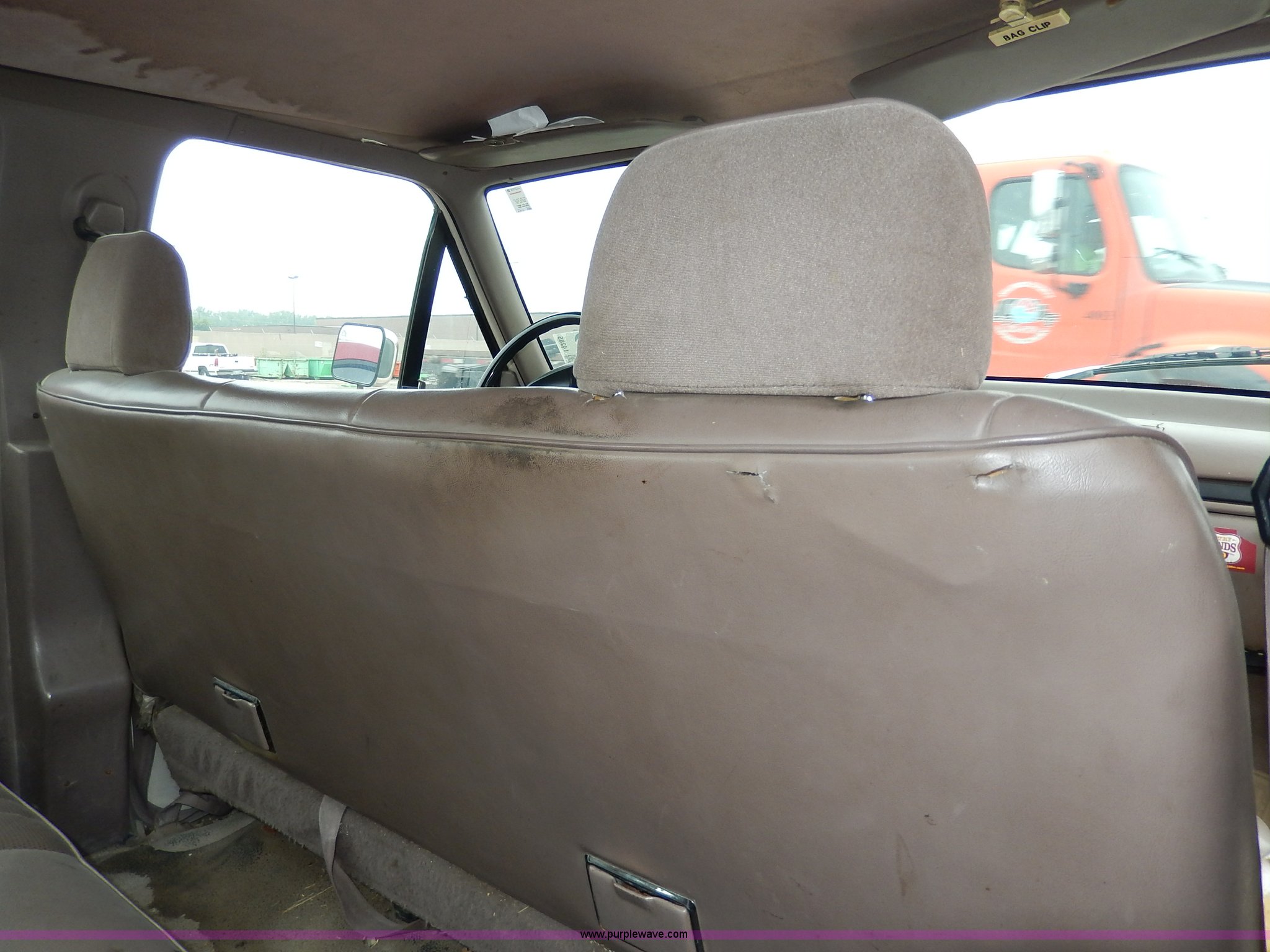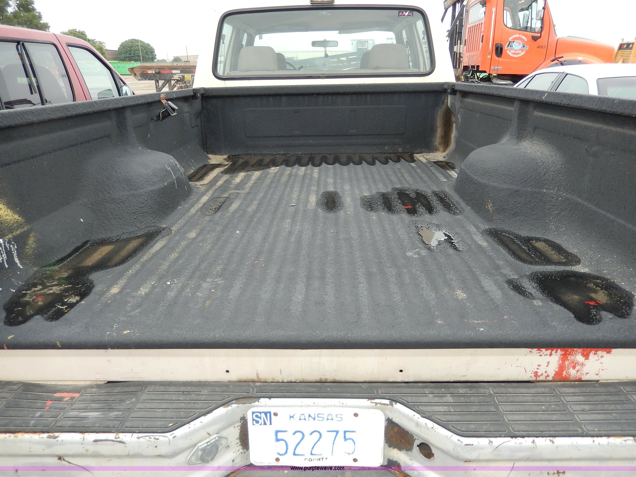 Purple Wave is selling a used Passenger Vehicle in Kansas. This item is a 1992 Ford F350 Custom pickup truck with the following: 153,242 miles on odometer, 5.8L V8 OHV 16V gas engine, Engine inoperable, Automatic transmission, AC and heat, AM/FM, Manual windows and locks, Vinyl interior, Spray-in bed liner, Dual fuel tanks, Long bed, Receiver hitch, Trailer wiring, 235/85R16 tires, Tailgate missing, Exterior cosmetic damage, Scratched and dented, Battery dead, Hail damage, Unit# 52275