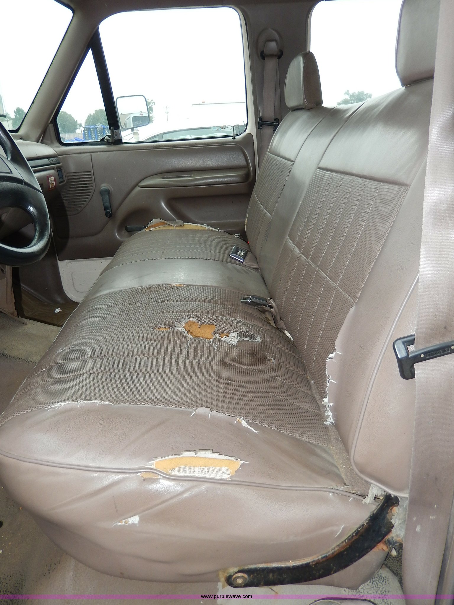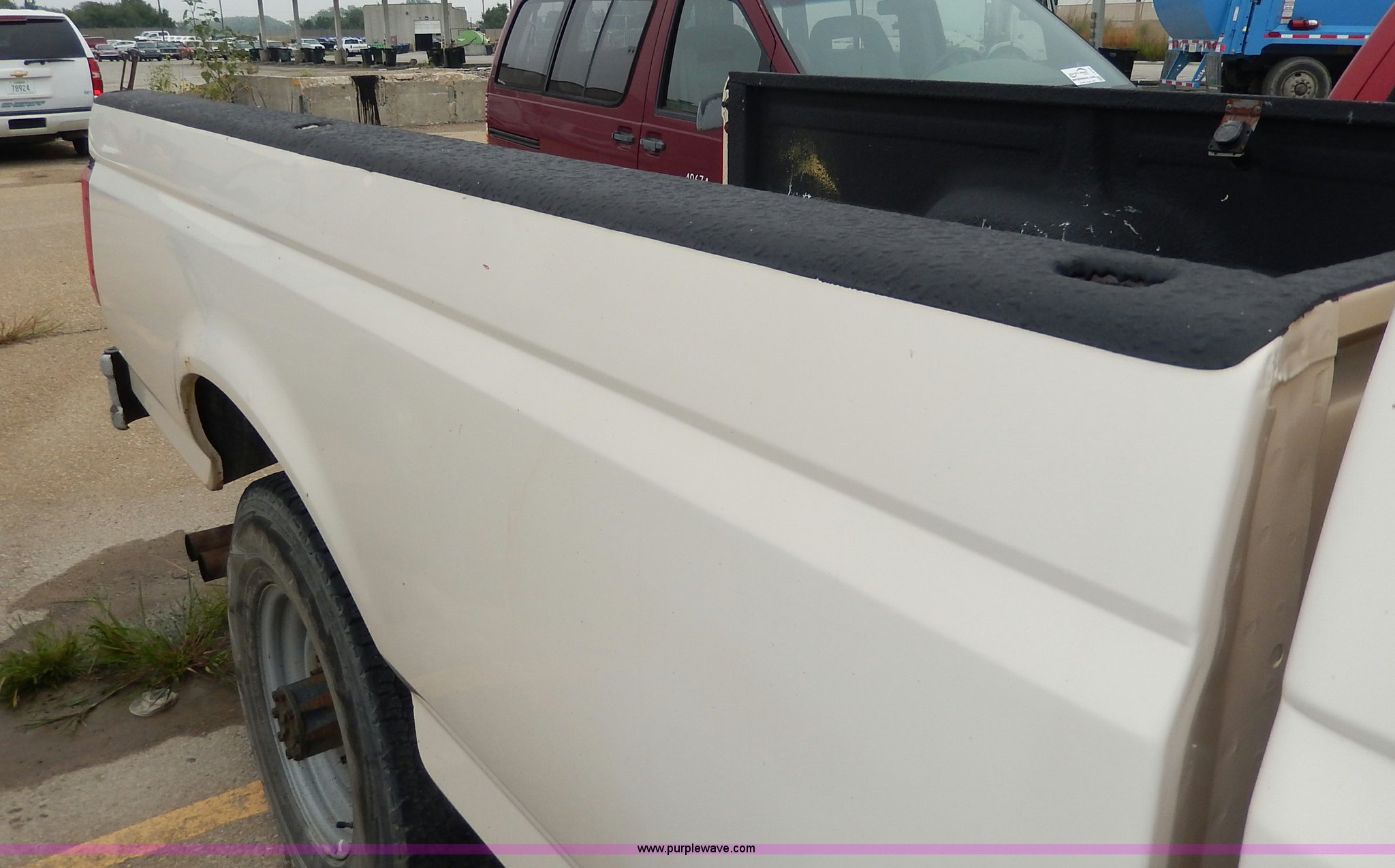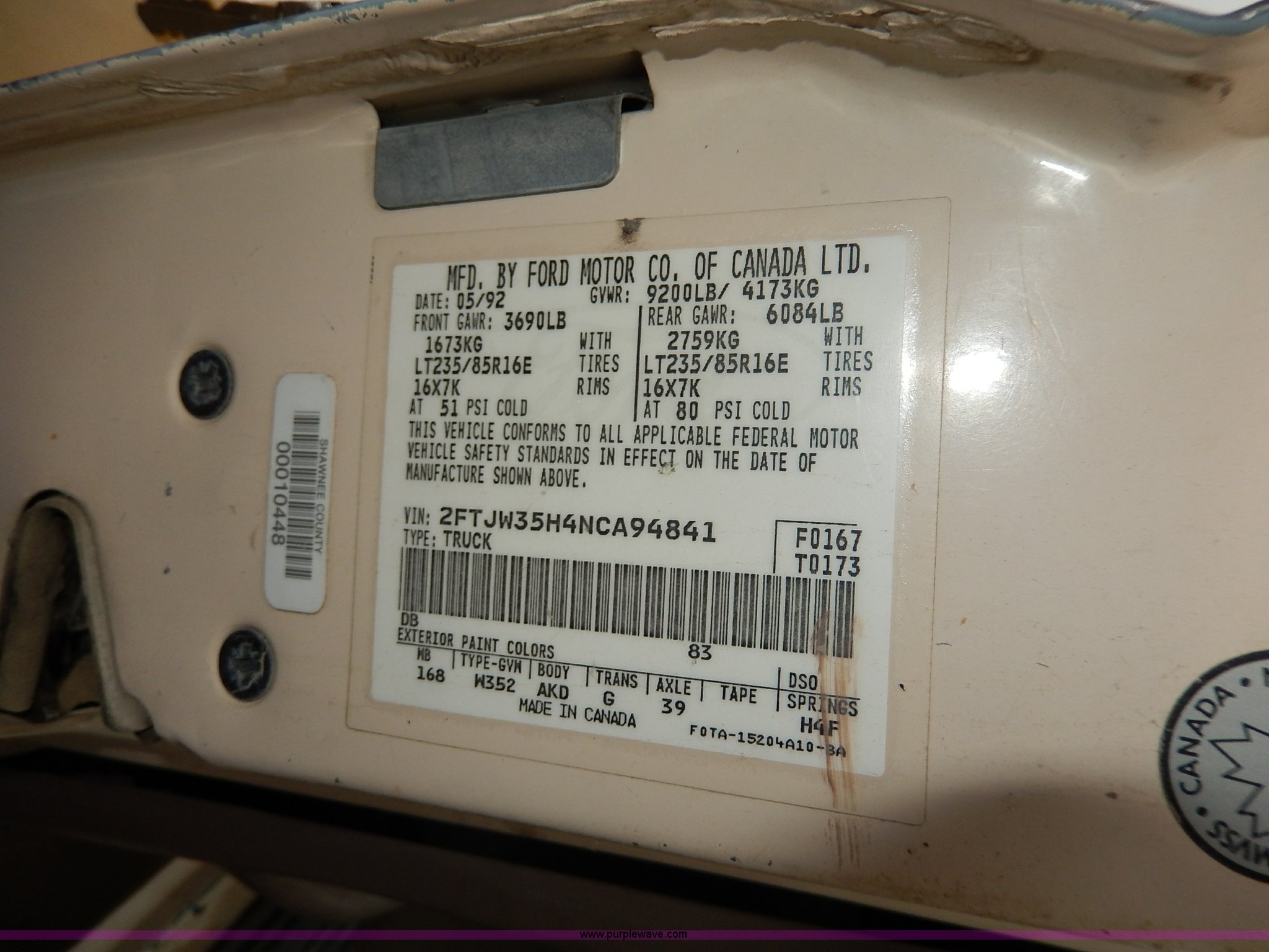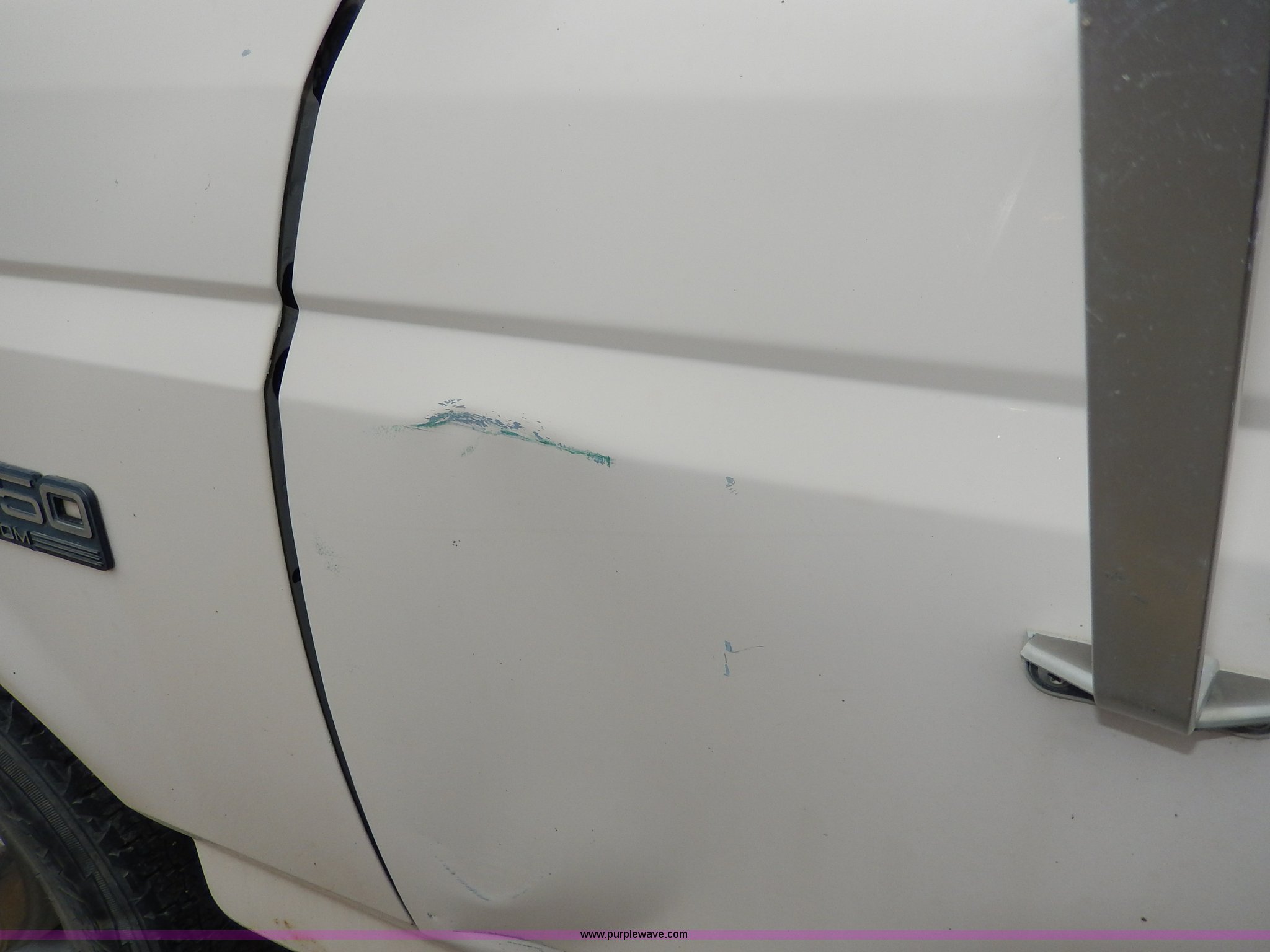 Purple Wave is selling a used Passenger Vehicle in Kansas. This item is a 1992 Ford F350 Custom pickup truck with the following: 153,242 miles on odometer, 5.8L V8 OHV 16V gas engine, Engine inoperable, Automatic transmission, AC and heat, AM/FM, Manual windows and locks, Vinyl interior, Spray-in bed liner, Dual fuel tanks, Long bed, Receiver hitch, Trailer wiring, 235/85R16 tires, Tailgate missing, Exterior cosmetic damage, Scratched and dented, Battery dead, Hail damage, Unit# 52275
