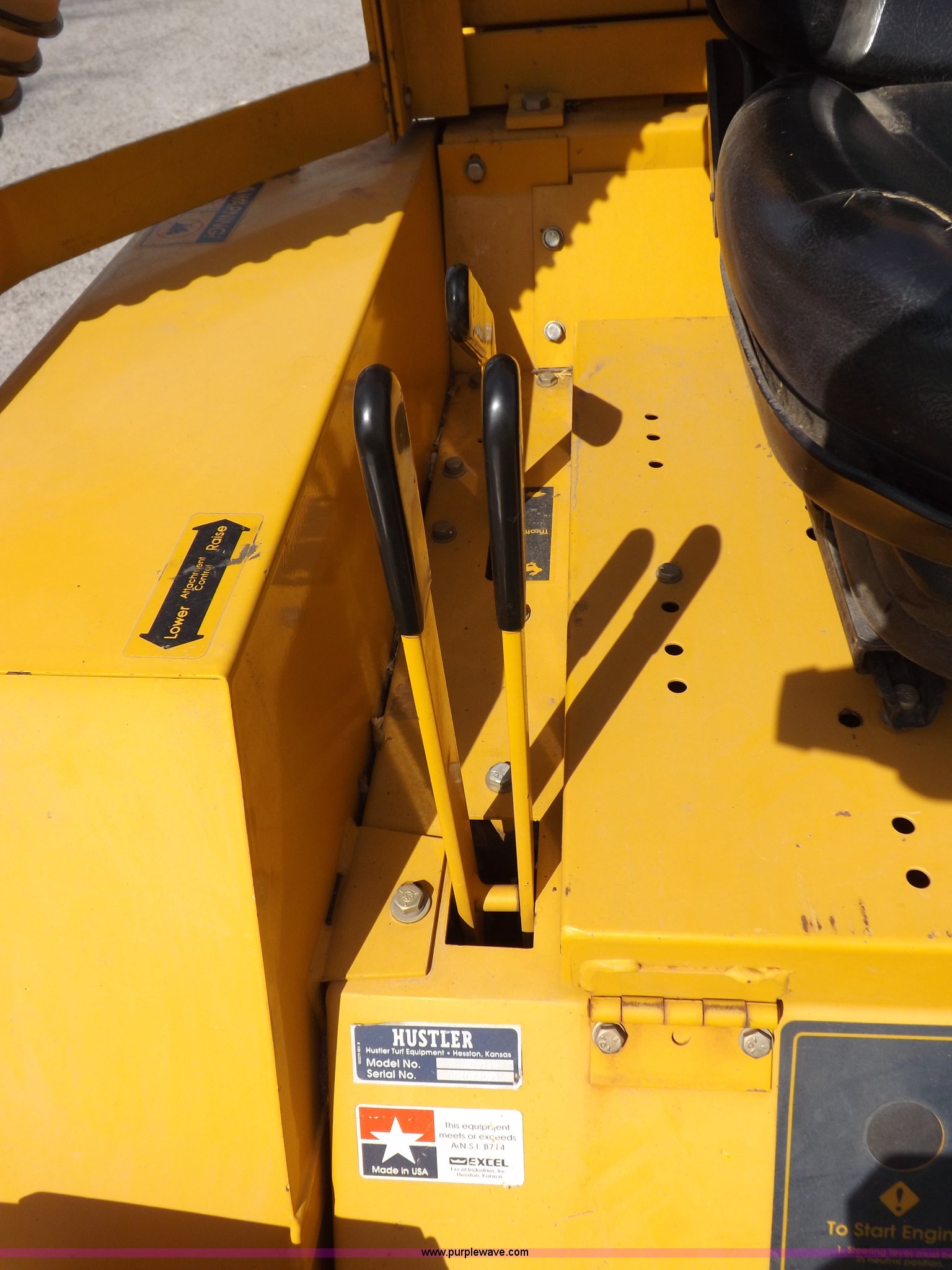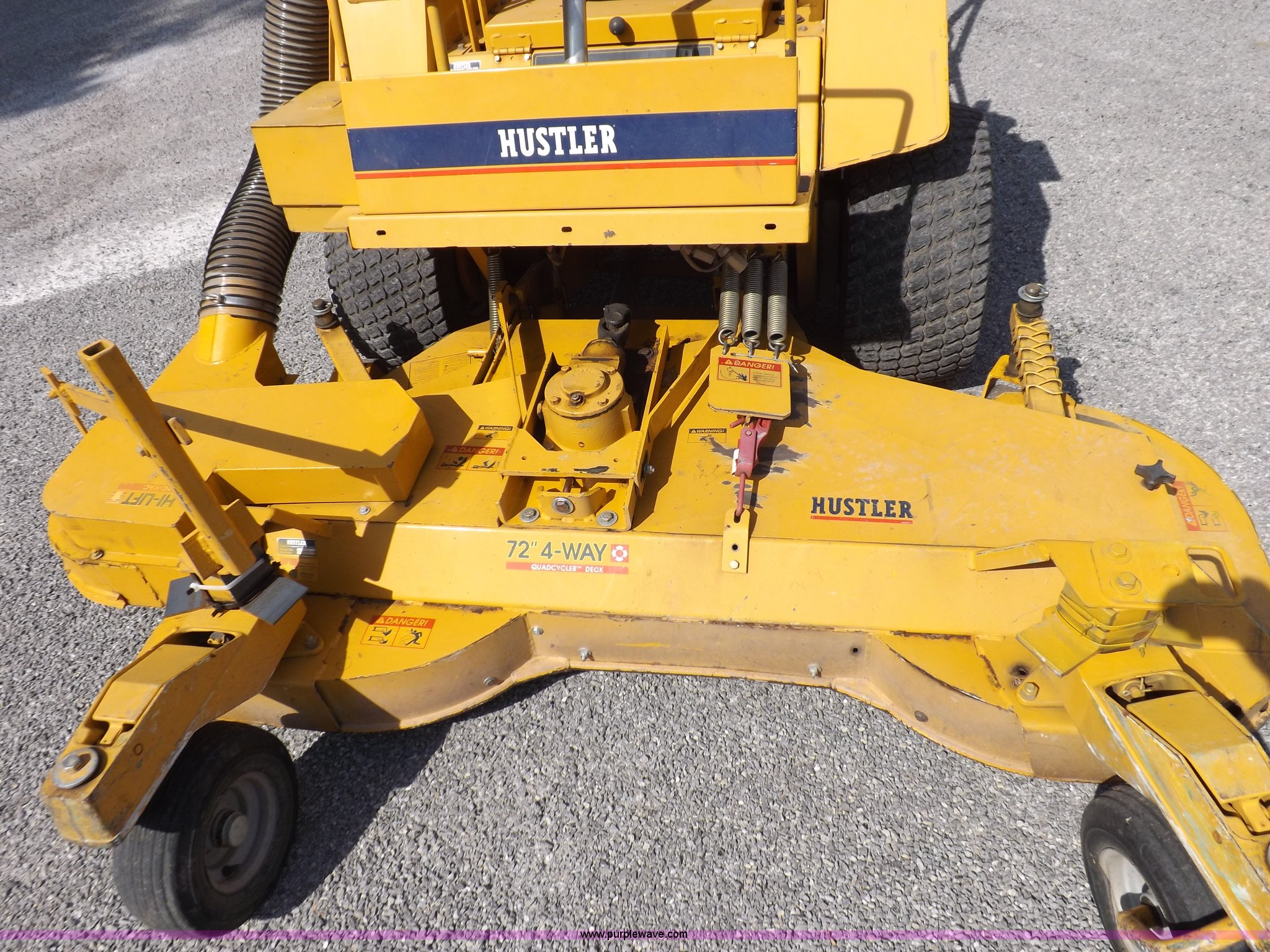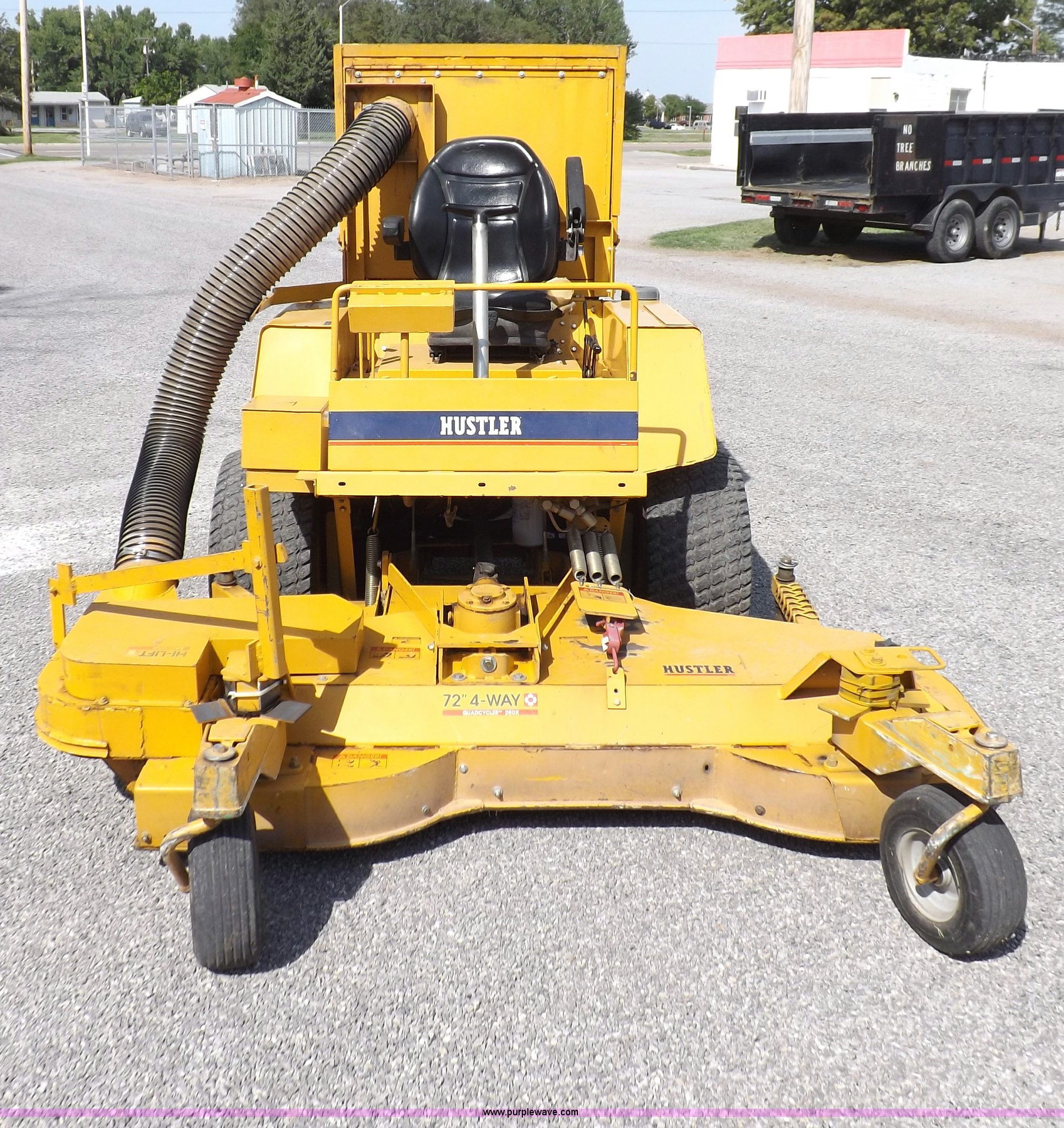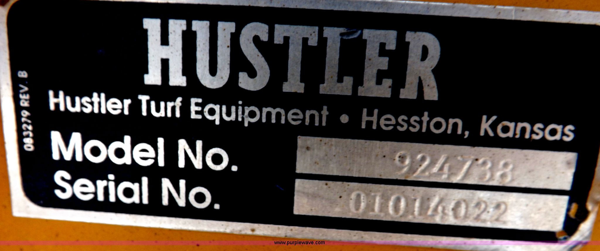 Purple Wave is selling a used Commercial Turf Mower in Kansas. This item is a 2003 Hustler 4500 lawn mower with the following: Model 924738, 2,066 hours on meter, 72" deck, Ford four cylinder engine, Hydrostatic transmission, High lift bagging system with auto dump, Hydraulic deck lift, 26x12-12 drive tires, 13x6.5-6 rear tires, Additional parts included, Engine runs, has electrical issues, Serial 01014022