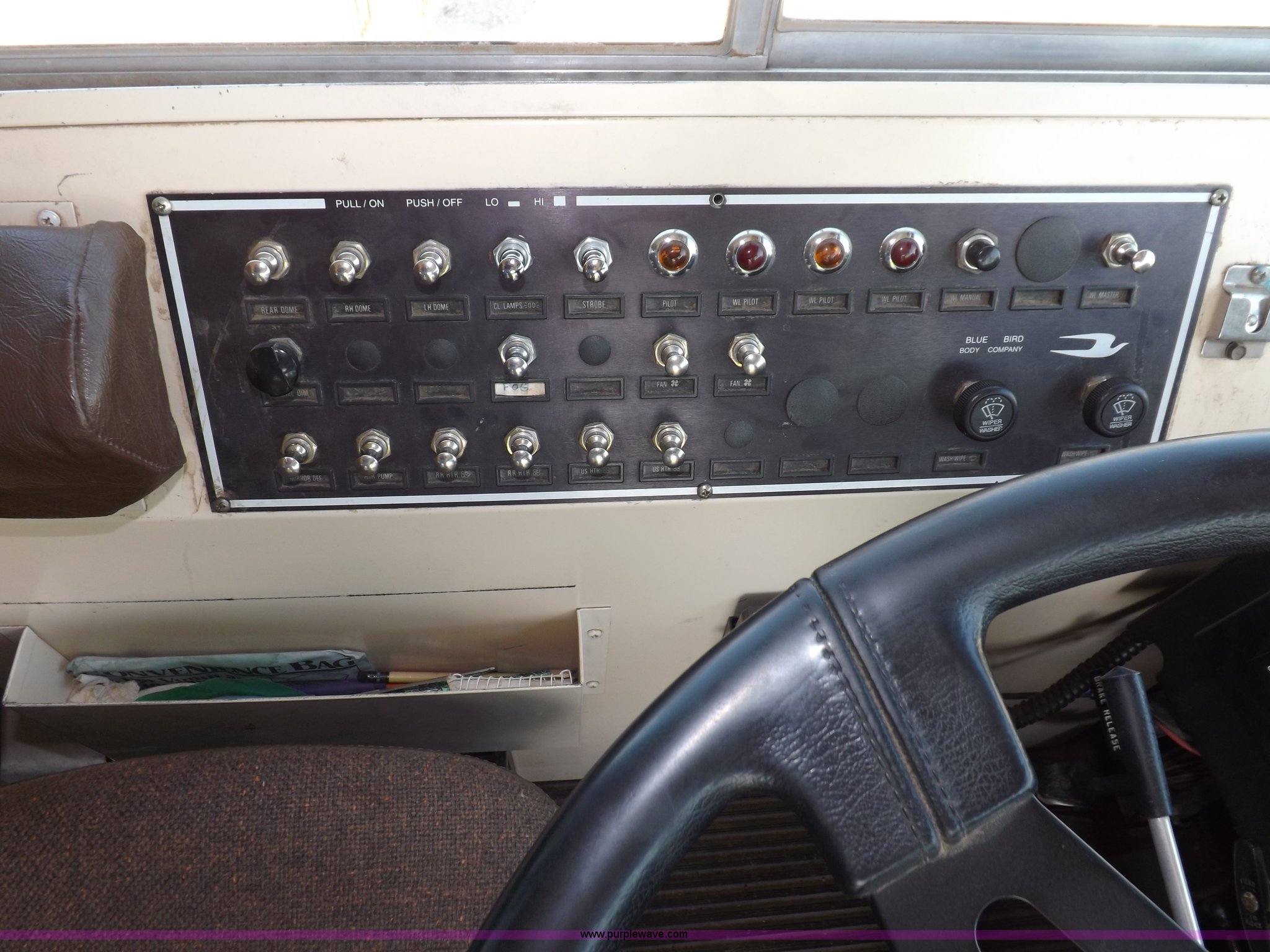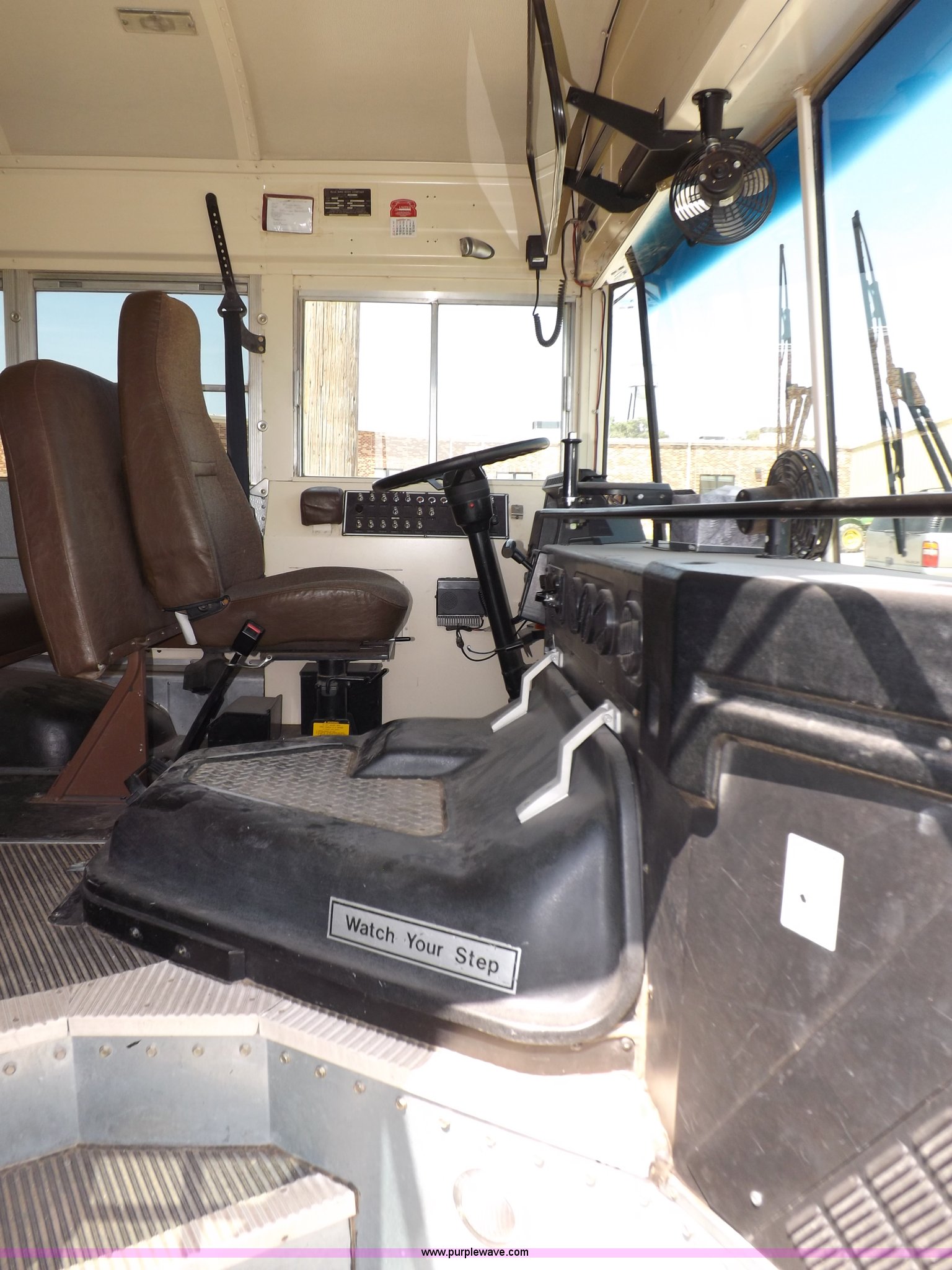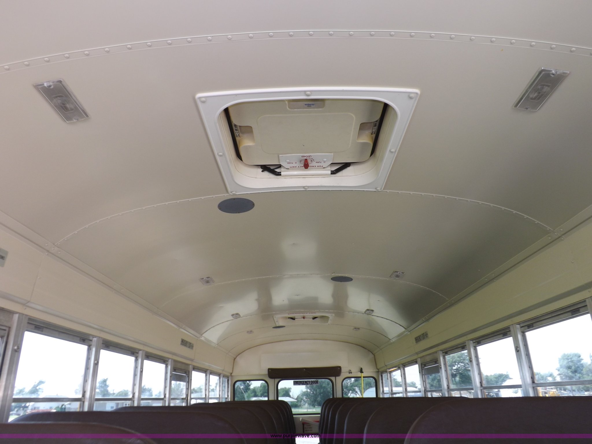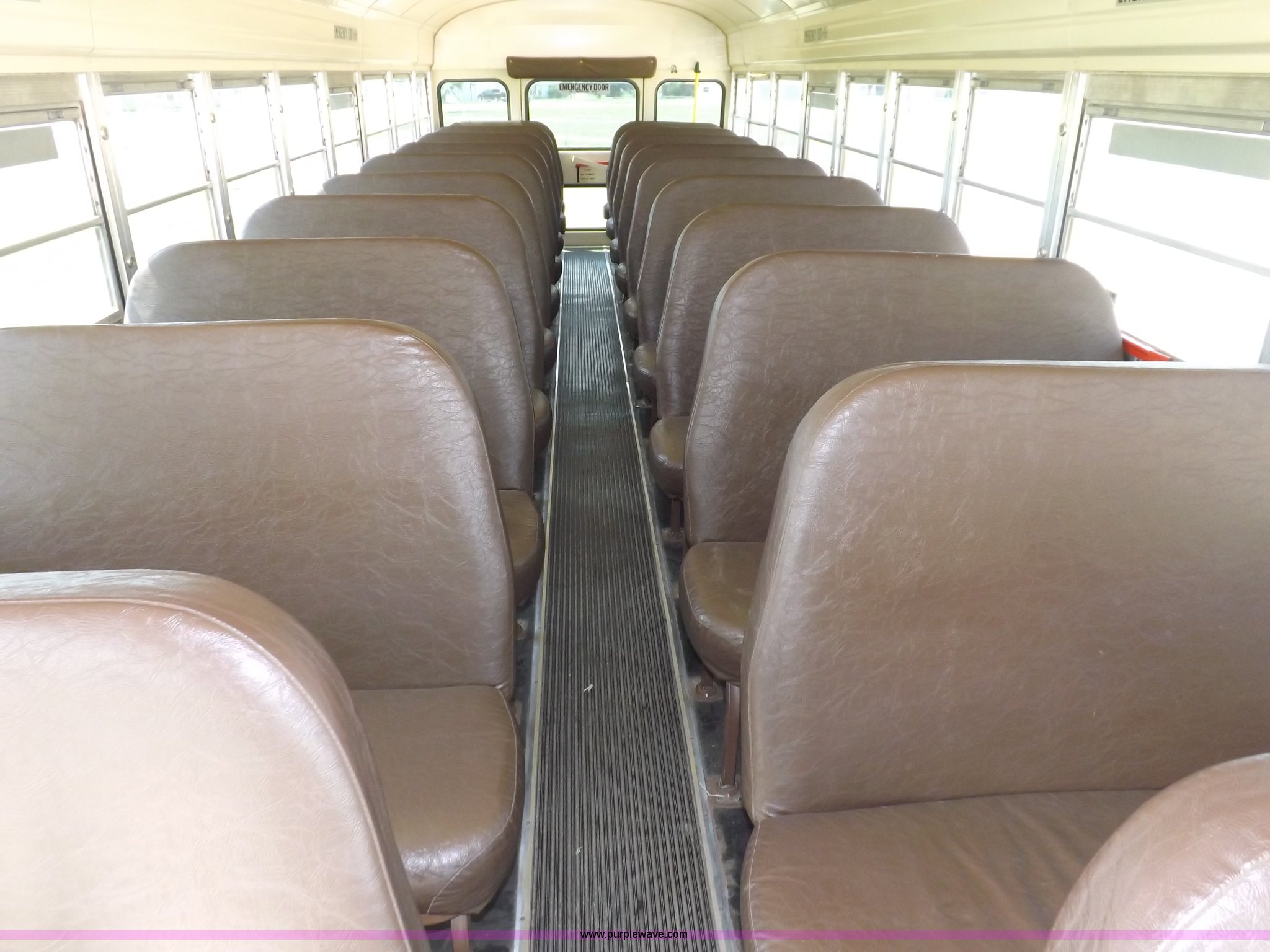 Purple Wave is selling a used Bus in Kansas. This item is a 1997 Blue Bird TC2000 bus with the following: 180,679 miles on odometer, 54 passenger, Cummins ISB 5.9L L6 turbo diesel engine, Serial 45469962, Allison automatic transmission, Heat, AM/FM/cassette, PA system, CB radio, Heated mirrors, Vandul locks, Block heater, (2) top emeergency egress, (4) side emergency egress, Rear emergency egress, Spicer 4:44 rear axle ratio, Hydraulic brakes, 10R22.5 tires, Maintenance records available