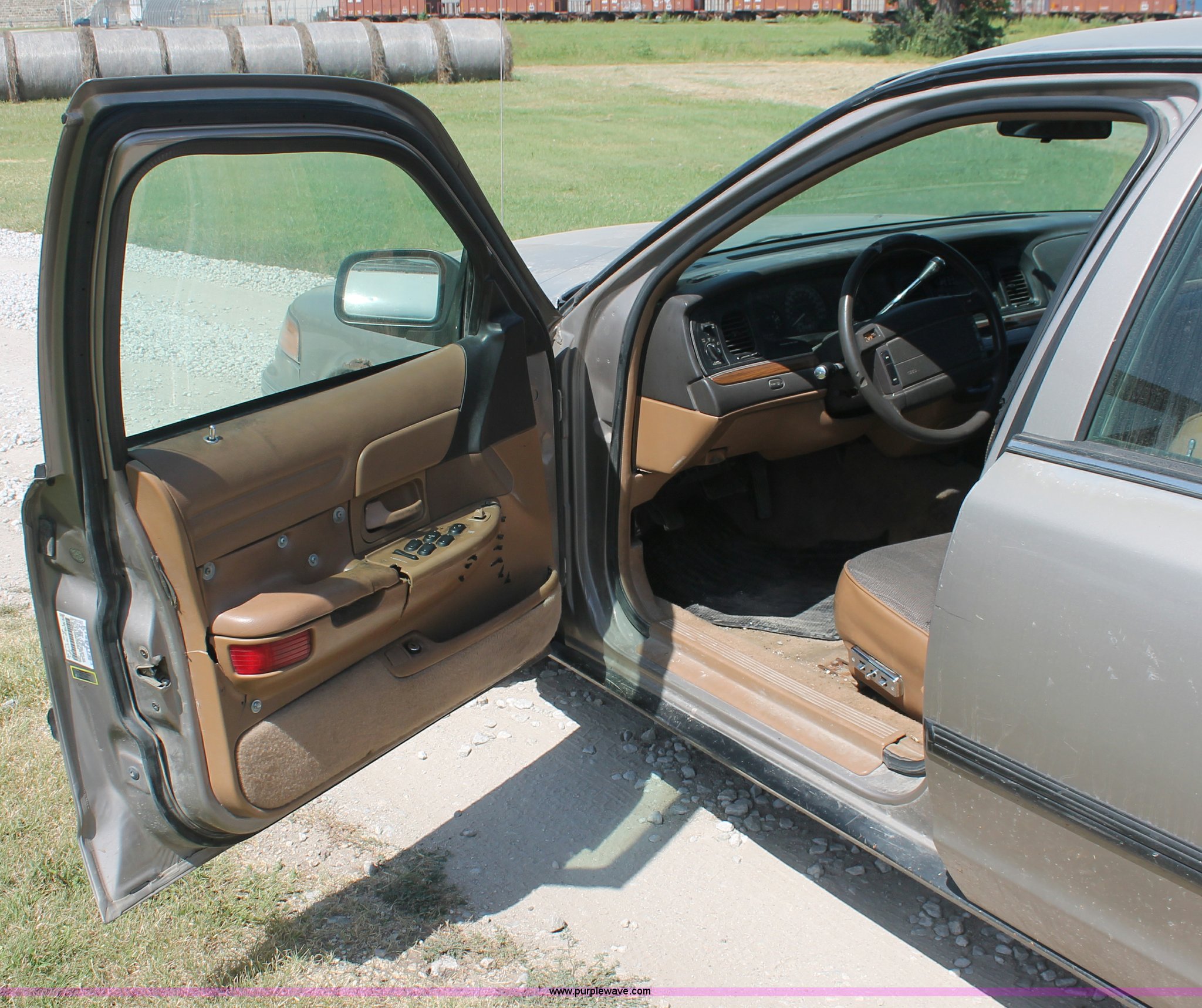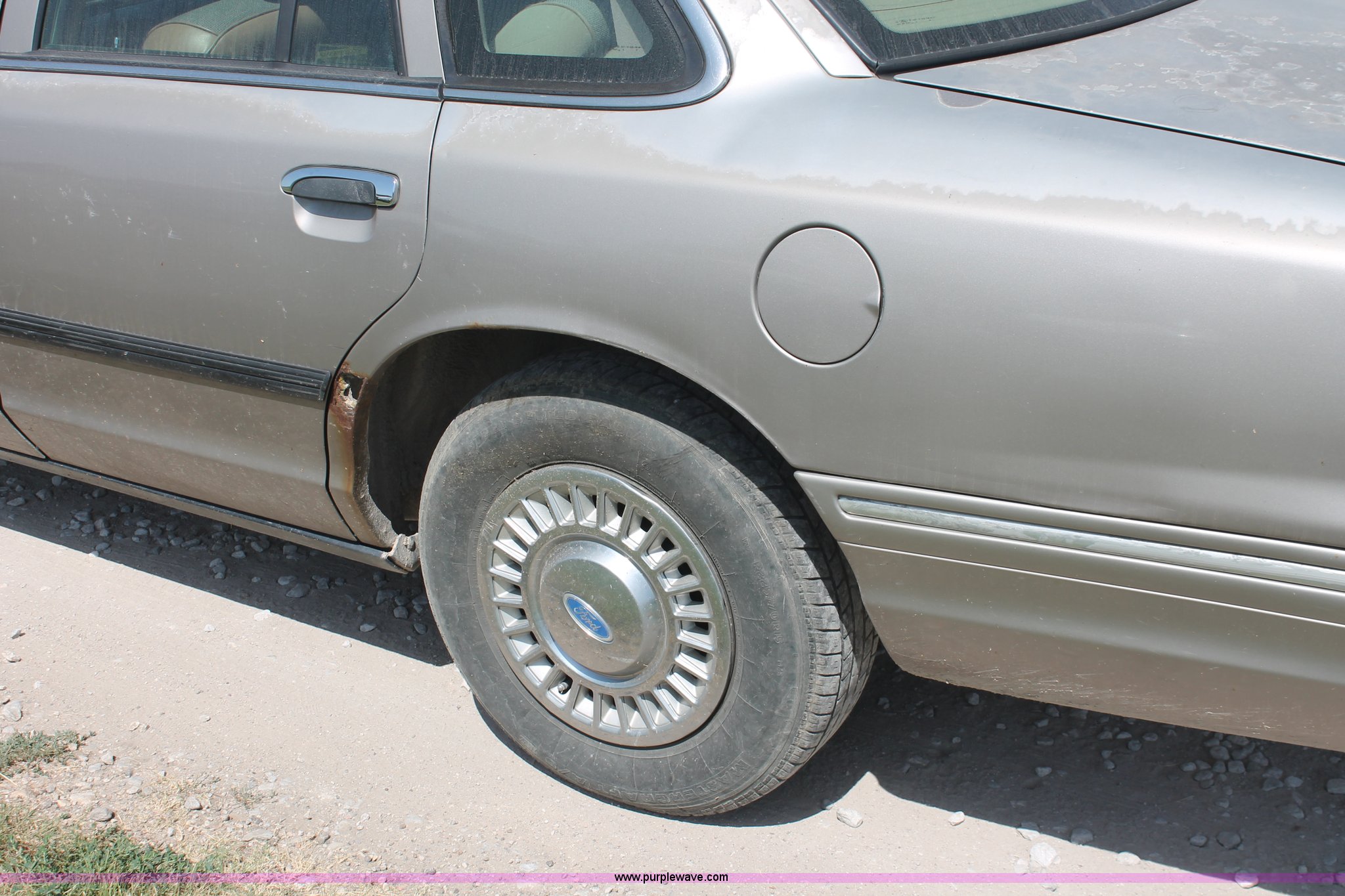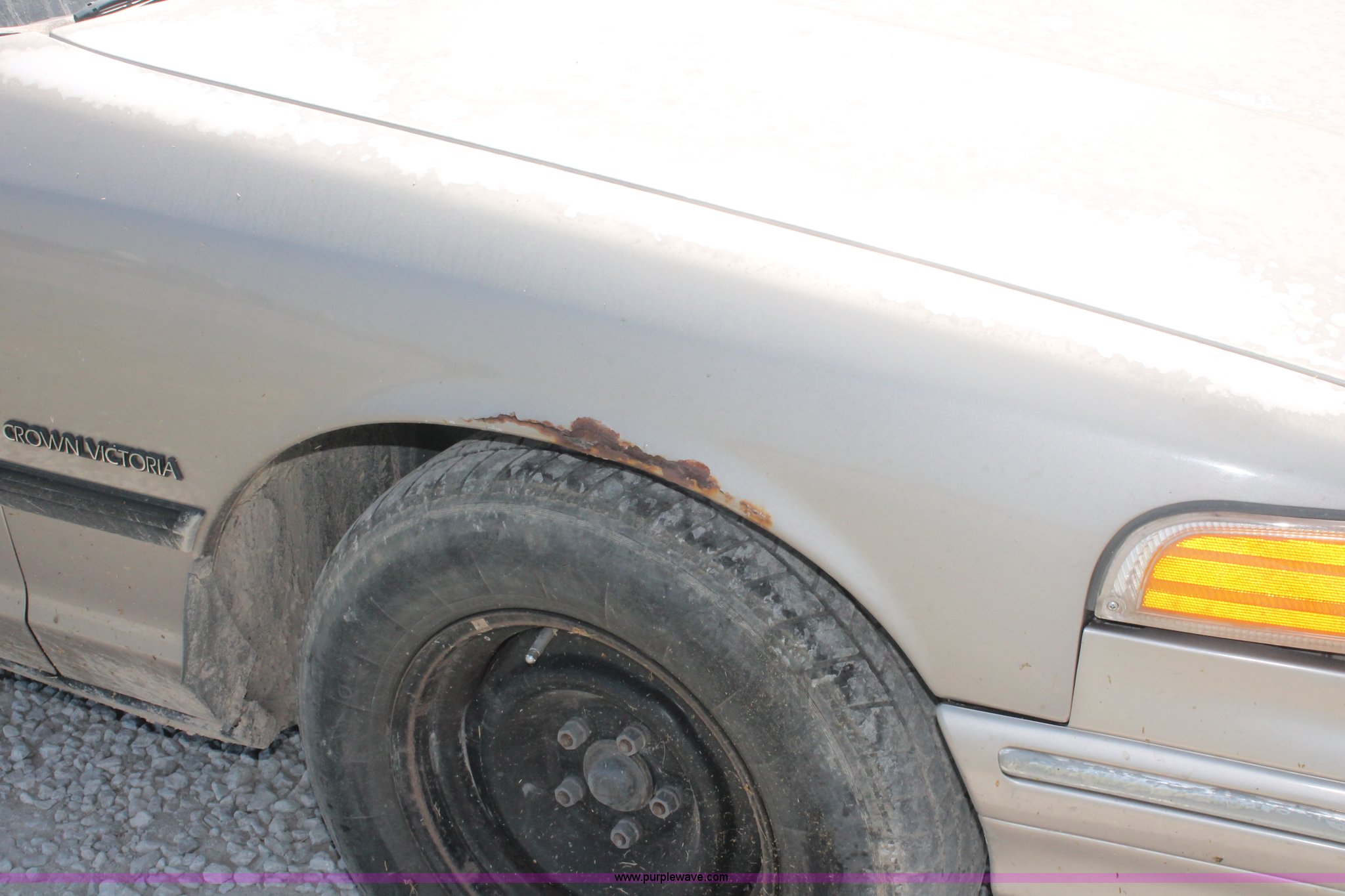 Purple Wave is selling a used Passenger Vehicle in Kansas. This item is a 1995 Ford Crown Victoria Police Interceptor with the following: 250,966 miles on odometer, 4.6L V8 SOHC 16V gas engine, Automatic transmission, AC and heat, Tilt, Cruise, AM/FM, Power windows, locks, and mirrors, Cloth interior, P225/70R15 tires, Interior cosmetic damage, Paint faded and peeling, Rust, Weak battery, Unit# 6893