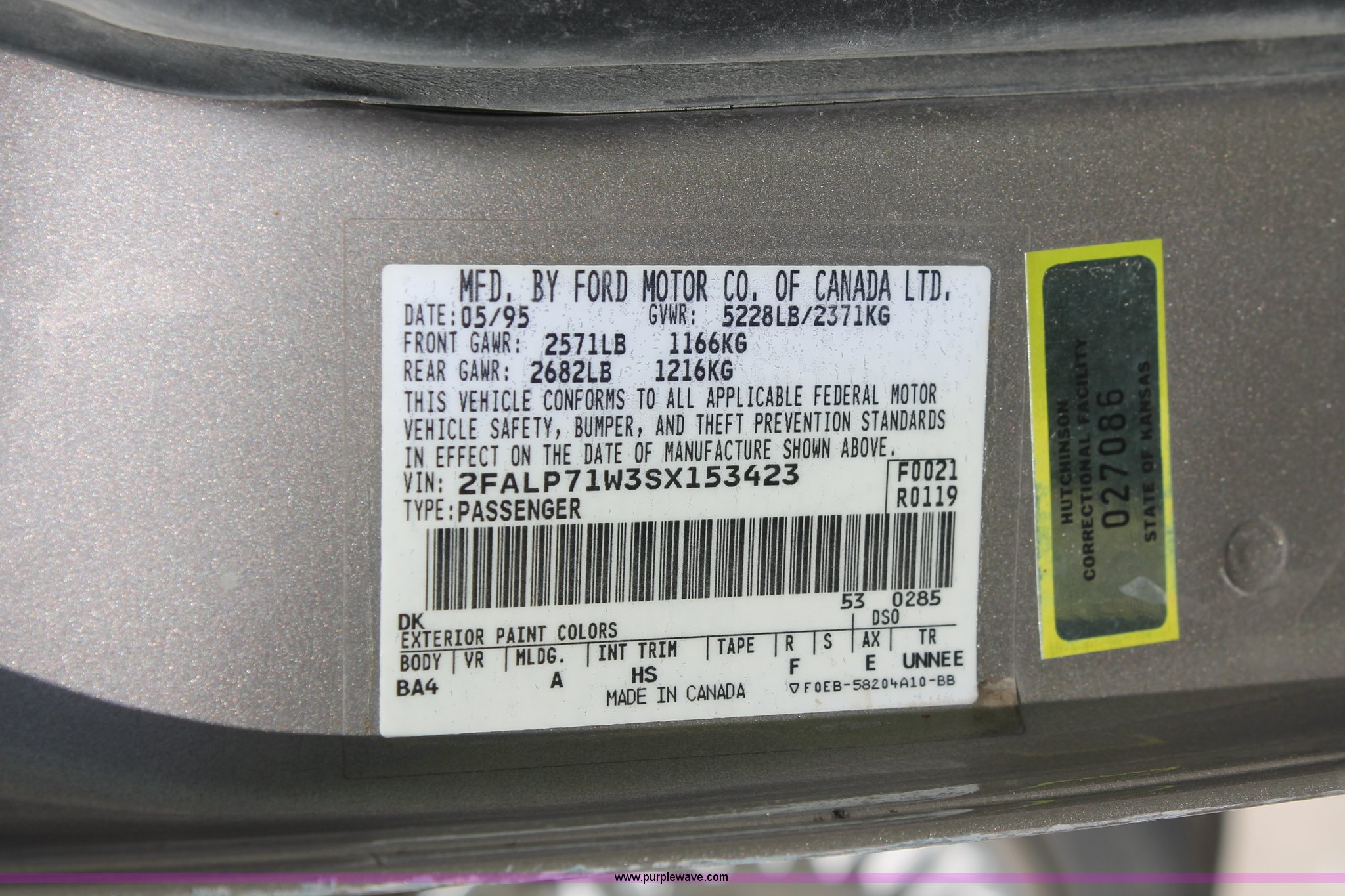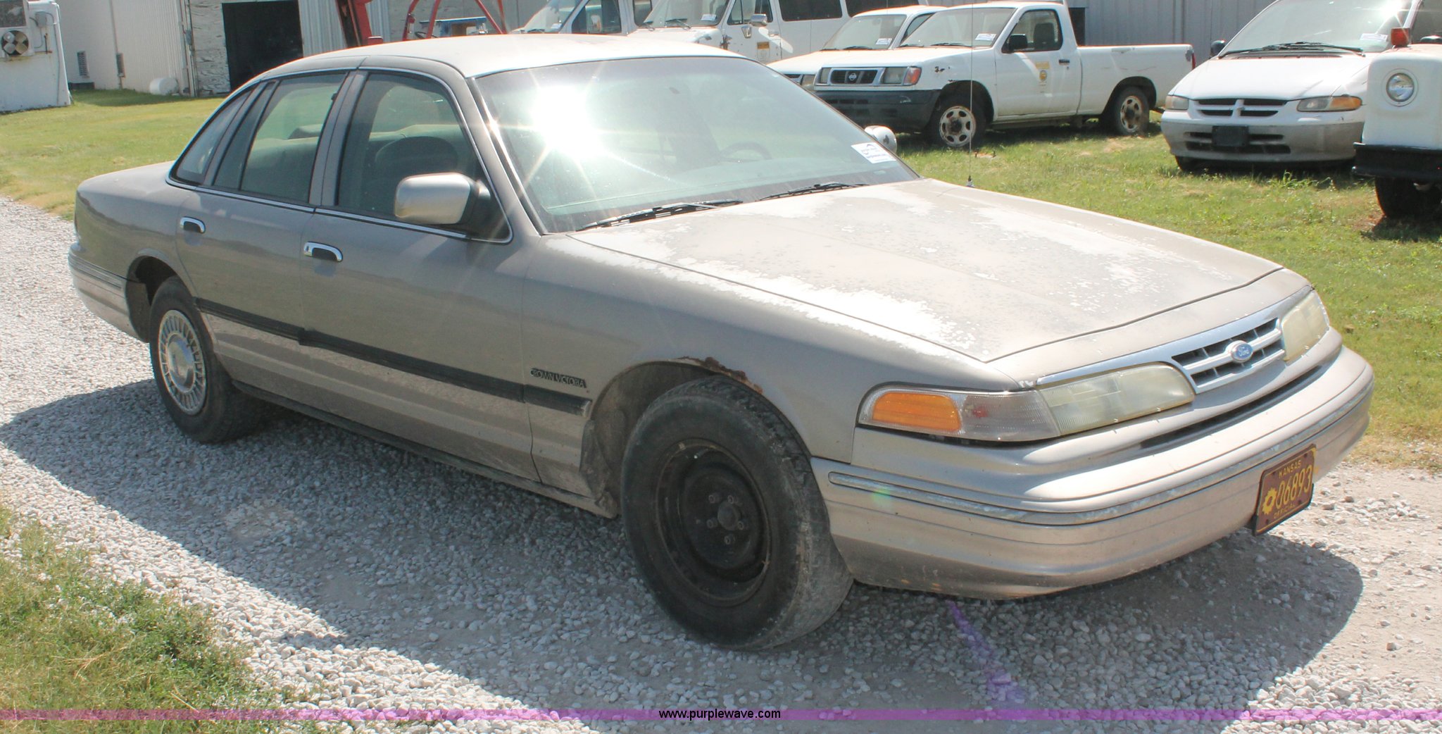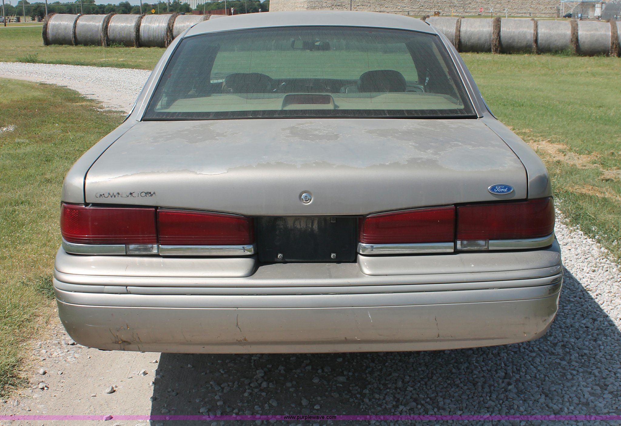 Purple Wave is selling a used Passenger Vehicle in Kansas. This item is a 1995 Ford Crown Victoria Police Interceptor with the following: 250,966 miles on odometer, 4.6L V8 SOHC 16V gas engine, Automatic transmission, AC and heat, Tilt, Cruise, AM/FM, Power windows, locks, and mirrors, Cloth interior, P225/70R15 tires, Interior cosmetic damage, Paint faded and peeling, Rust, Weak battery, Unit# 6893