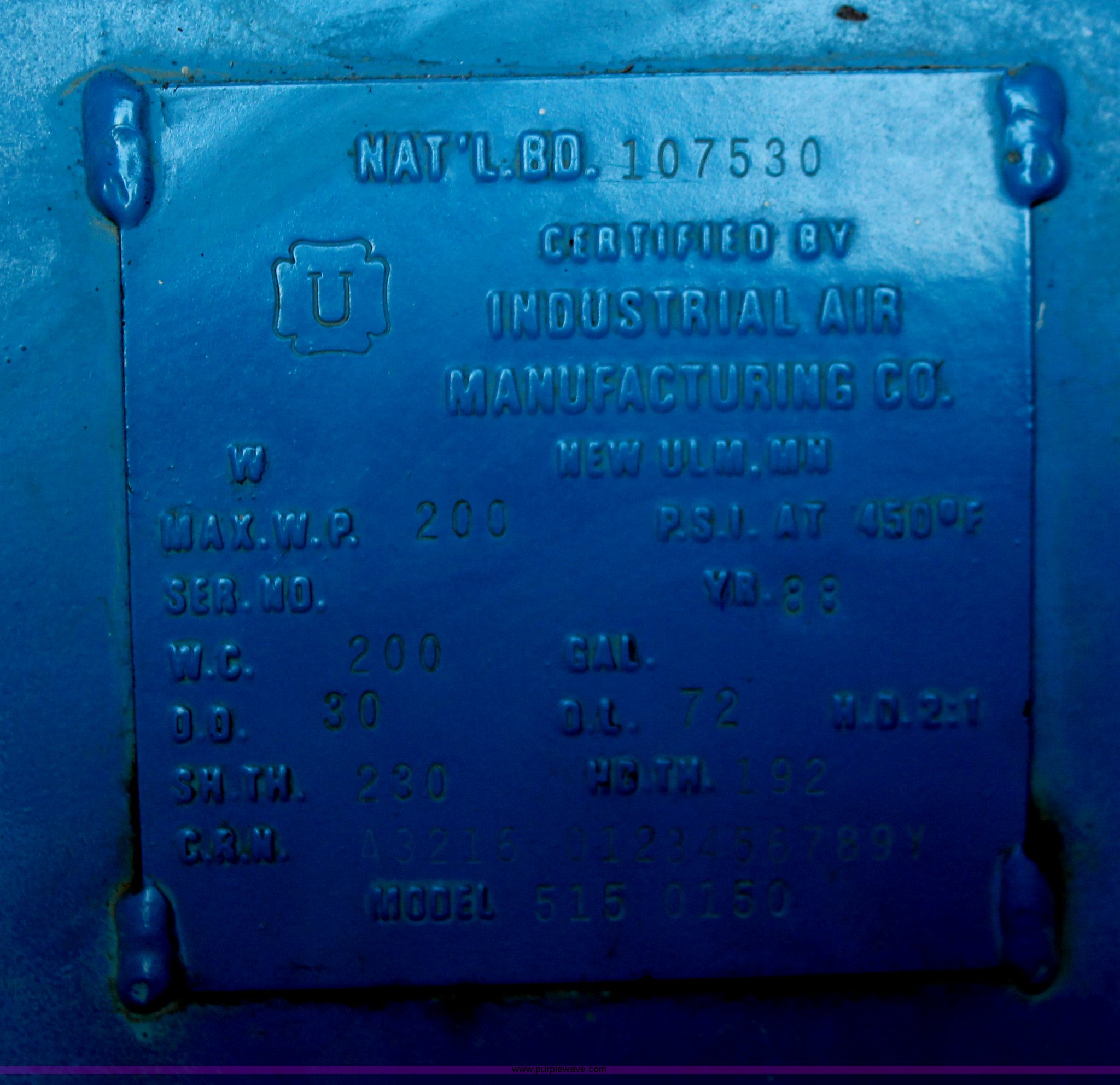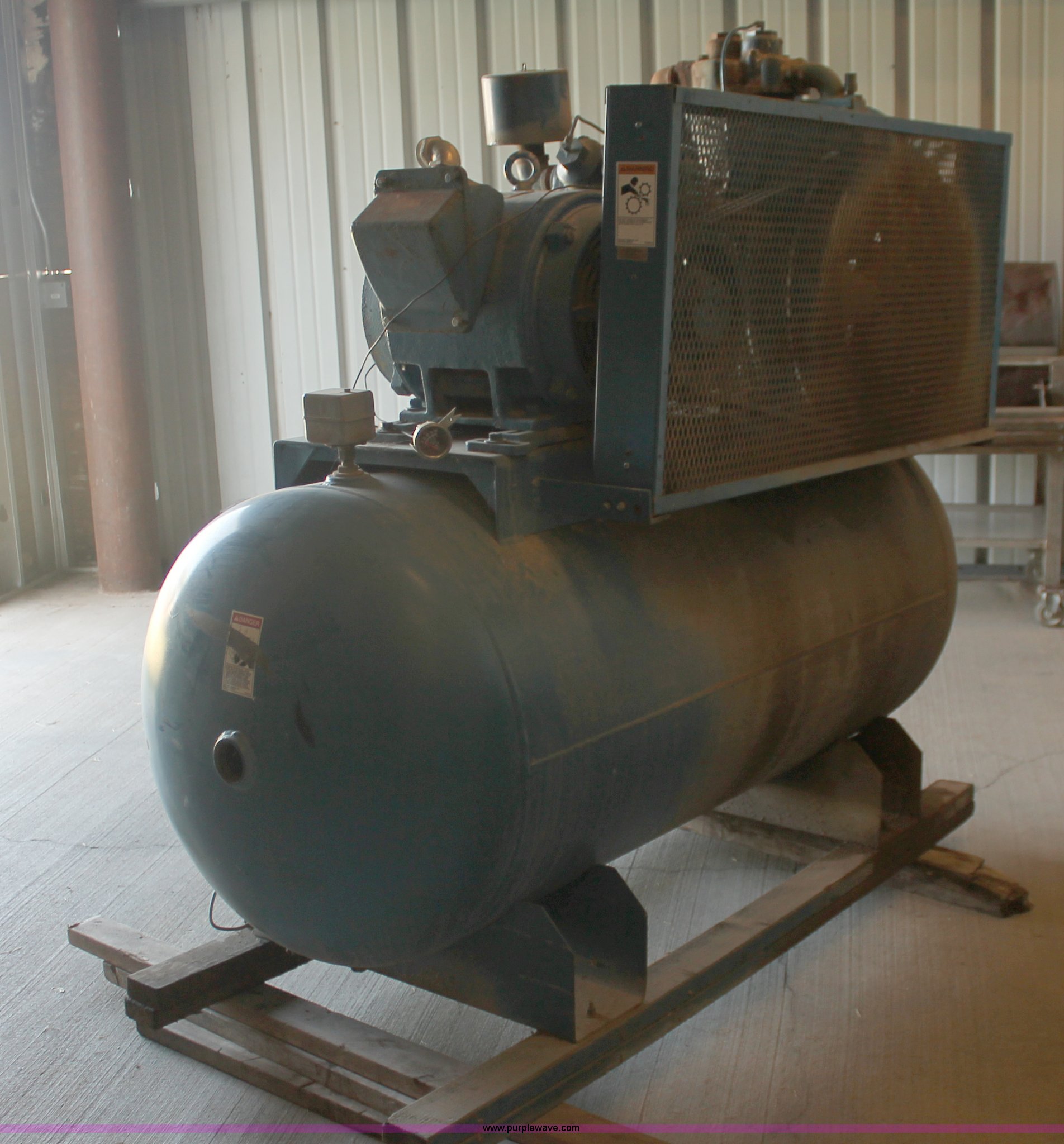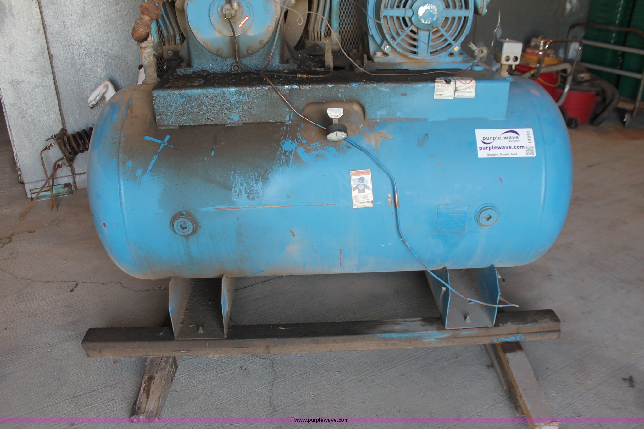 Purple Wave is selling a used Air Compressor in Kansas. This item is a Leroi 880A air compressor with the following: Industrial Air 200 gallon tank, Leeson 25 HP electric motor, 208-230/460V, Three phase, 200 psi max working pressure, Serial W011691