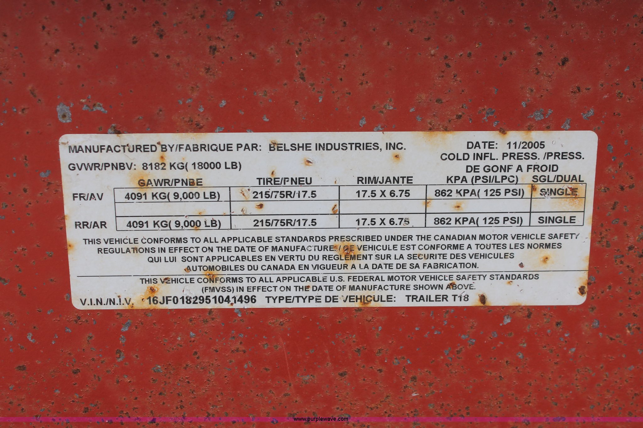 2005 Belshe equipment trailer has sold in Wichita, Kansas for $5830. Item H6364 sold on October 10th, 2013.