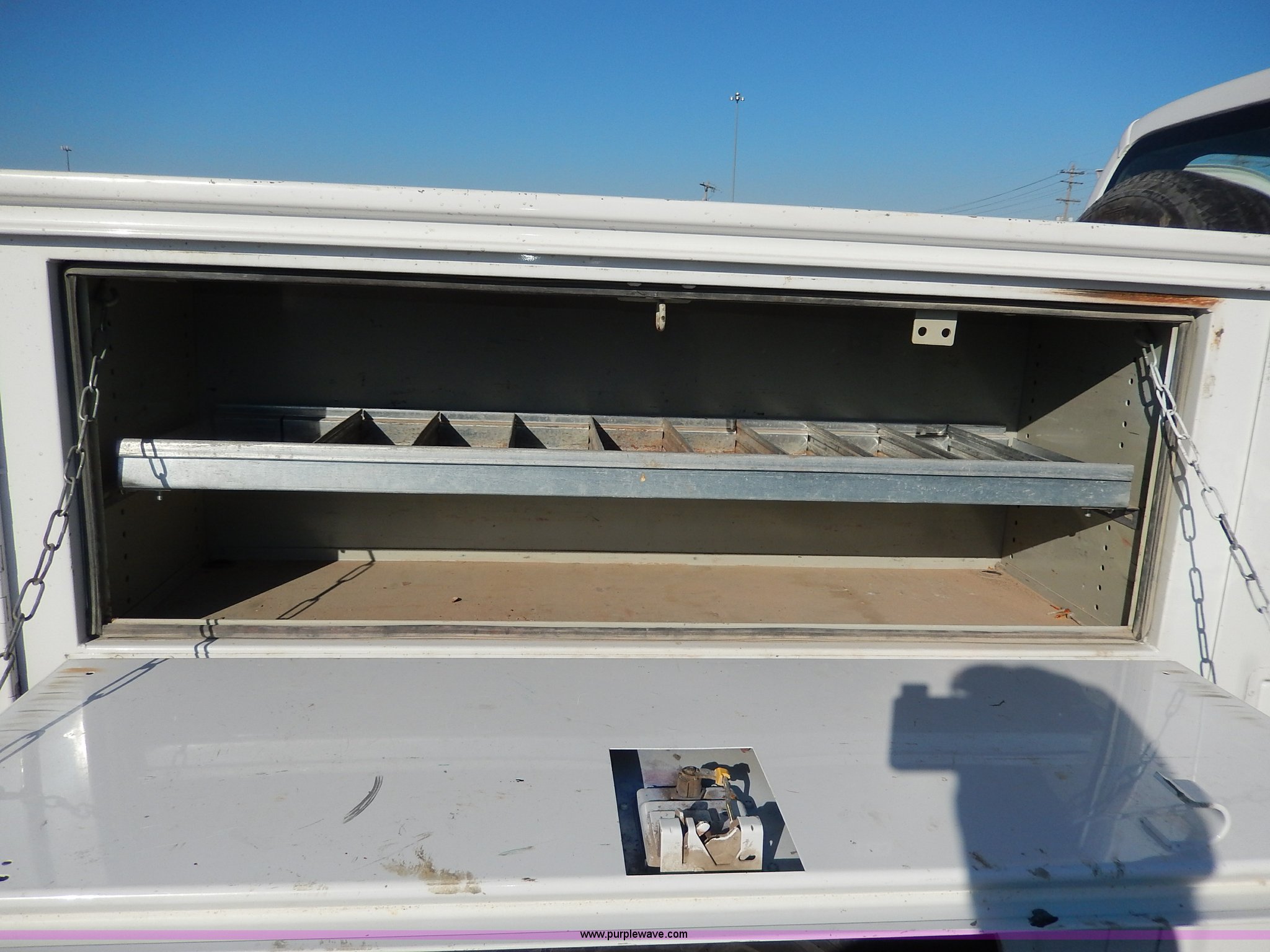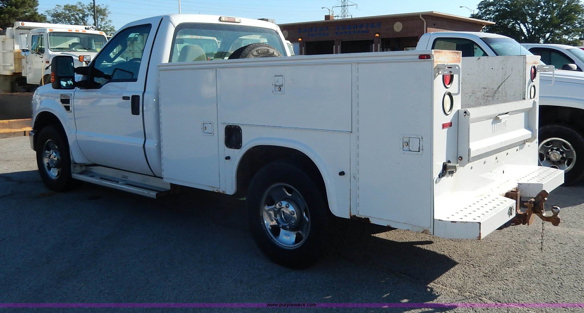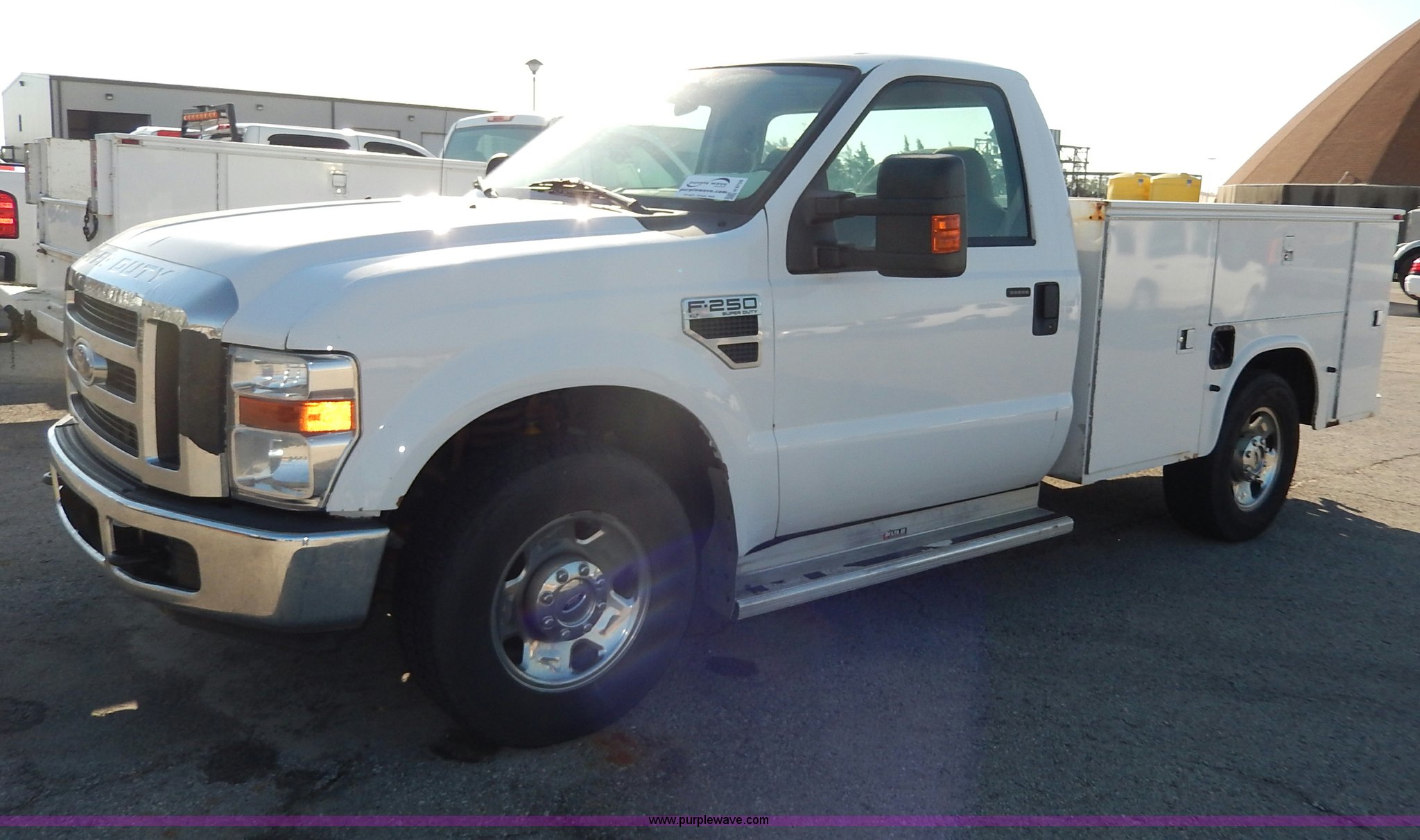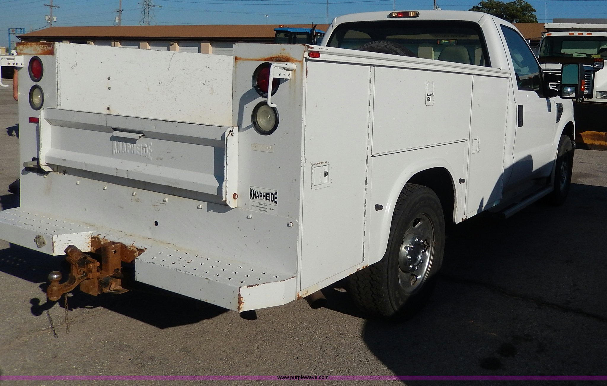 Purple Wave is selling a used Service Truck in Kansas. This item is a 2008 Ford F250 Super Duty XLT utility truck with the following: 164,184 miles on odometer, 5.4L V8 SOHC 16V gas engine, Automatic transmission, AC and heat, Tilt, Cruise, AM/FM/CD, Power windows, locks, and mirrors, Cloth interior, Keyless entry, Knapeide 696S utility bed, Serial 20070522-0073127, Front tow hooks, Delta III running boards, Trailer wiring, Pintle hitch, 265/70R17 tires, Rust, Unit# 2082
