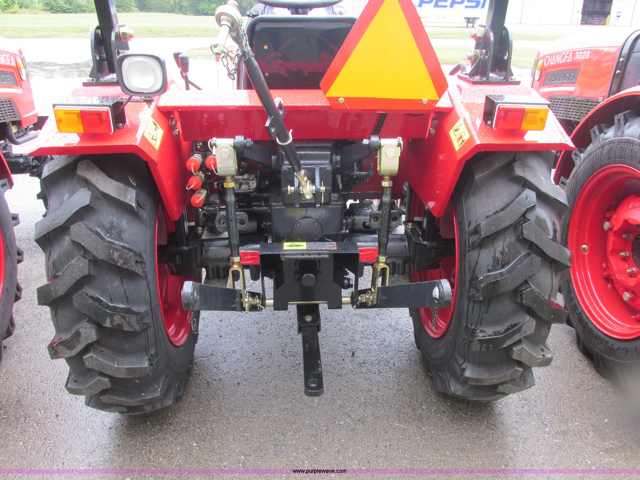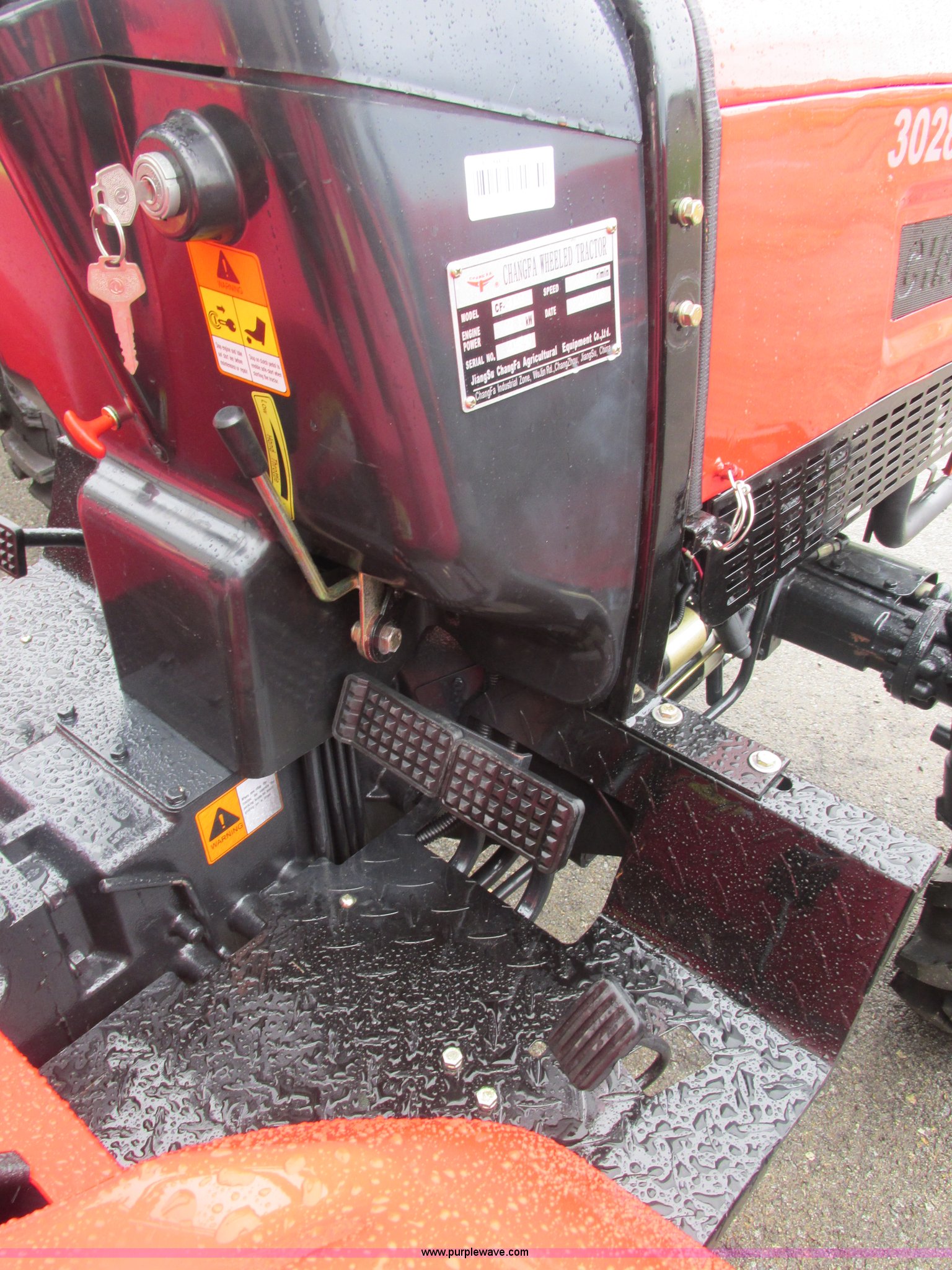 Purple Wave is selling a used Tractor in Missouri. This item is a 2012 Changfa 3028 MFWD tractor with the following: 6.5 actual hours, Three cylinder direct injection diesel engine, 28 HP, Serial 120006060, Manual transmission, 9F-3R gears, Dry single stage clutch, Category I three point hitch, 1,323 lbs maximum lift capacity, Draw bar, 540 single stage PTO, 25 HP PTO, (2) rear hydraulic remotes, 6.6 gallon fuel tank, 118" overall length, 63" wheelbase, 92"H to top of ROPS, 99 lbs wheel weights, 6.00-16 front tires, 11.2-24 rear tires, 2,442 lbs. base operating weight, Serial 204240