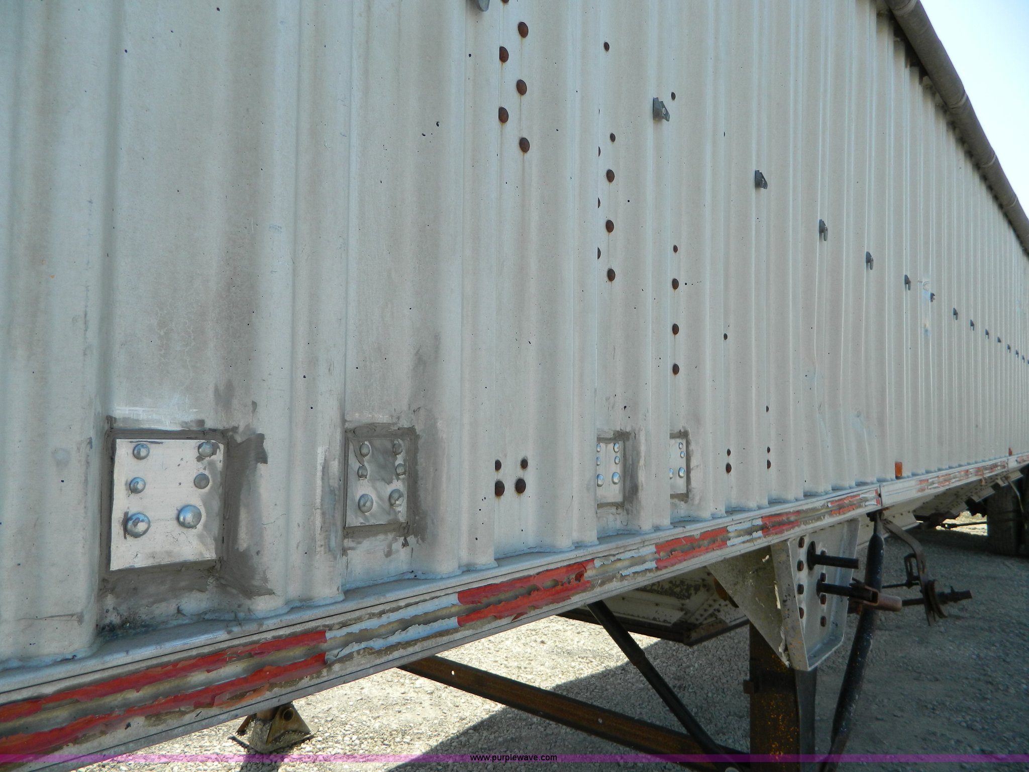 Purple Wave is selling a used Grain or Commodity Trailer in Kansas. This item is a 1980 Wilson AGH-600 double hopper aluminum grain trailer with the following: 42'L, 60"H sides, Rollover tarp, Tarp is torn, Spring suspension, 275/80R24.5 tires, Sides have weld patches