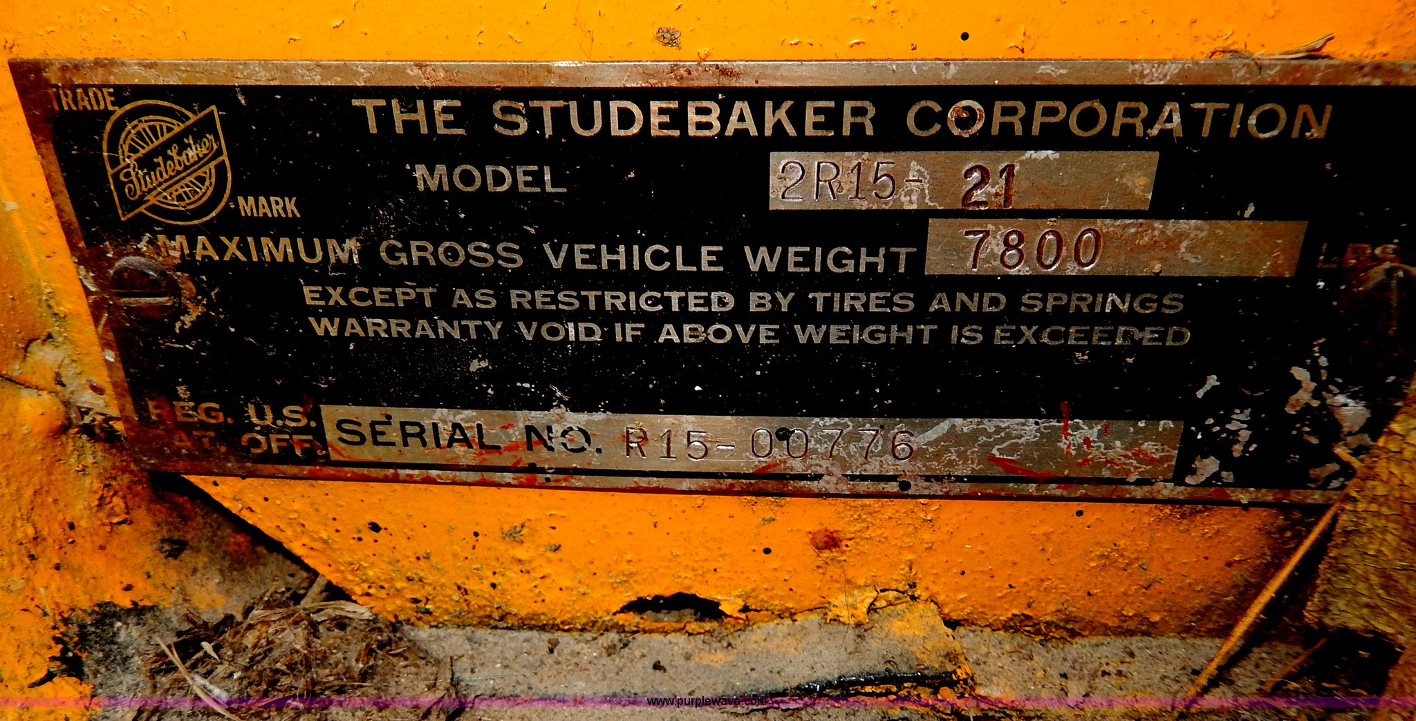 1949 Studebaker 2R15-21 pickup truck. 35,578 miles on odometer Not Actual Mileage, Six cylinder flathead gas engine, Four speed transmission, 8'L bed, 7.00-17 tires, GVWR 7,800 lbs. R1500776. Wamego , KS 66547