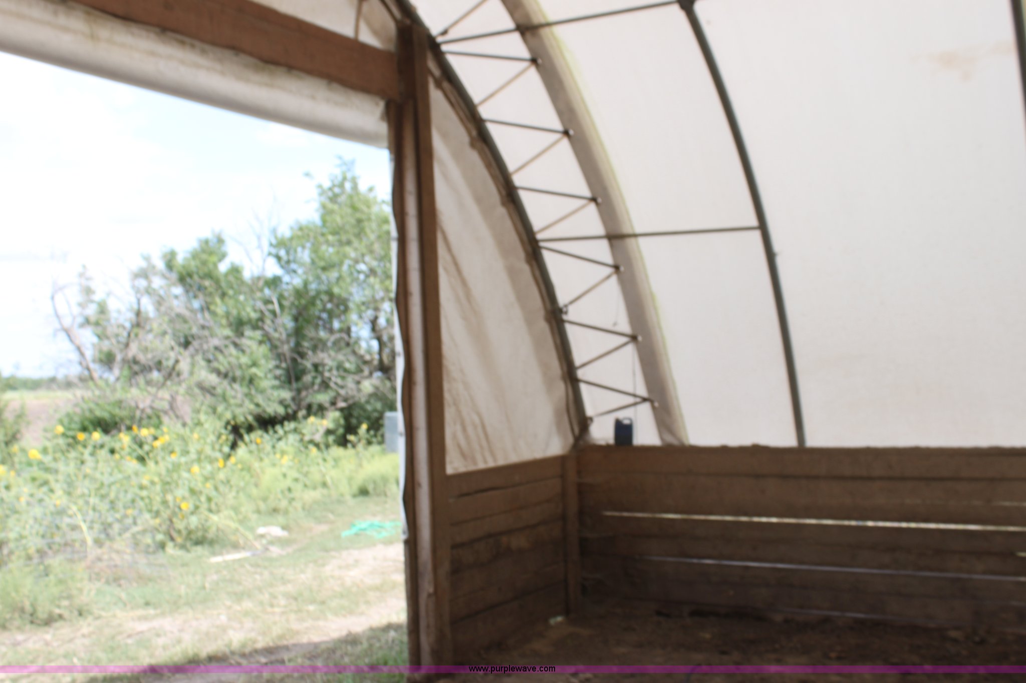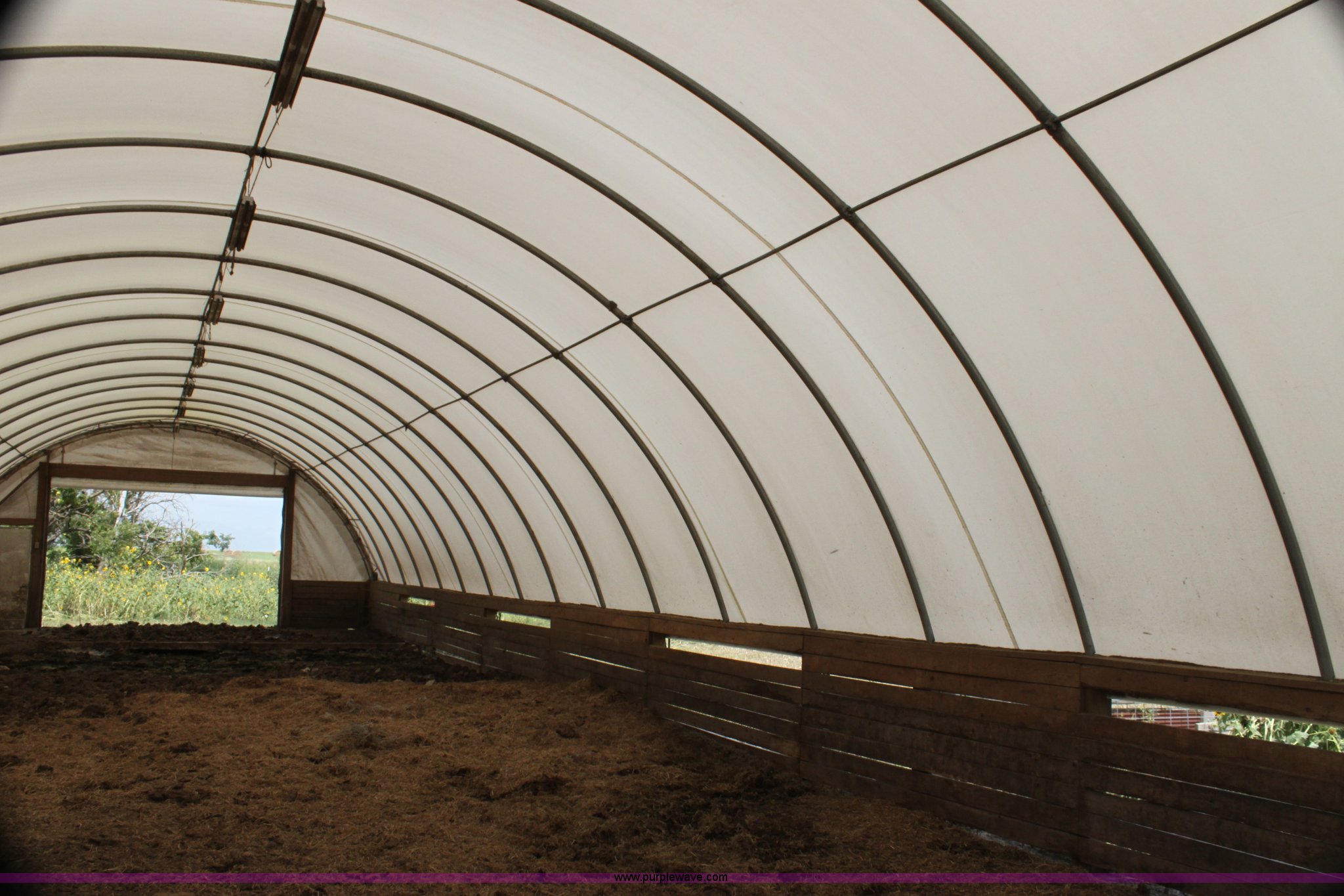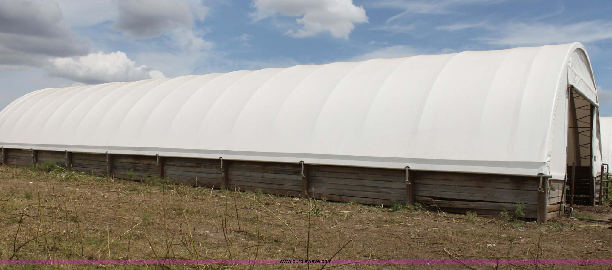 Purple Wave is selling a used Home Improvement in Kansas. This item is a Quick Structures 30' x 90' coverall hoop shed with the following: 3' 2" x 6" stem wall, Buyer is responsible for all aspects of removal within 90 days of auction