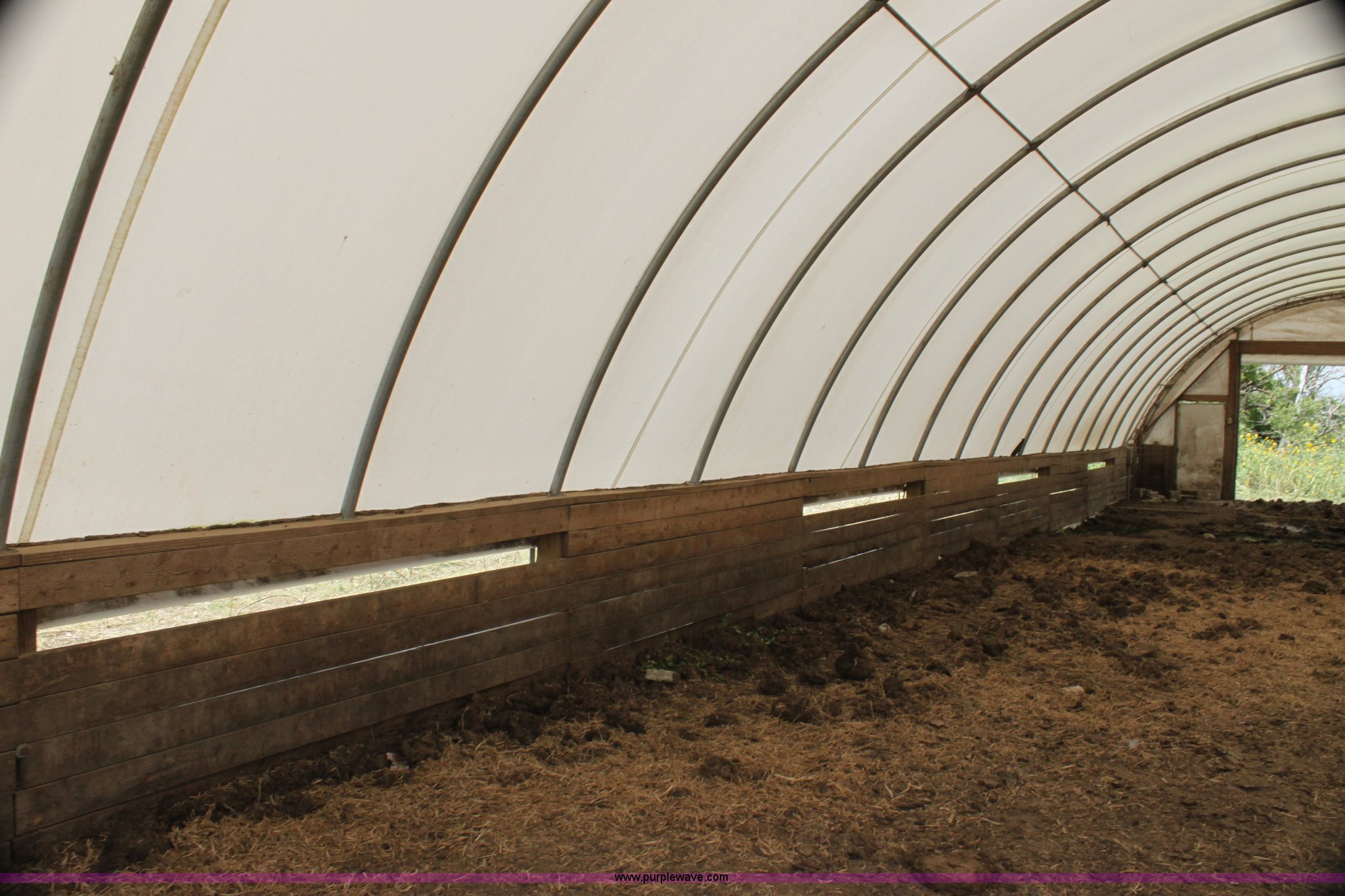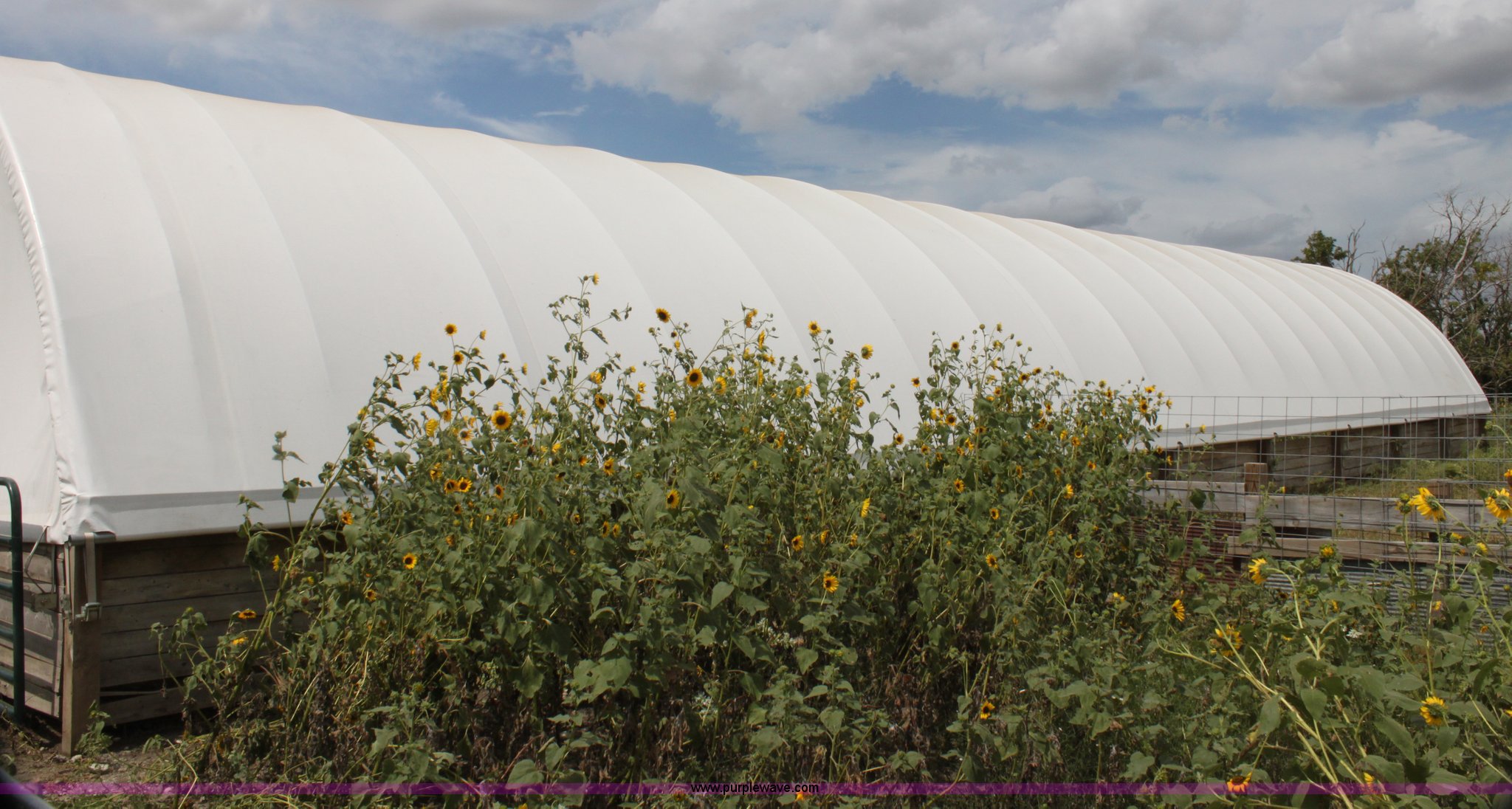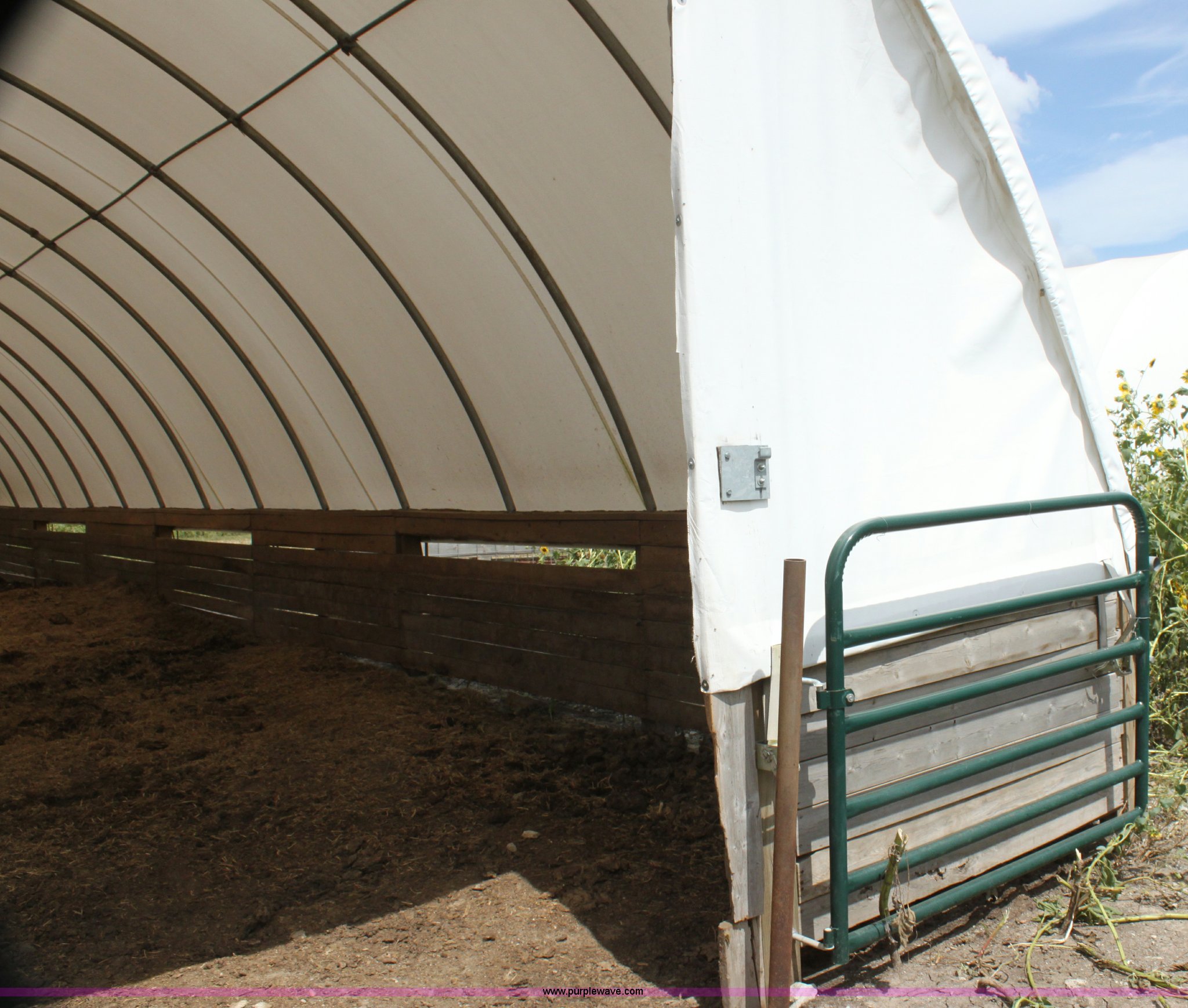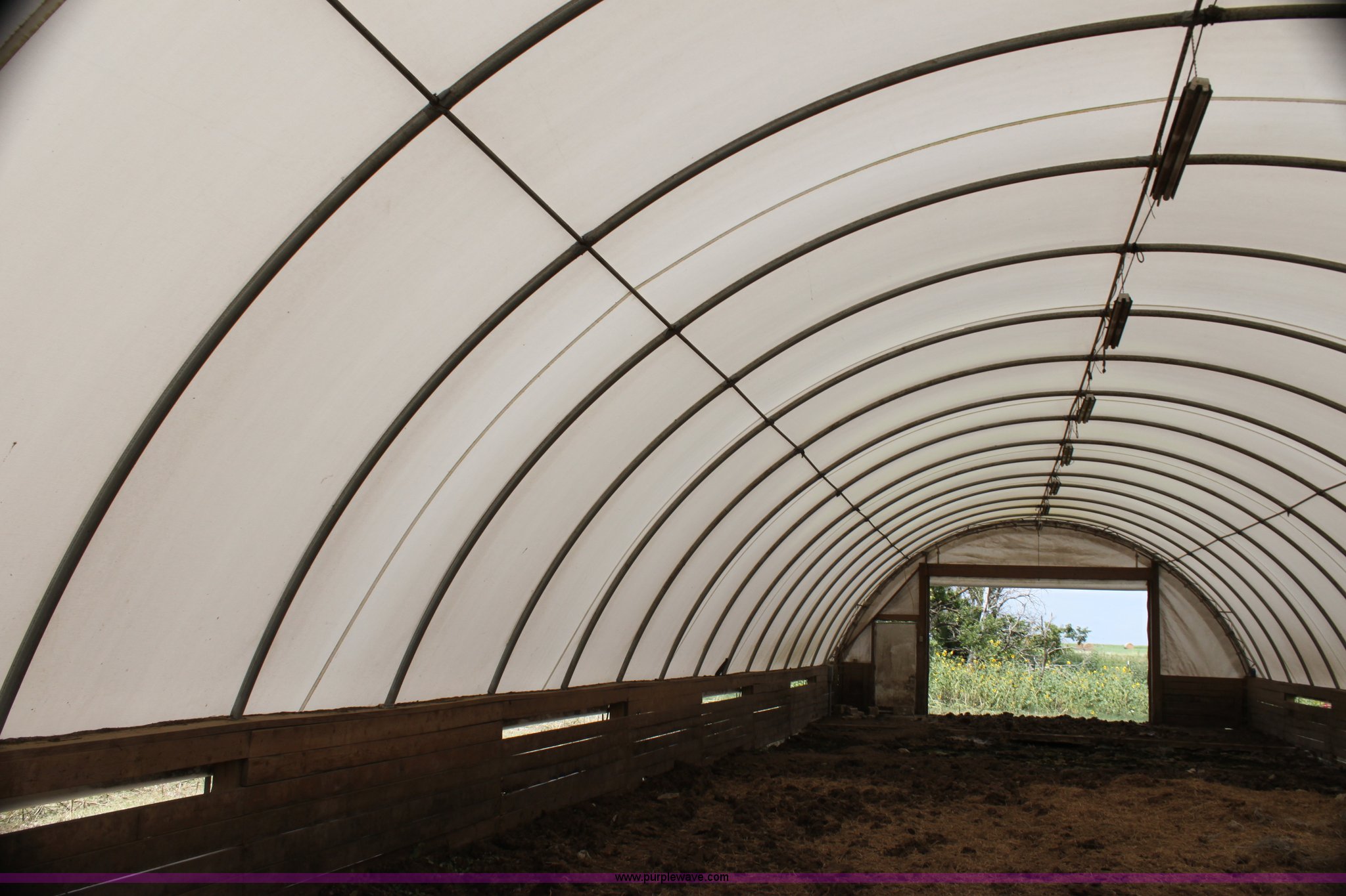Purple Wave is selling a used Home Improvement in Kansas. This item is a Quick Structures 30' x 90' coverall hoop shed with the following: 3' 2" x 6" stem wall, Buyer is responsible for all aspects of removal within 90 days of auction