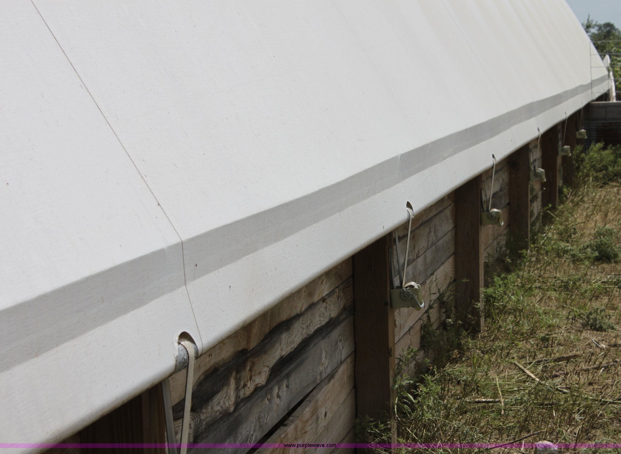 Purple Wave is selling a used Home Improvement in Kansas. This item is a Quick Structures 30' x 90' coverall hoop shed with the following: 3' 2" x 6" stem wall, Buyer is responsible for all aspects of removal within 90 days of auction