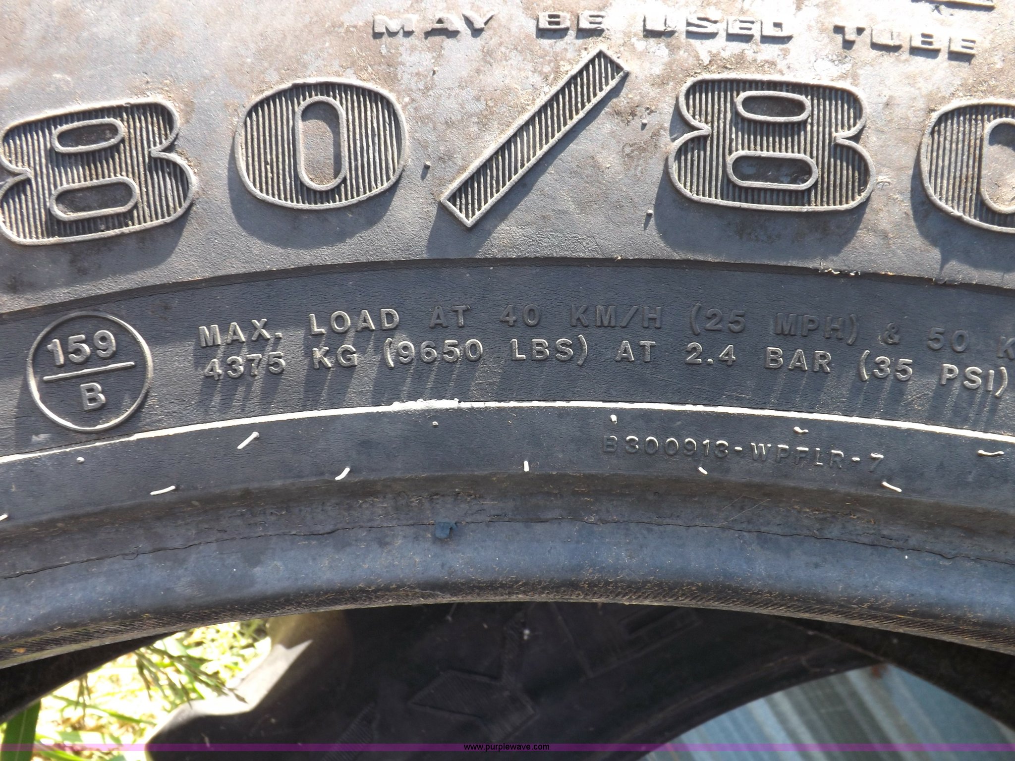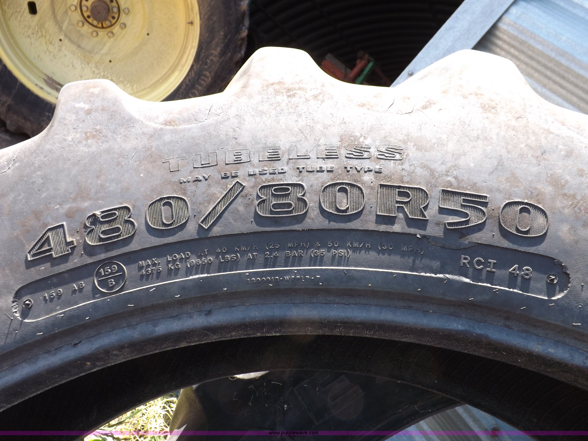 Purple Wave is selling a used Industrial Tires or Tracks in Kansas. This item is a (2) Goodyear tractor tires with the following: DT800 radials, 480/80R50, Tube or tubeless
