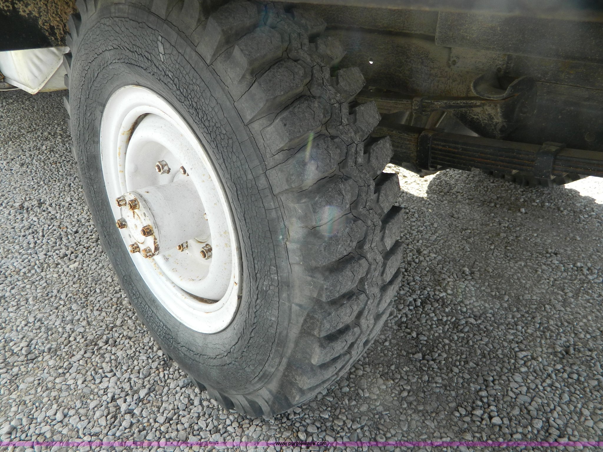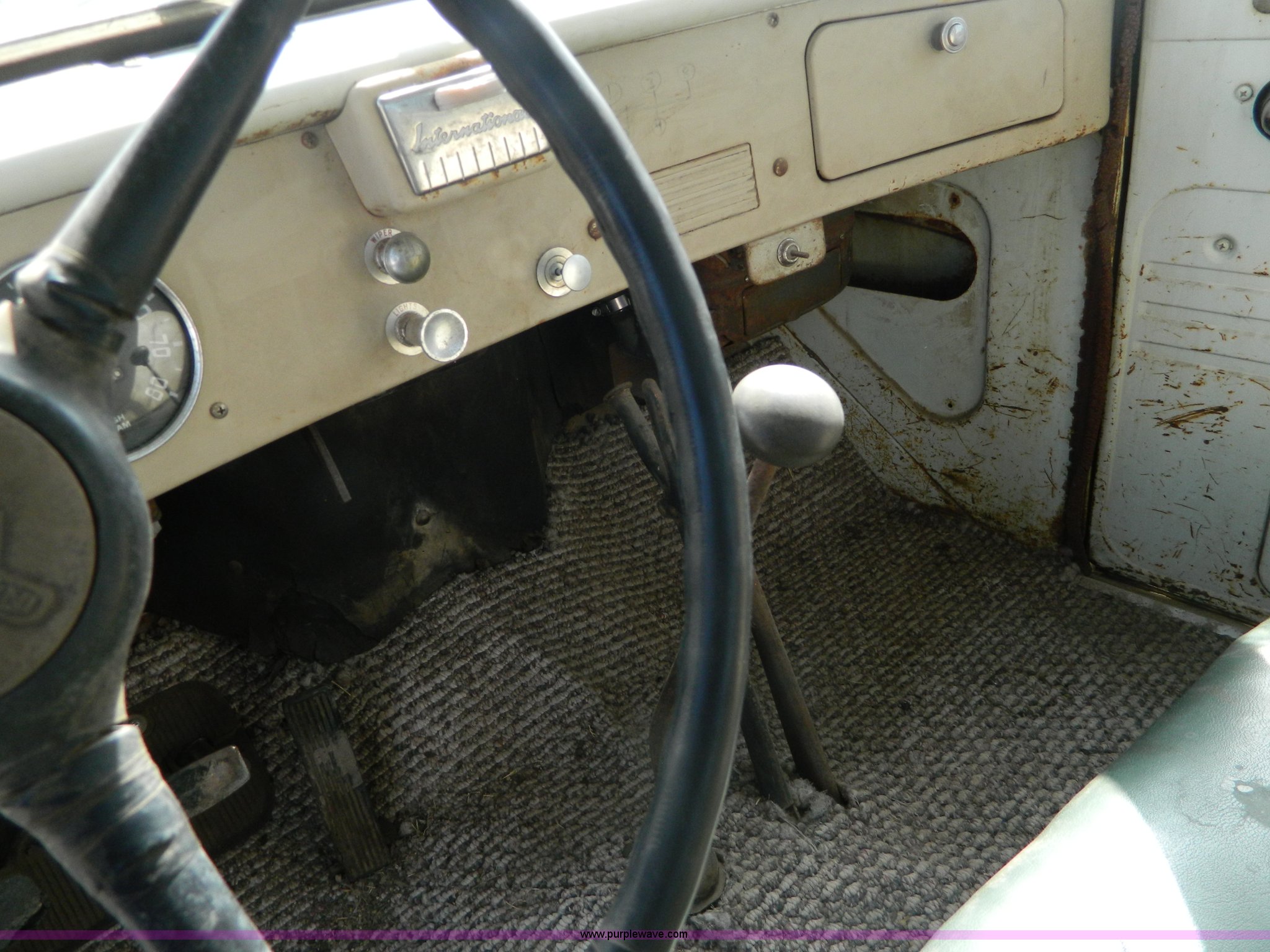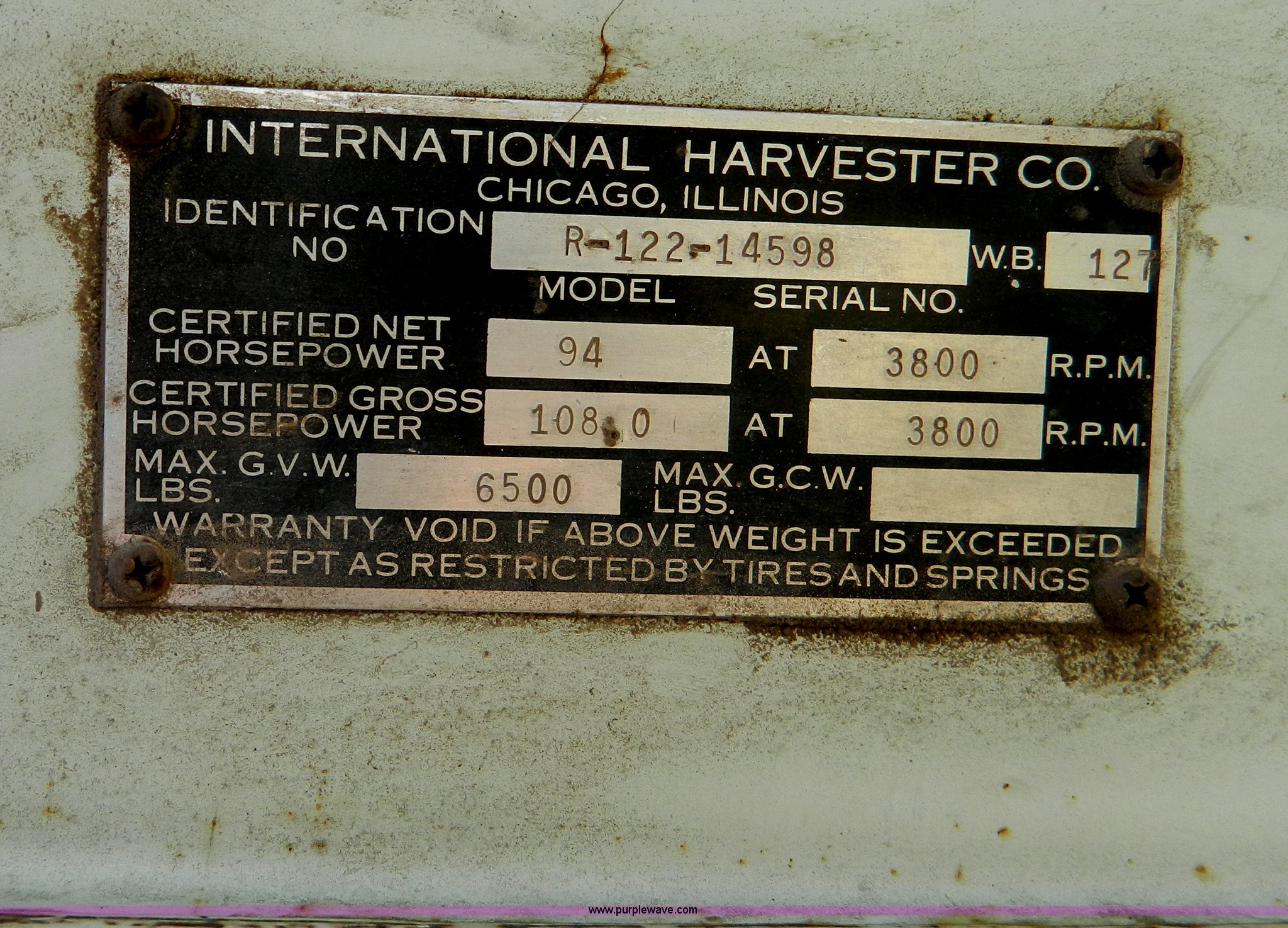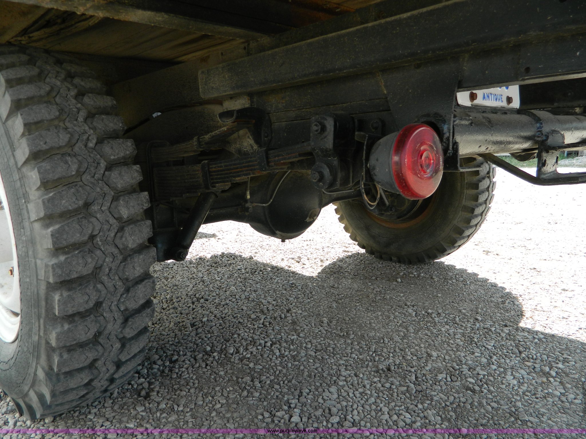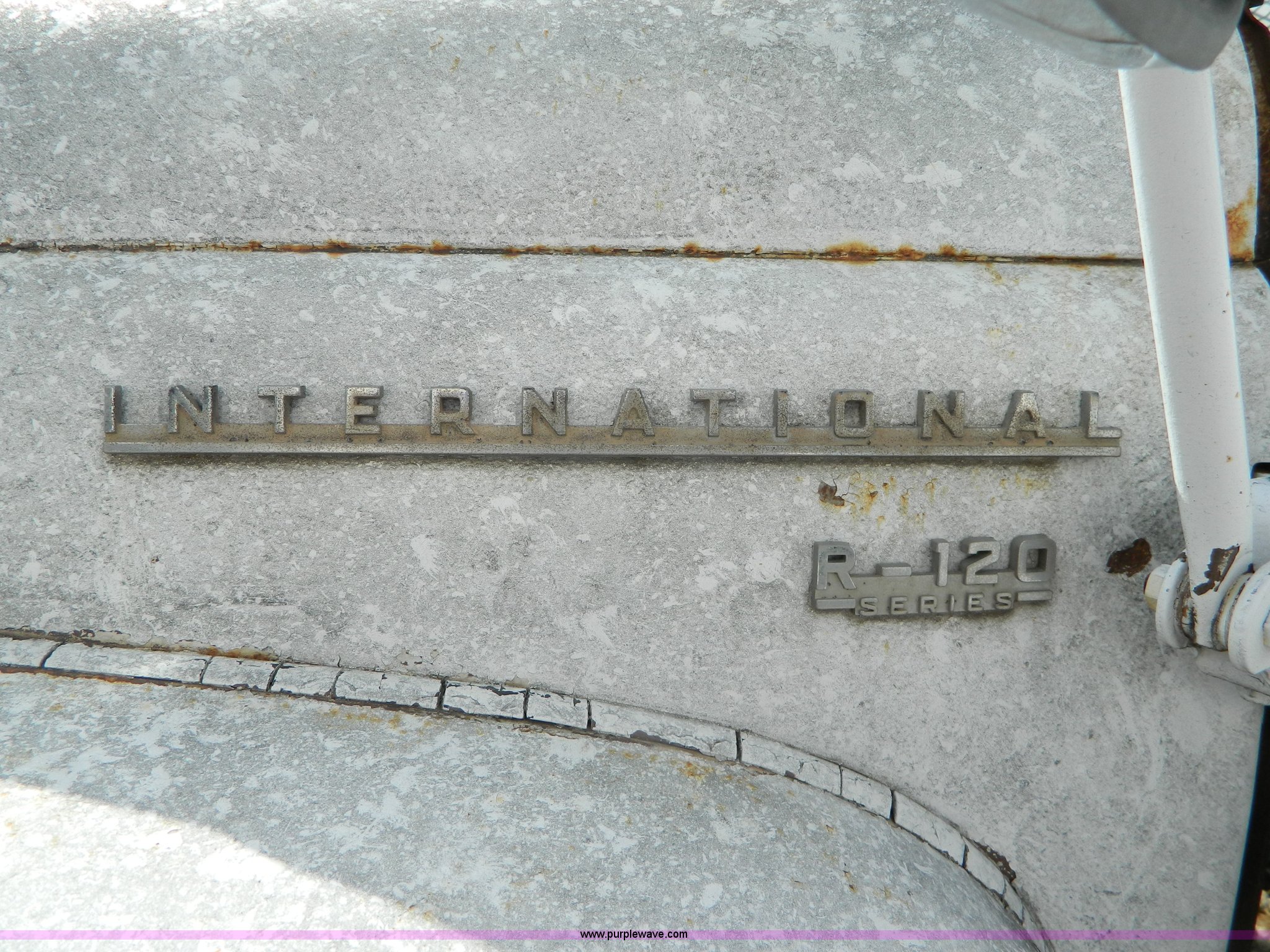 1955 International Harvester R120 winch dump bed truck. 79,140 miles on odometer, Six cylinder gas engine, Four speed manual transmission, 8' x 80" steel flatbed, Side bed boards, Spring suspension, 127" wheelbase, LT235/95R16 tires, GVWR 6,500 lbs. View repairs. R12214598. View equipment video. 1433 N. Fossil. Russell, KS 67665