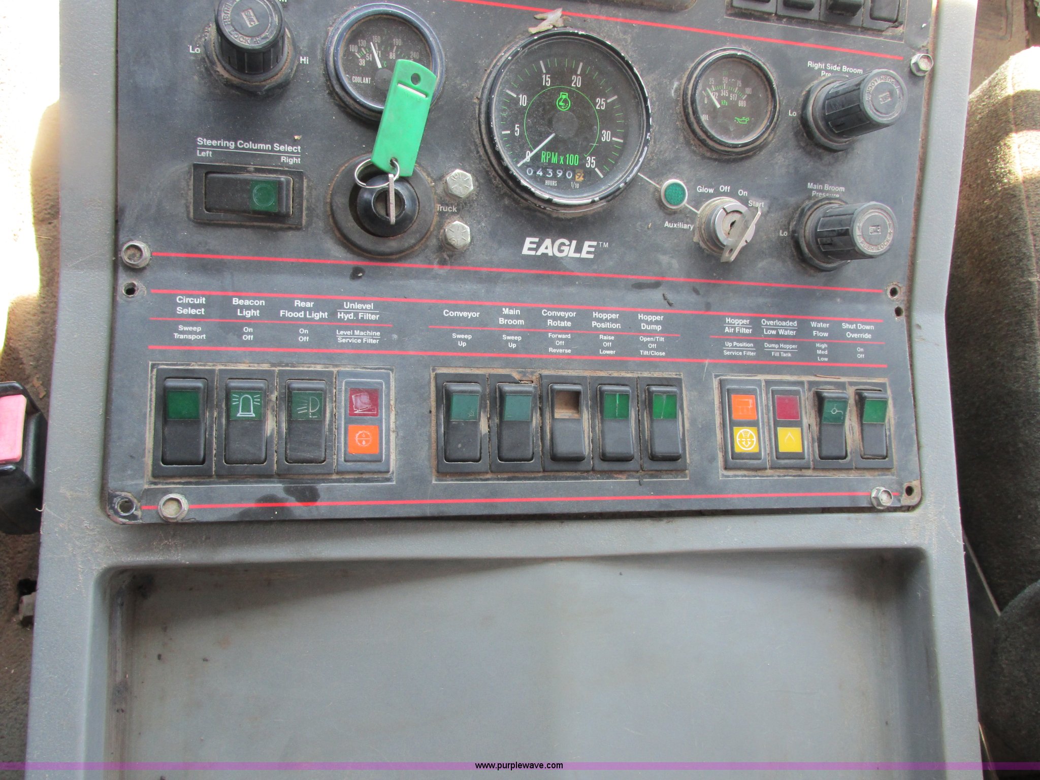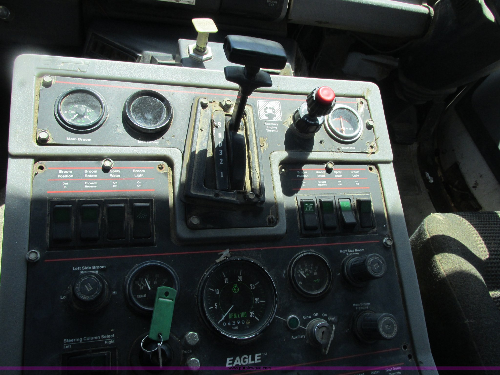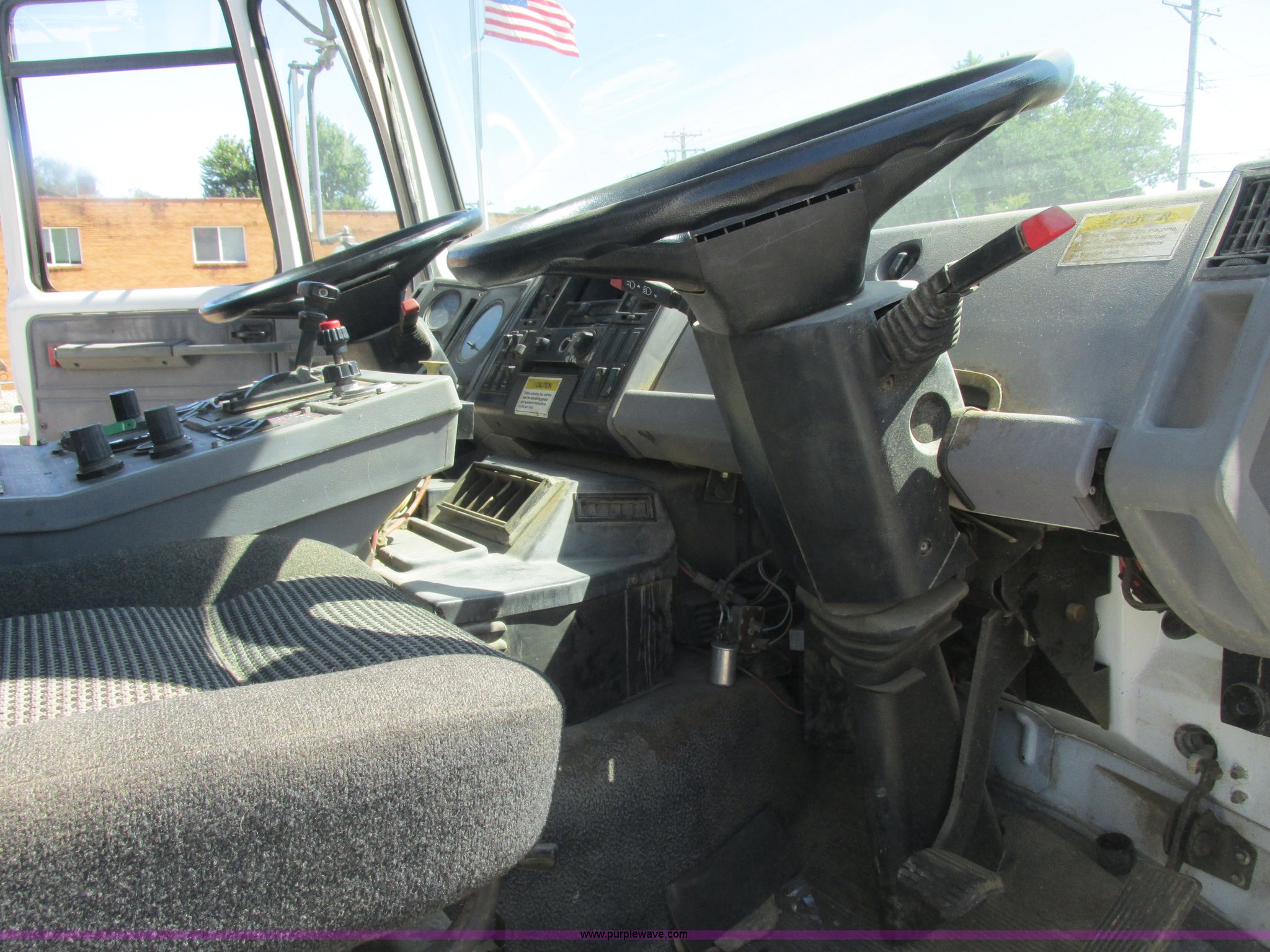 Purple Wave is selling a used Street Sweeper Truck in Missouri. This item is a 1996 Ford CF7000 street sweeper with the following: 30,305 miles on odometer, 4,390 hours on meter, Cummins ISB 5.9L L6 diesel engine, Allison four speed automatic transmission, Heat, 1995 Elgin sweeper attachment, Left and right hand drive, Left and right side brooms with pressure adjustment, Rear brooms, Conveyor and hopper dump, Water spray system, Serial F0669D, 11R22.5 tires, Exterior passenger door latch broken, Interior/exterior cosmetic damage