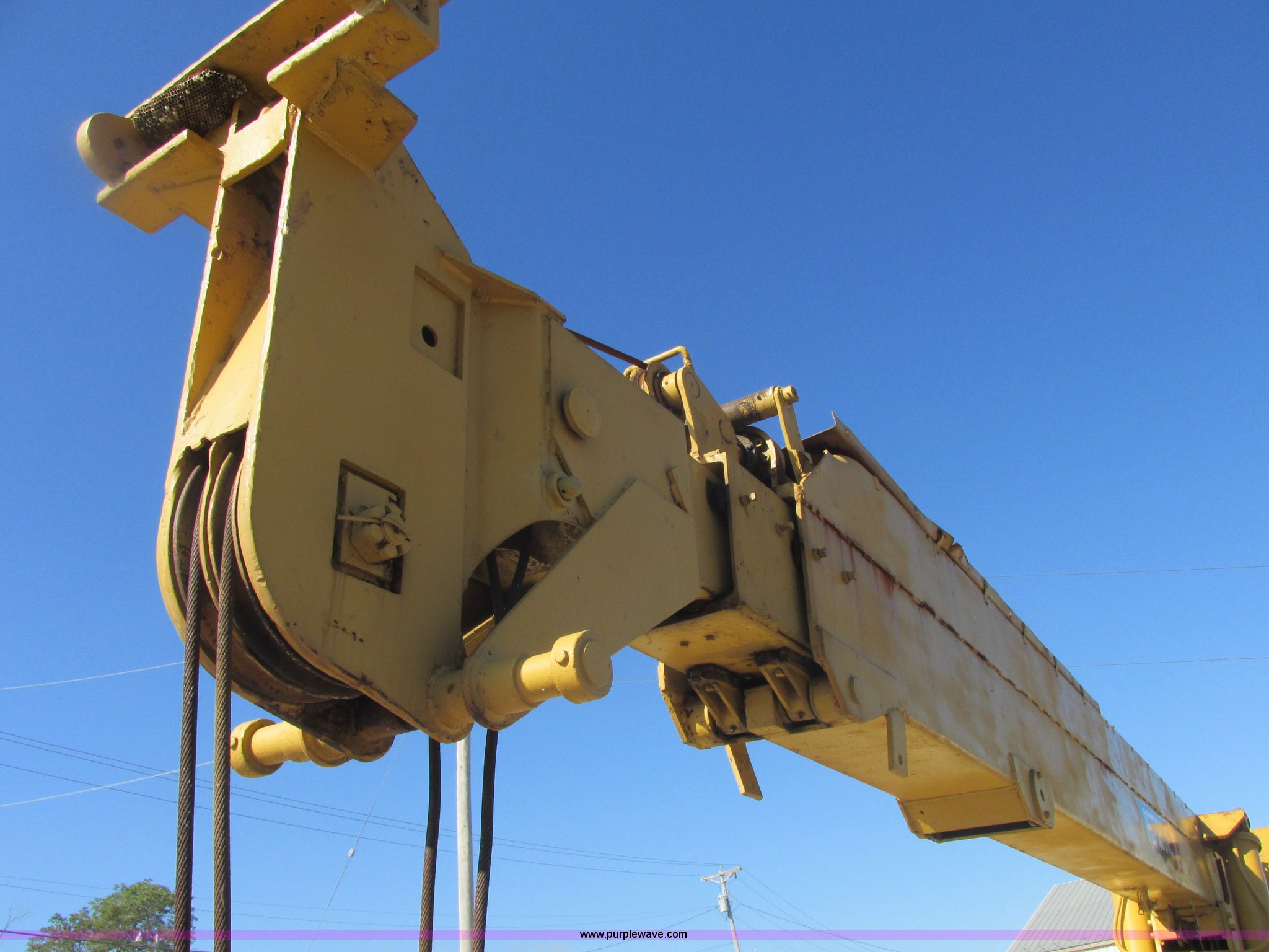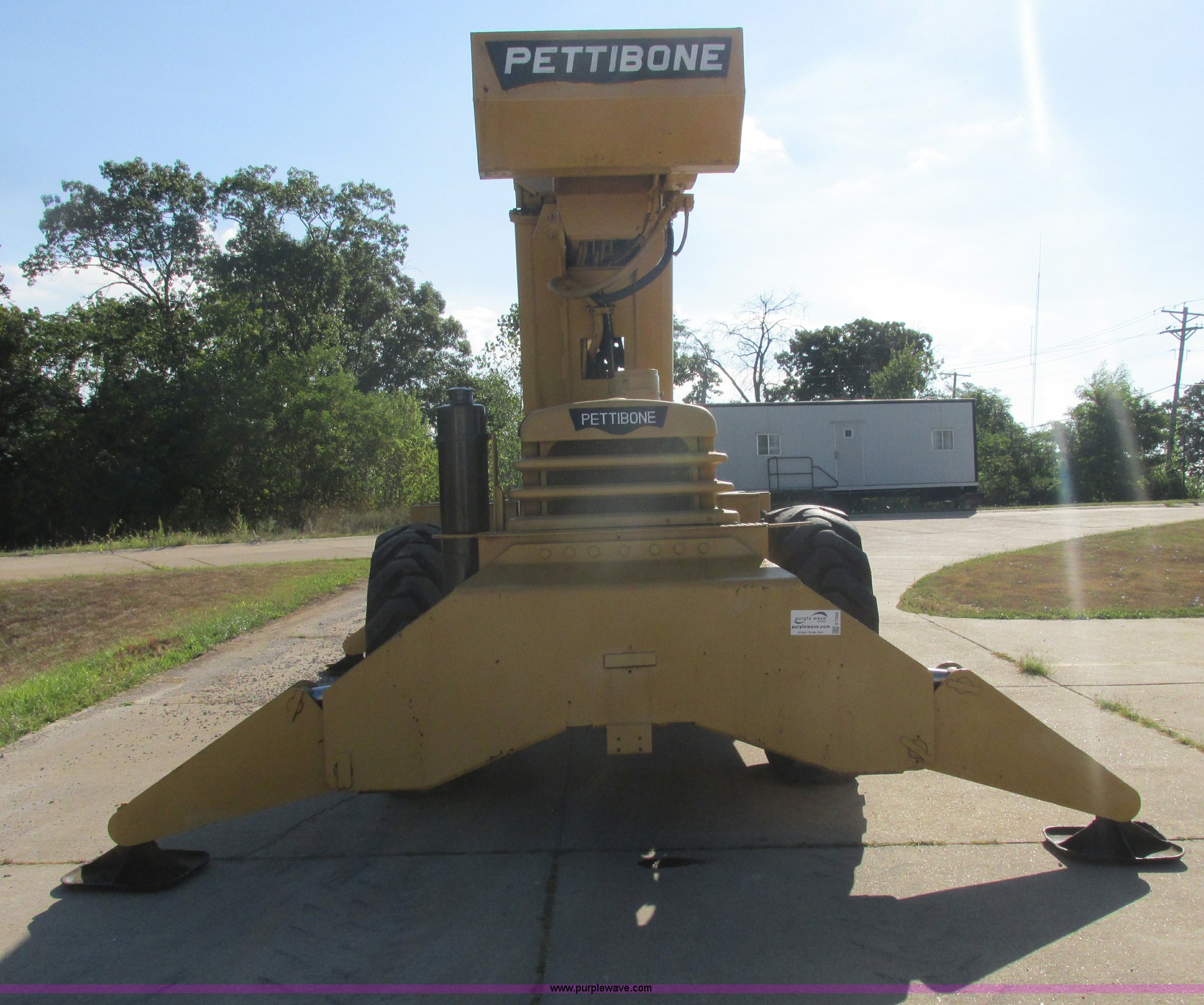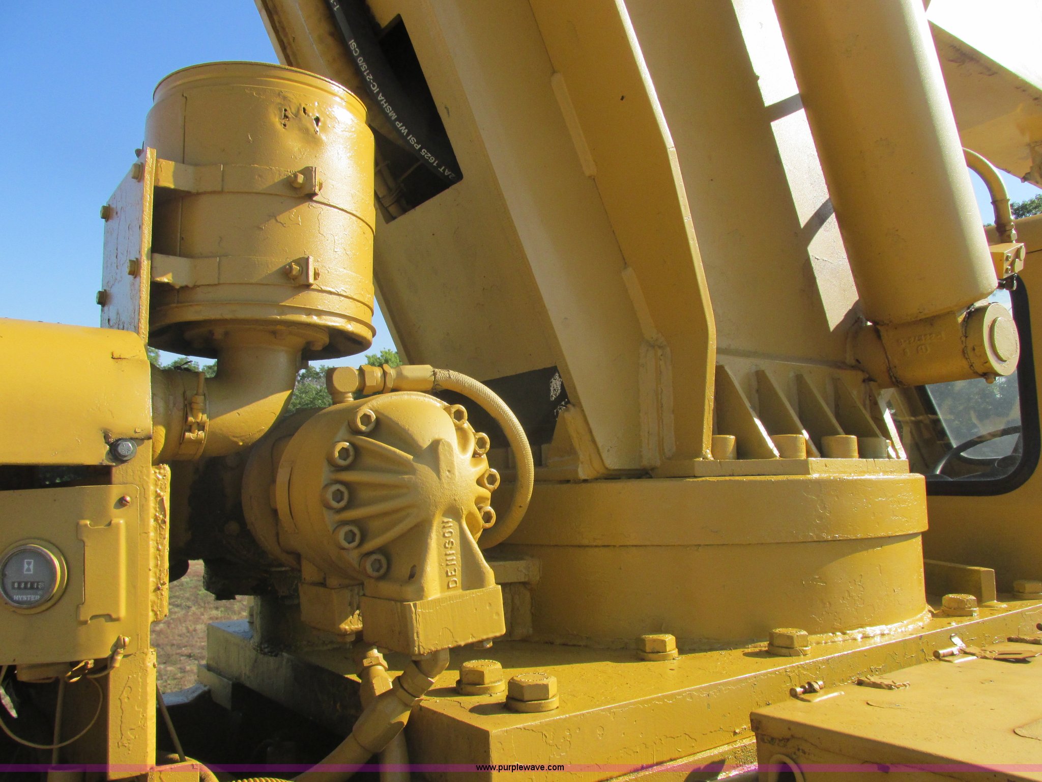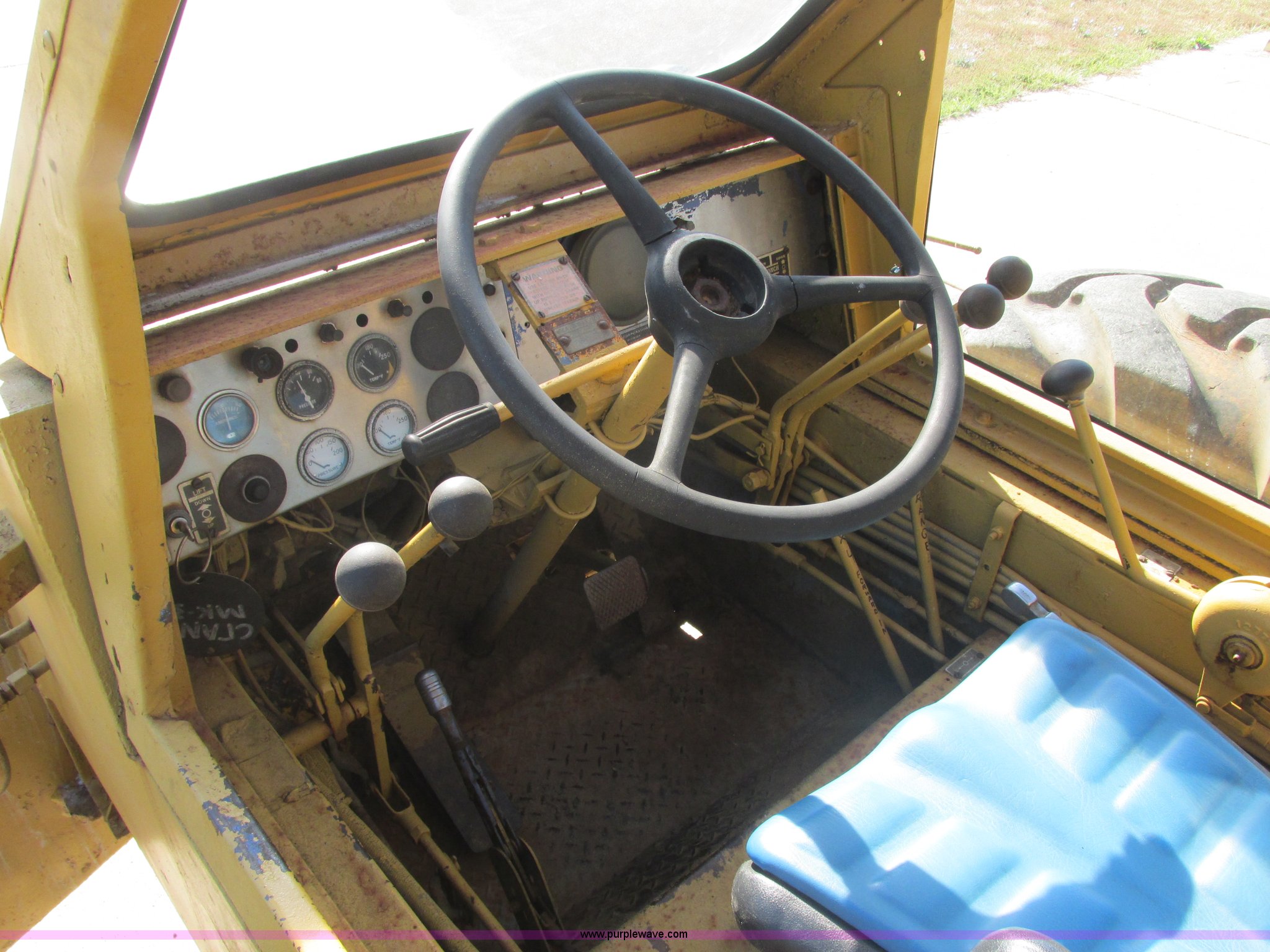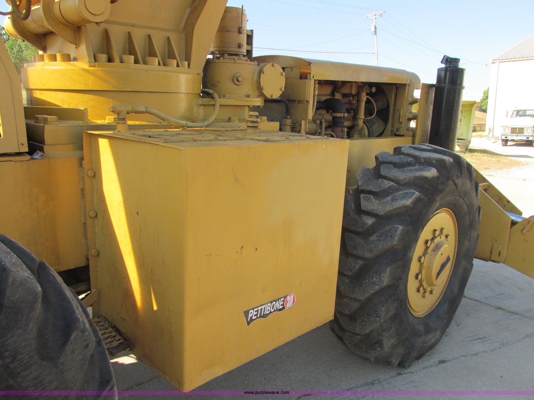 Purple Wave is selling a used Rough or All Terrain Crane in Missouri. This item is a 1969 Pettibone 30 all terrain 15 ton crane with the following: 312 hours on meter, Cummins six cylinder diesel engine, Serial 72368, Dual range three speed transmission, 6F-6R gears, Four wheel drive, Four wheel steer, Crab steer, Conventional steering, Enclosed cab, 60' reach, Jib mounts, Hand operated jib winch, No jib included, Three stage boom, 360 degree rotation, Double sheave block and hook, Greasable single line block, Dual line cable, Hydraulic brakes, Front flashers, Parking brakes, 16.00-24 tires, 38,400 lbs. base operating weight, Recently replaced battery, Serial 962A2632