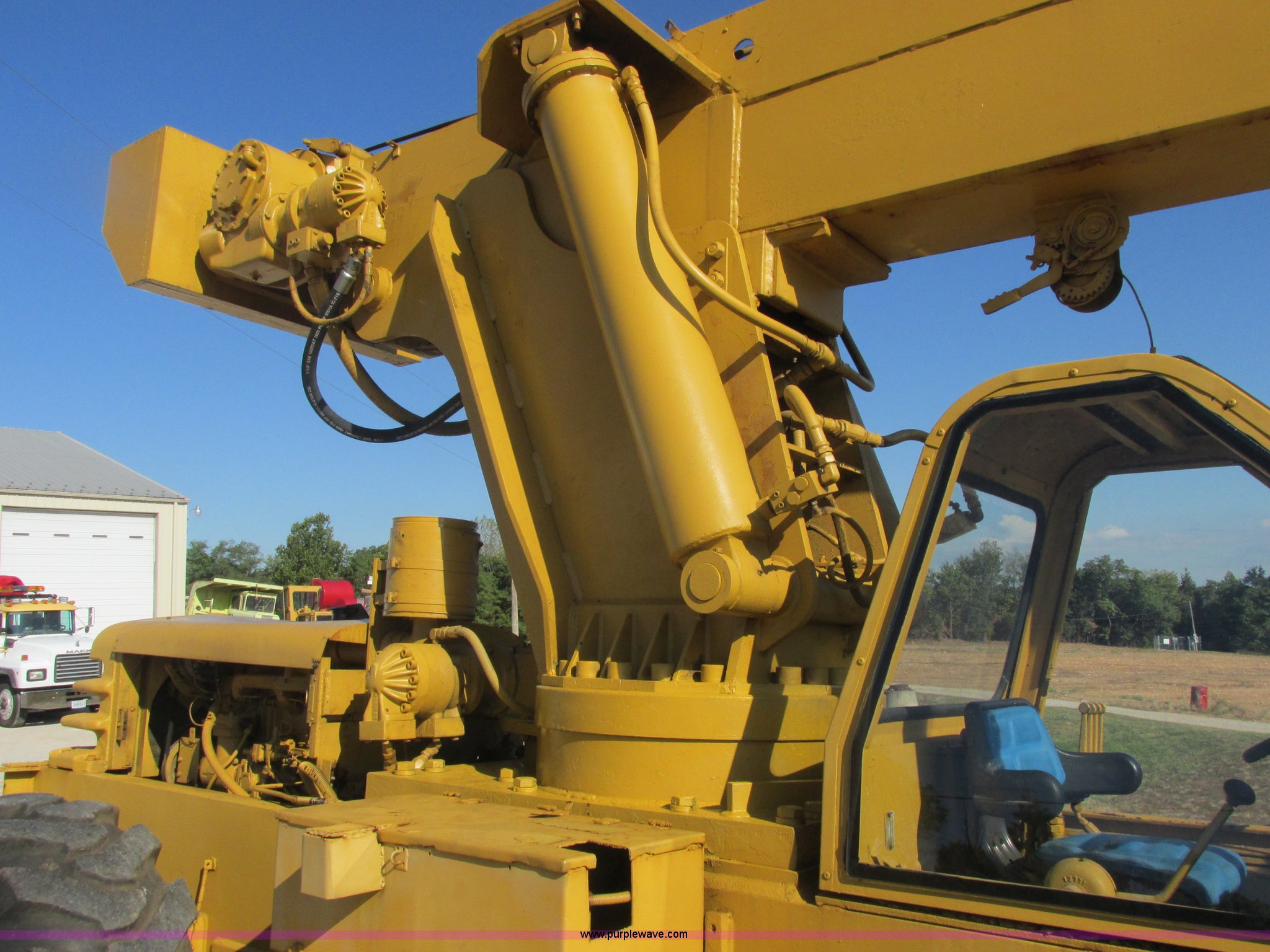 1969 Pettibone 30 all terrain 15 ton crane. 312 hours on meter, Cummins six cylinder diesel engine Serial 72368, Dual range three speed transmission 6F-6R gears, Four wheel drive, Four wheel steer, Crab steer, Conventional steering, Enclosed cab, 60' reach, Jib mounts, Hand operated jib winch No jib included, Three stage boom, 360 degree rotation, Double sheave block and hook Greasable single line block, Dual line cable, Hydraulic brakes, Front flashers, Parking brakes, 16.00-24 tires, 38,400 lbs. base operating weight, Recently replaced battery, Serial 962A2632. View equipment video. Kaufmann Construction, LLC. 123 TRW Industrial Ct. High Ridge, MO 63049
