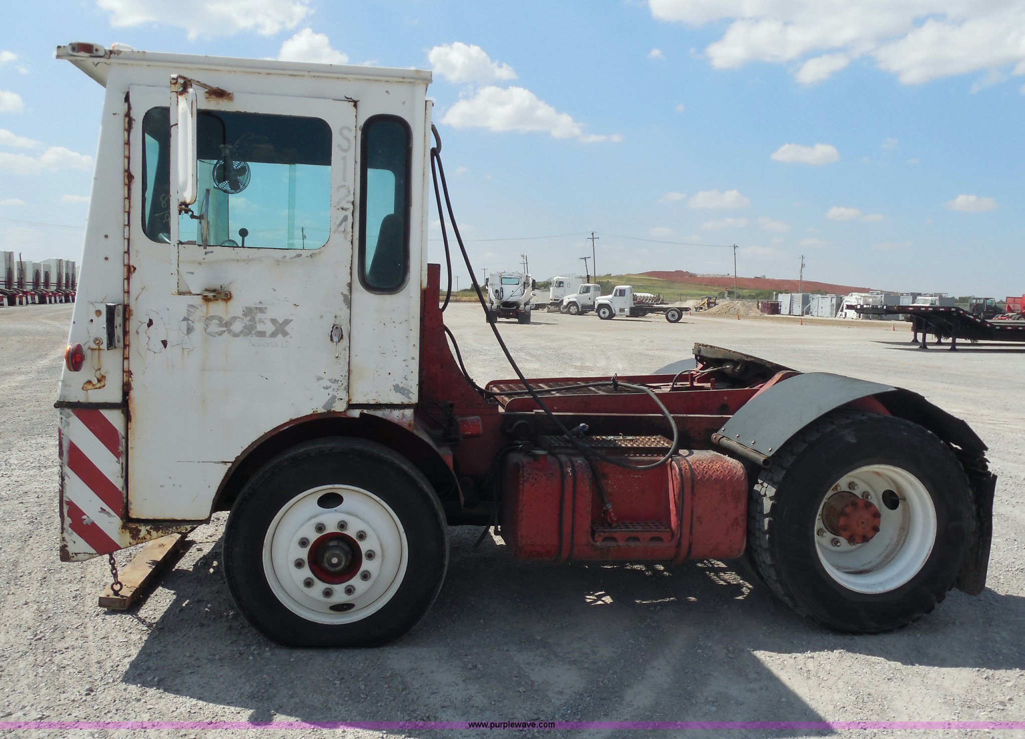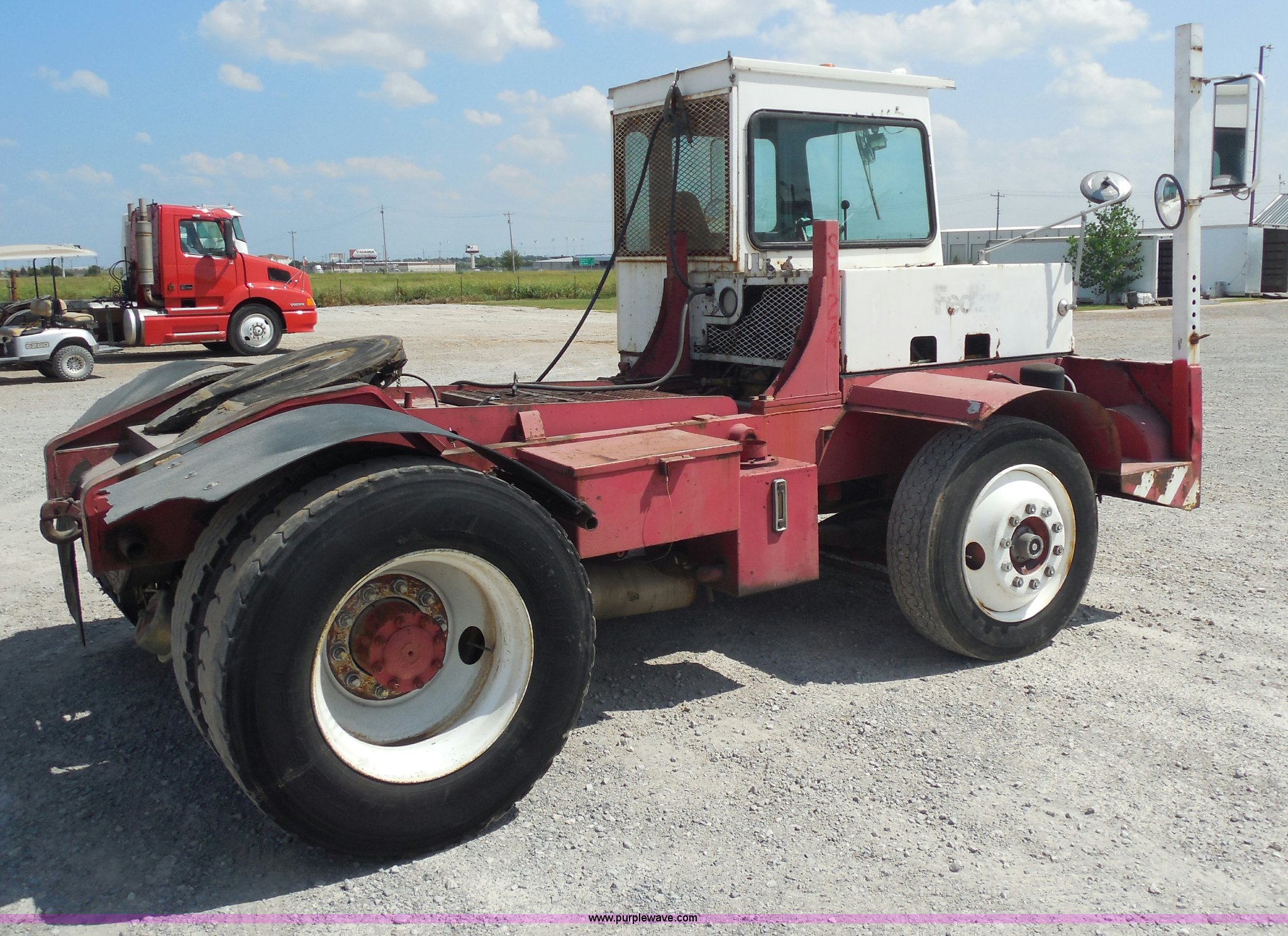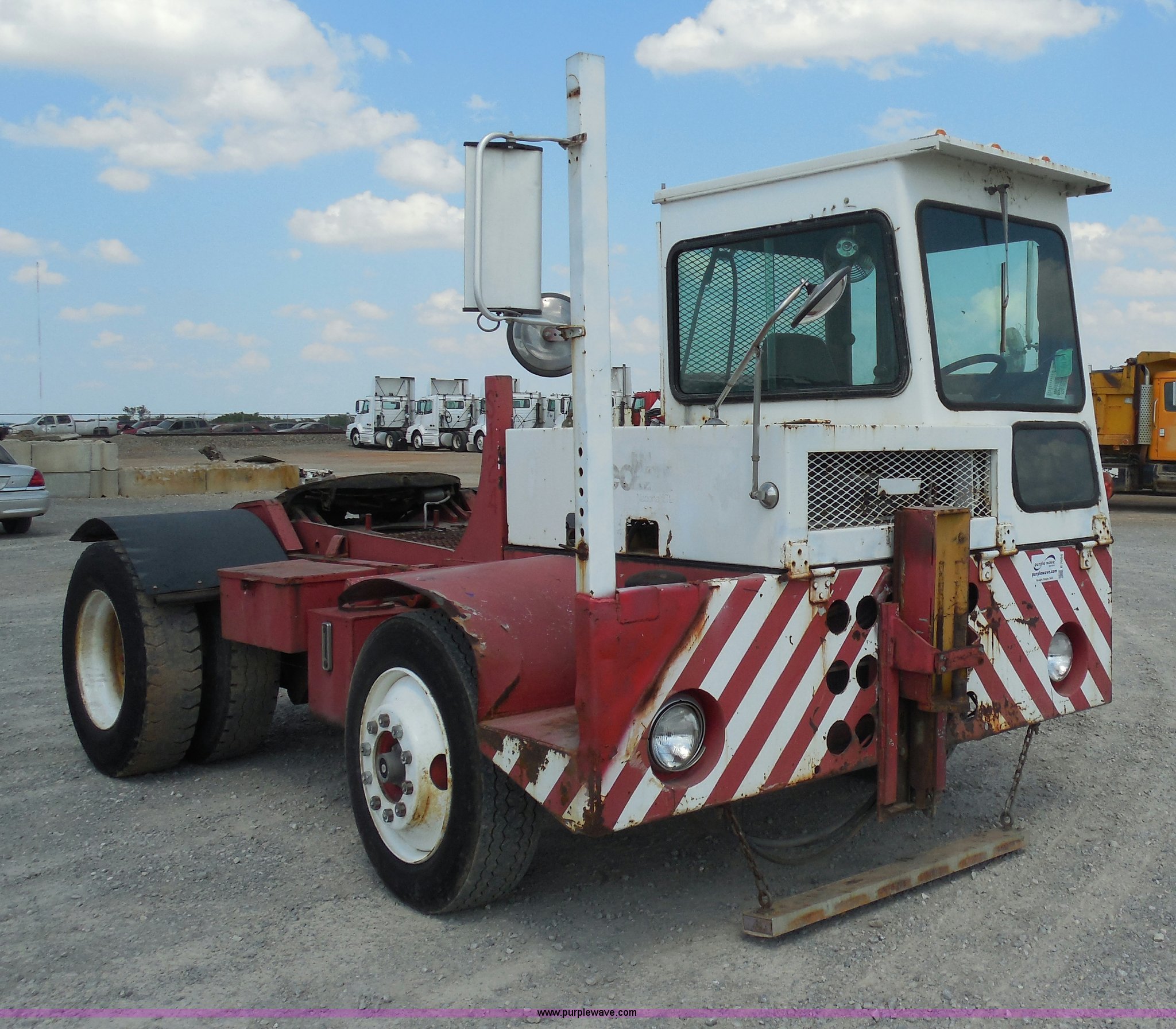 Purple Wave is selling a used Yard Truck in Oklahoma. This item is a Yard truck with the following: 3,260 miles on odometer, Model YM400H, Caterpillar 3208 V8 diesel engine, Engine replaced in the last 12 months, Automatic transmission, 4F-1R gears, Heat, 50 gallon fuel tank, Hydraulic driven front winch, Hydraulic fifth wheel plate, Solid suspension, Wheel nut covers, 255/70R22.5 tires