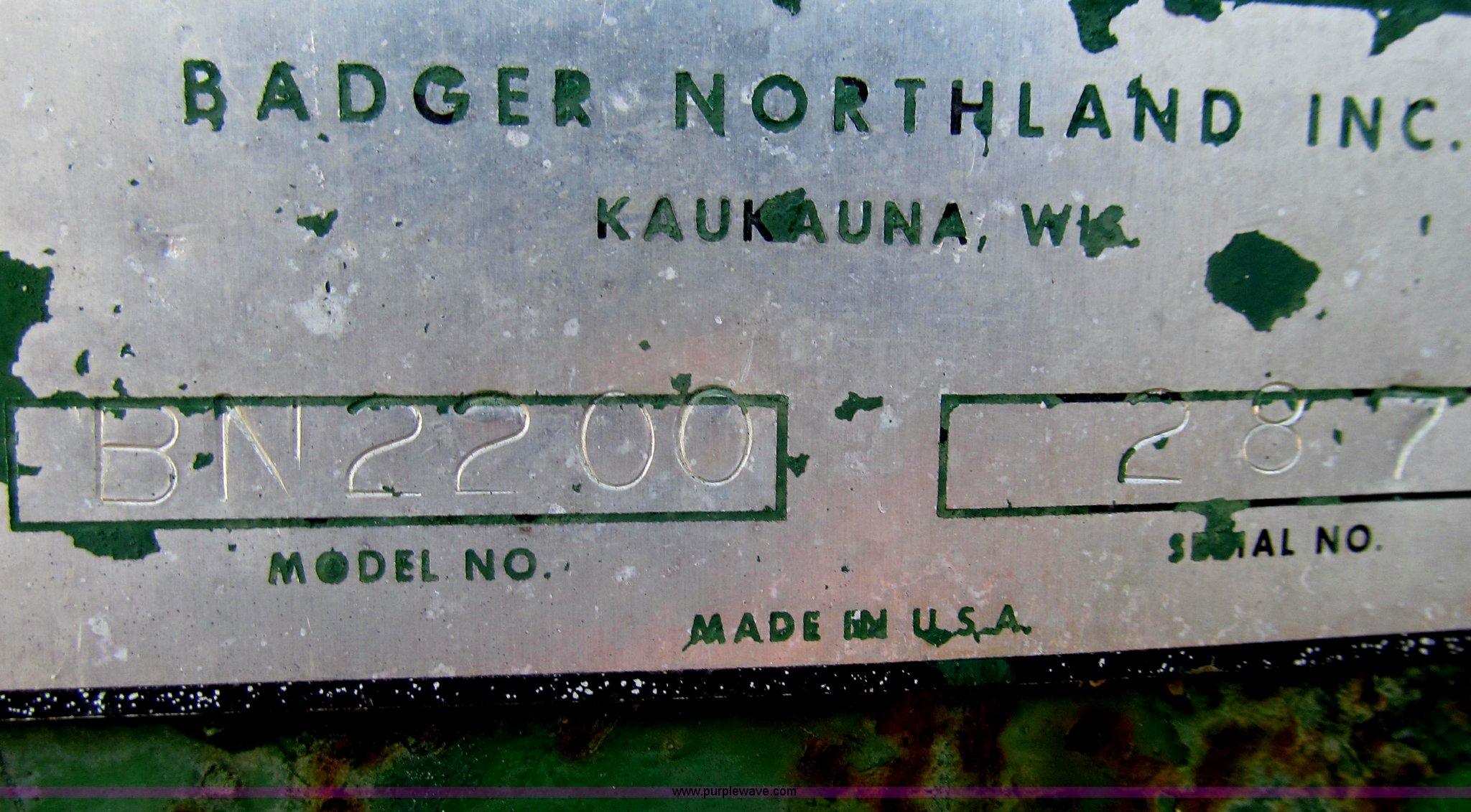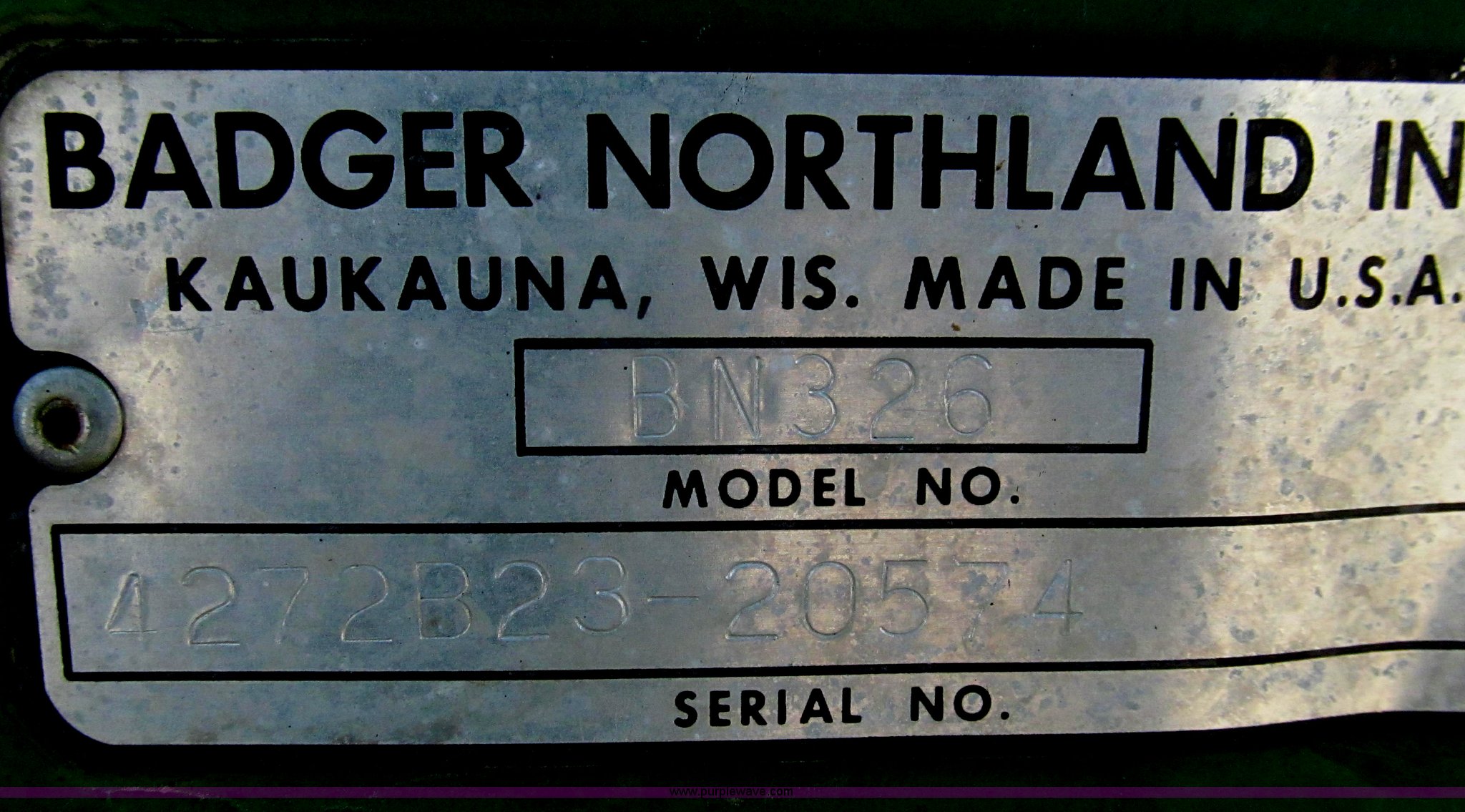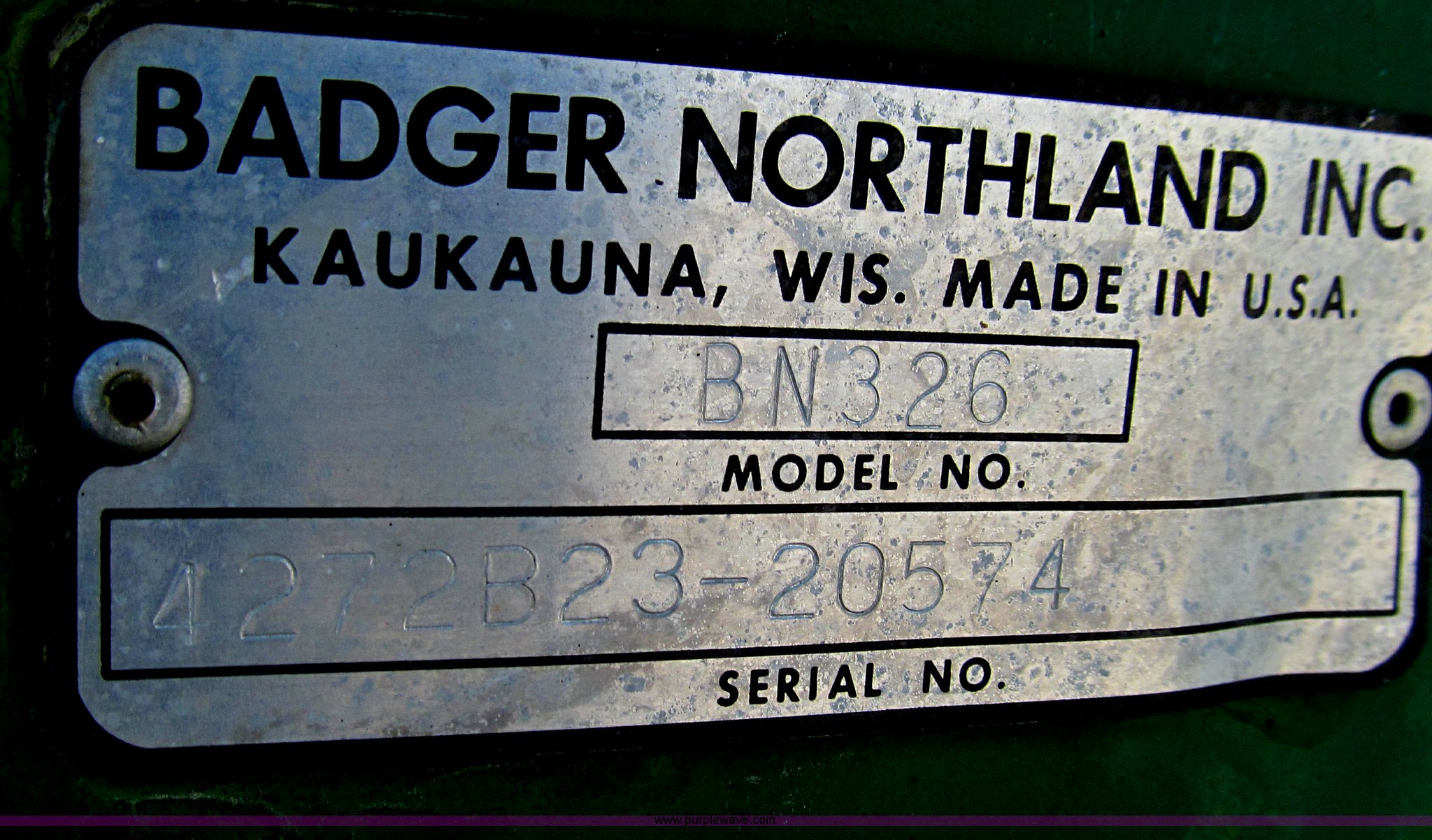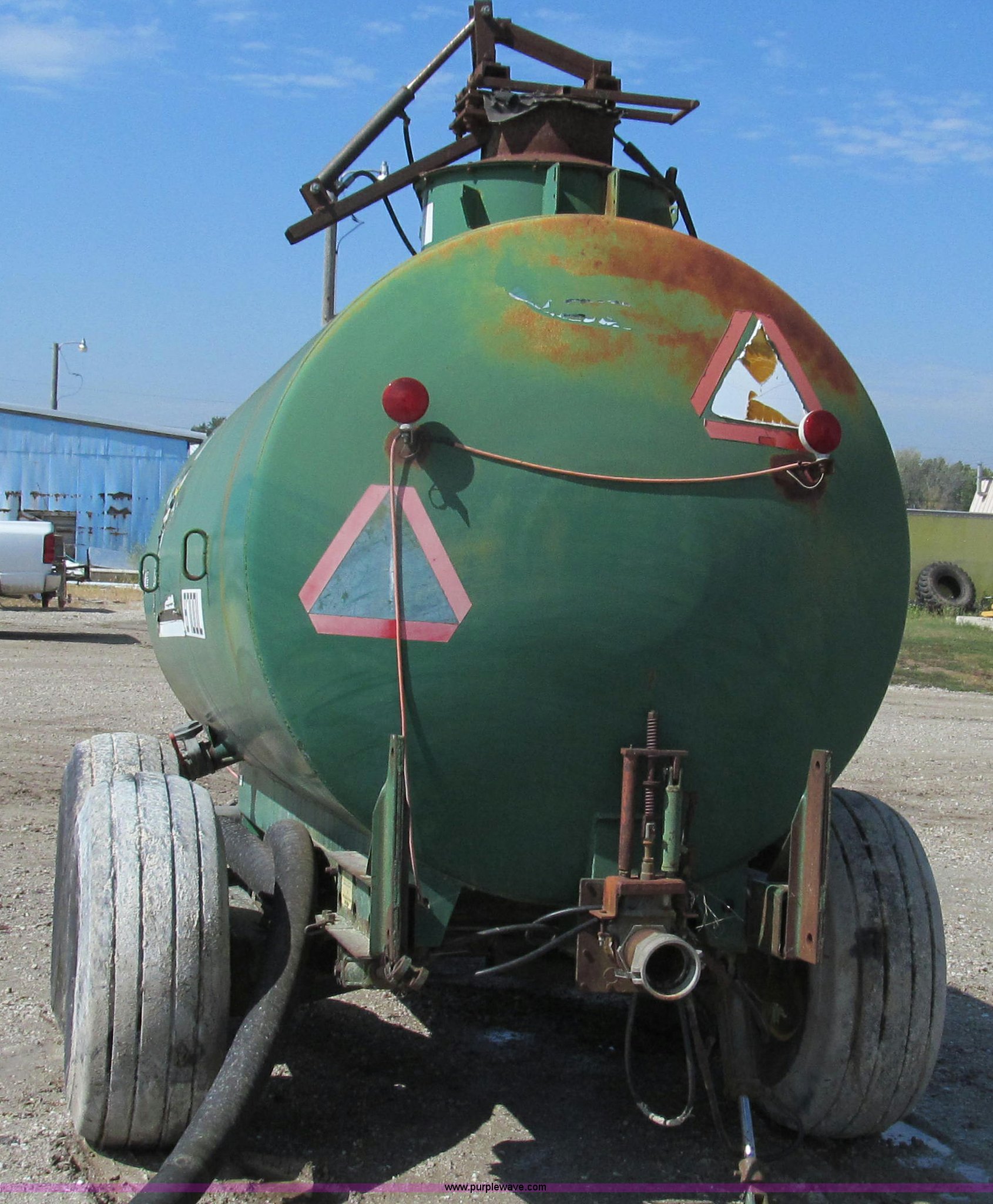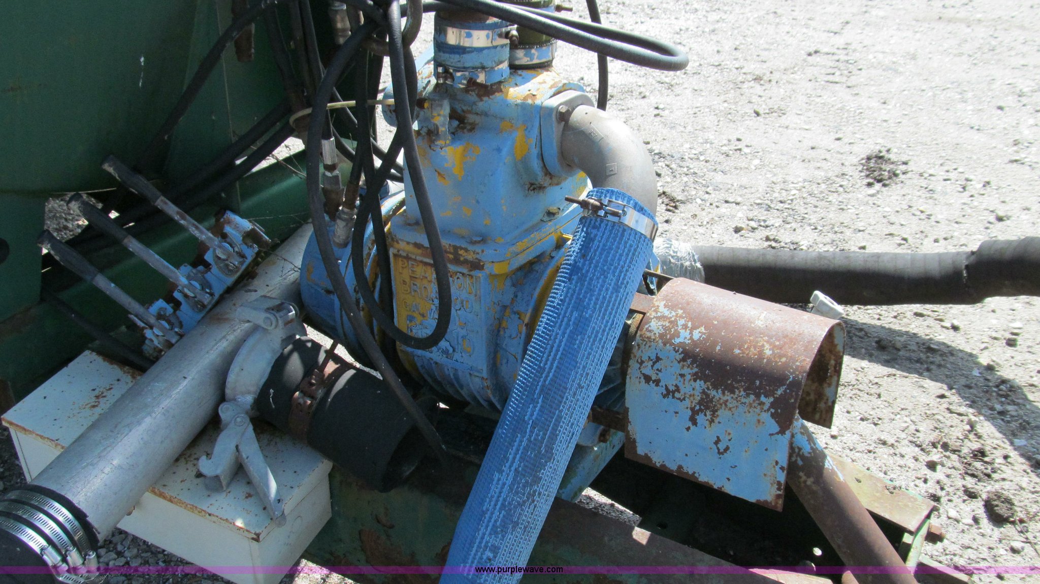 Purple Wave is selling a used Manure Spreader in Missouri. This item is a Badger 8700L BN326 honey wagon with the following: 2,000 gallon capacity, 1,000 PTO, Pearson Bros. PB-10 pump, 4" inside diameter inlet and discharge hose, 12" BN2200 rear mounted applicator, Injection unit, Four shank, Spring cushioned and coil, Bolt-on knives, Hydraulic raise and lower, Serial 287, Pin hitch, Tandem axle, 16.5L-16.1 tires, Serial 4272B23-20574