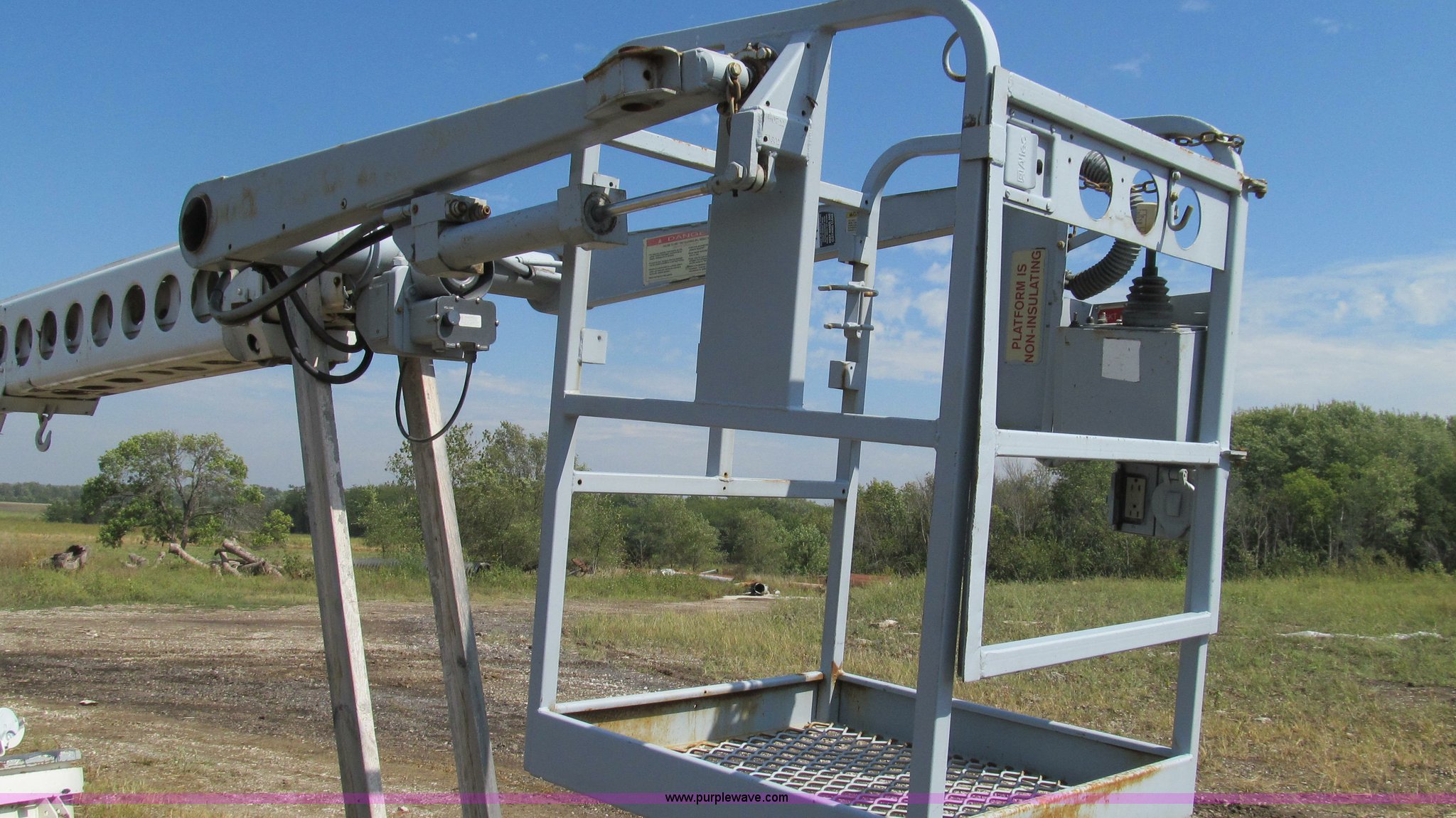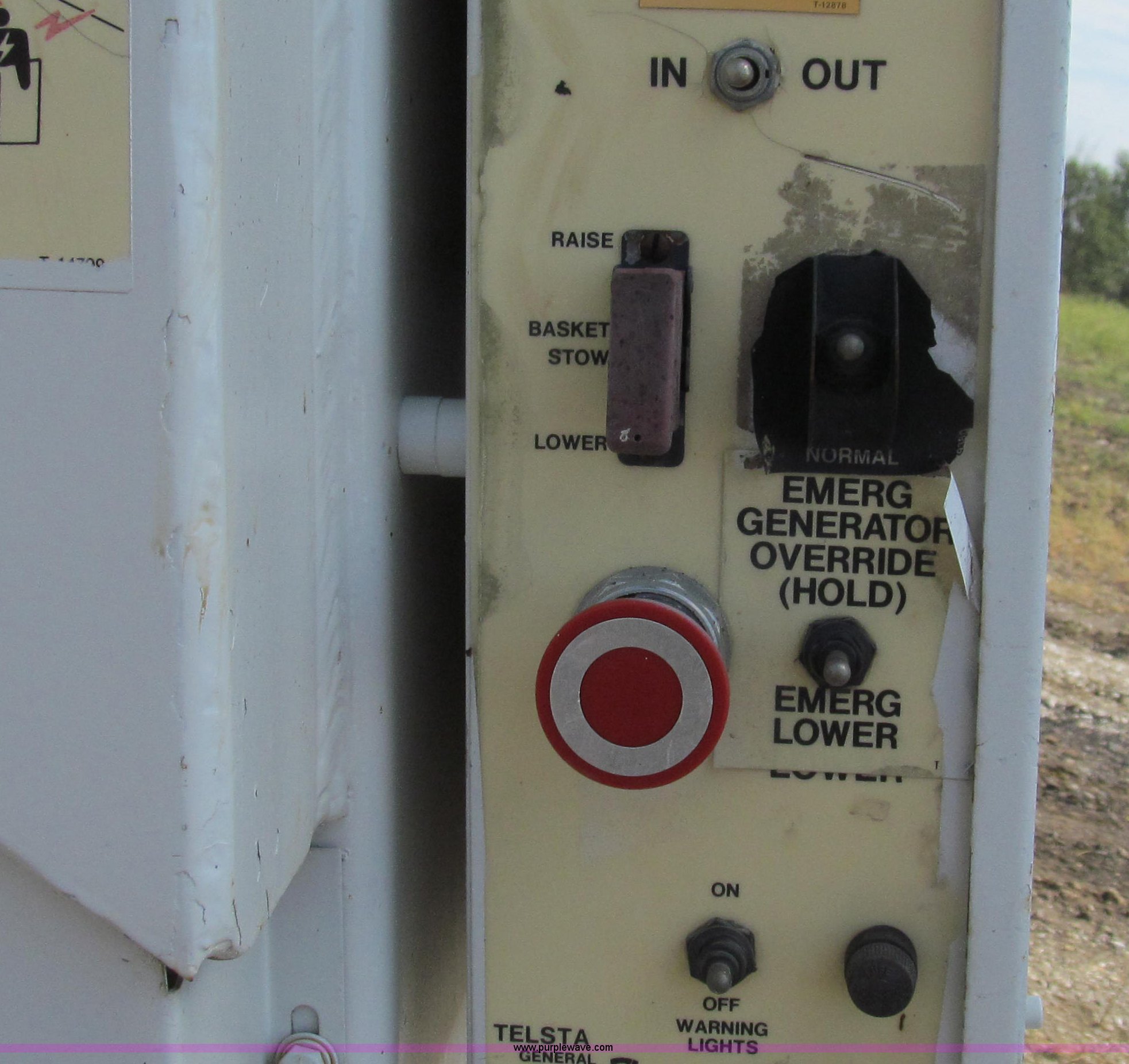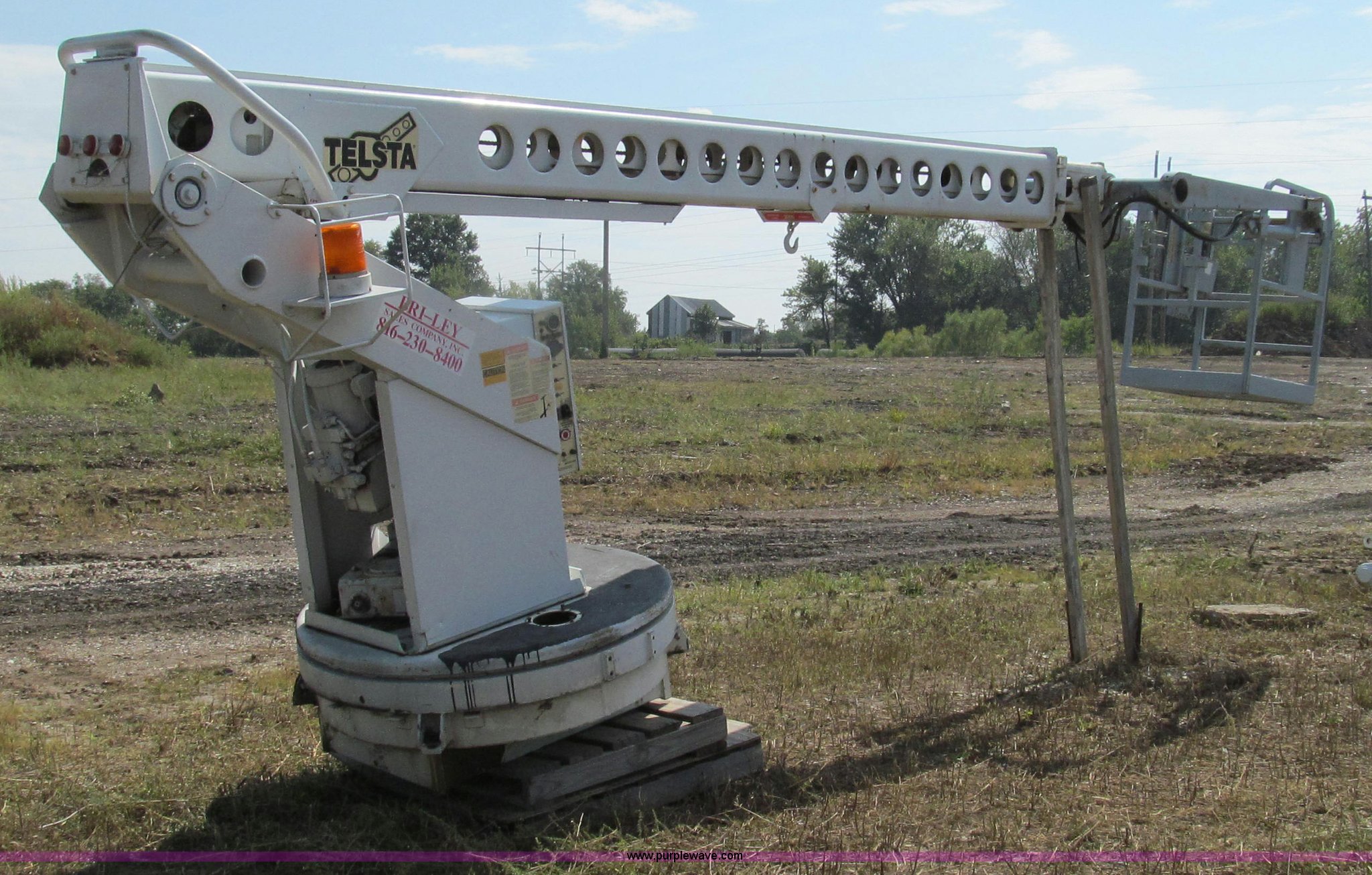 Purple Wave is selling a used Truck Part and Attach. in Missouri. This item is a 1992 Telsta T-400 single platform man lift with the following: 6,924 hours on meter, Reel cable attachment, Electric over hydraulic controls, 29" x 29" platform, 500 lbs maximum platform capacity, 35' maximum reach, Ground and platform controls, Two stage boom, 54" diameter base, 2,000 lbs maximum hydraulic pressure, 6,000 lbs maximum reel arm load capacity, 20,000 lbs maximum pull load, Serial 92400018