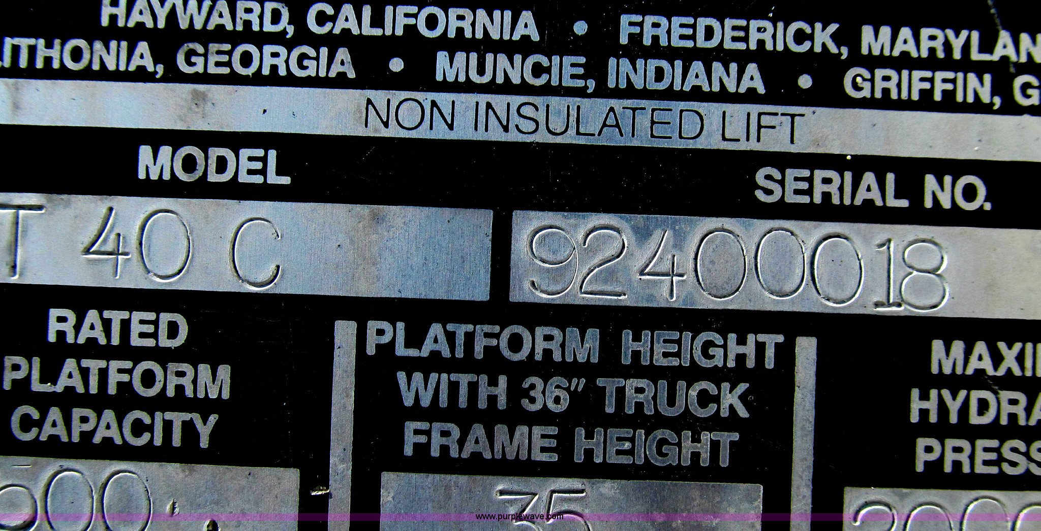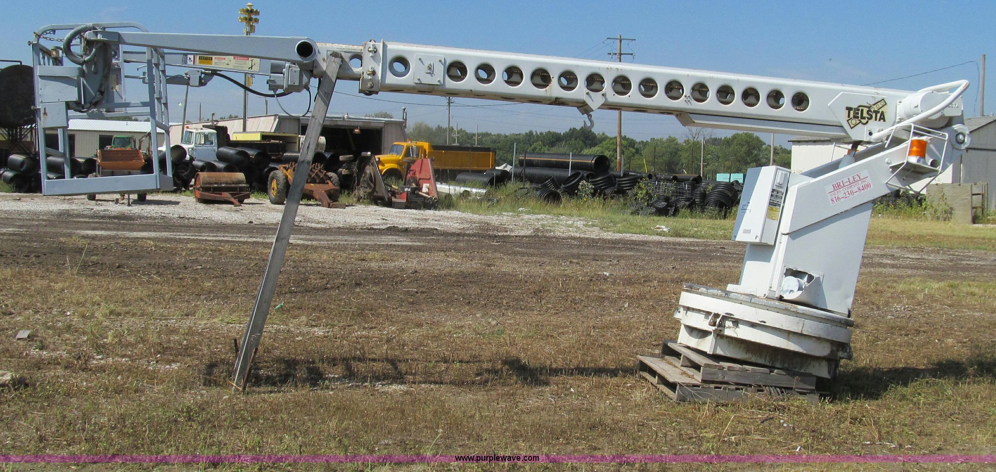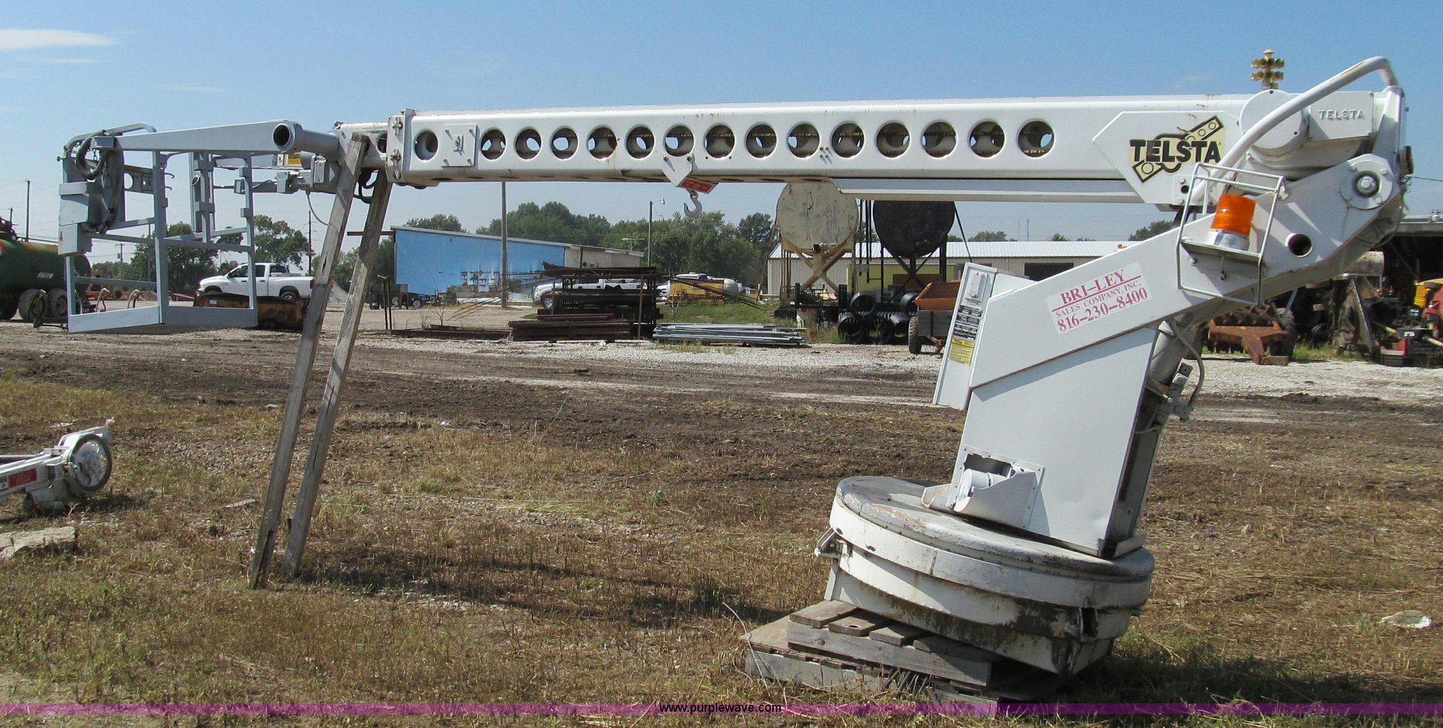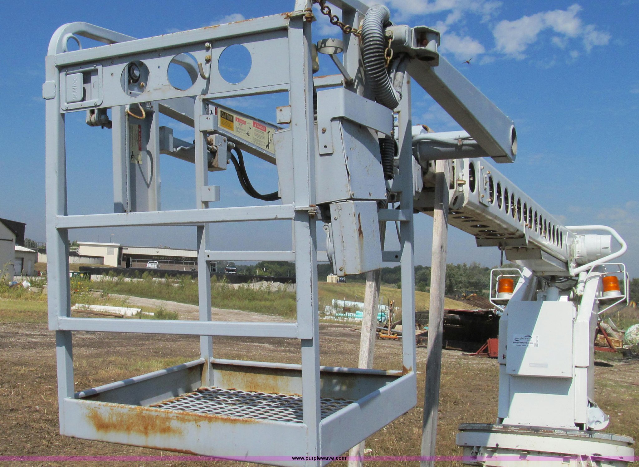 Purple Wave is selling a used Truck Part and Attach. in Missouri. This item is a 1992 Telsta T-400 single platform man lift with the following: 6,924 hours on meter, Reel cable attachment, Electric over hydraulic controls, 29" x 29" platform, 500 lbs maximum platform capacity, 35' maximum reach, Ground and platform controls, Two stage boom, 54" diameter base, 2,000 lbs maximum hydraulic pressure, 6,000 lbs maximum reel arm load capacity, 20,000 lbs maximum pull load, Serial 92400018