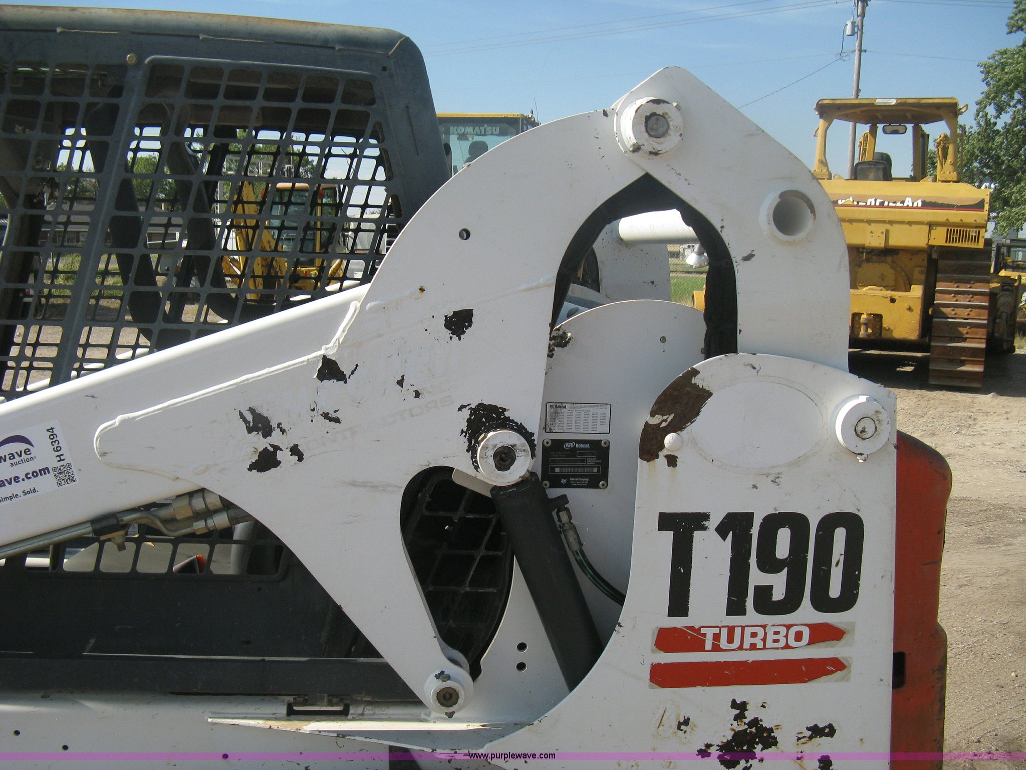 2004 Bobcat T190 Turbo track skid steer has sold in Wichita, Kansas for $15400. Item H6394 sold on October 17th, 2013.