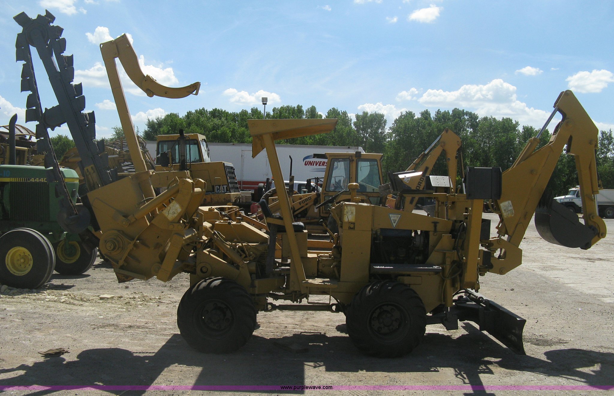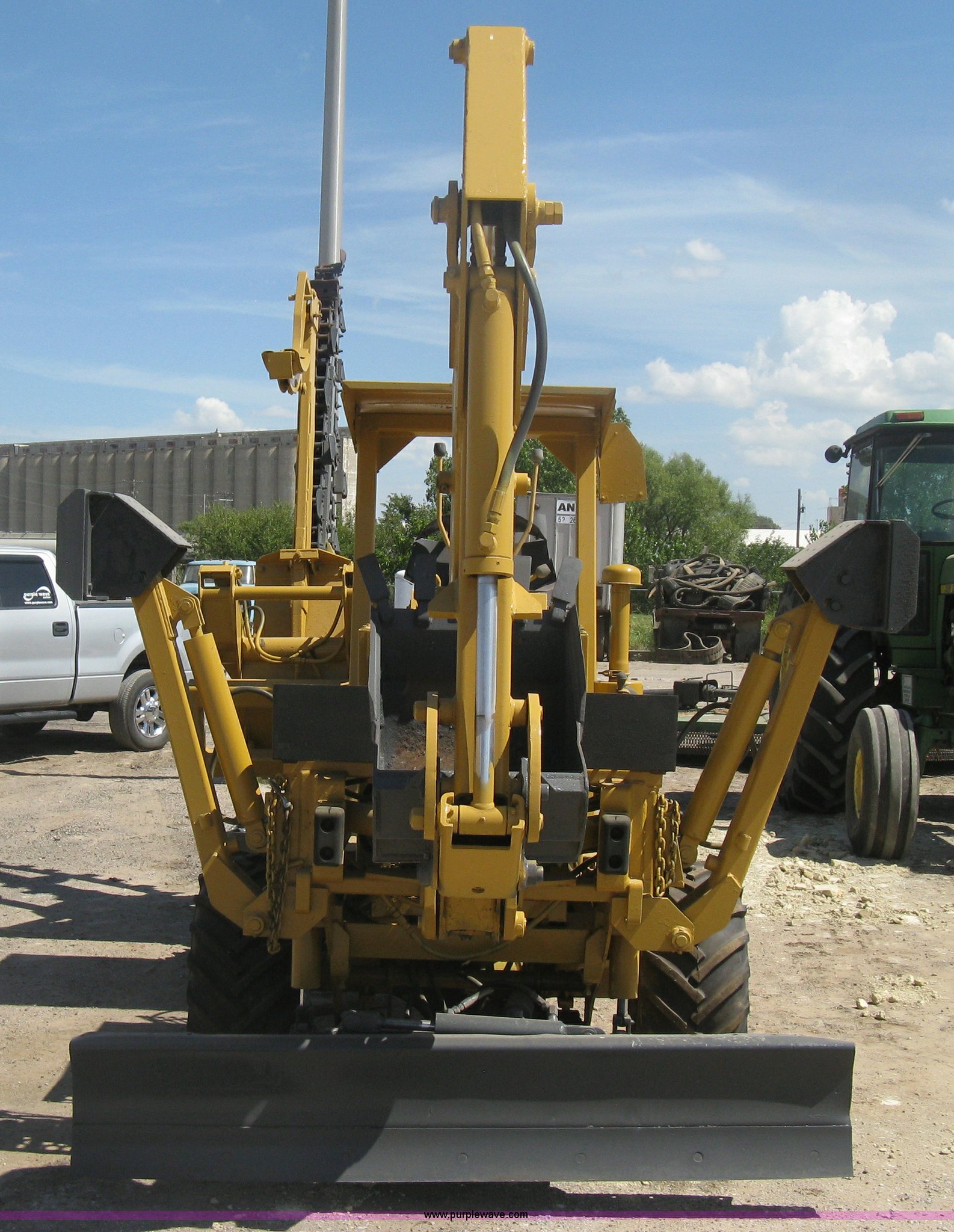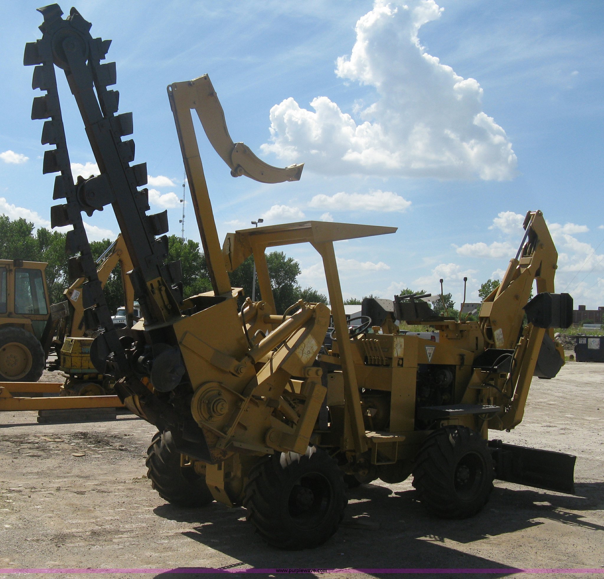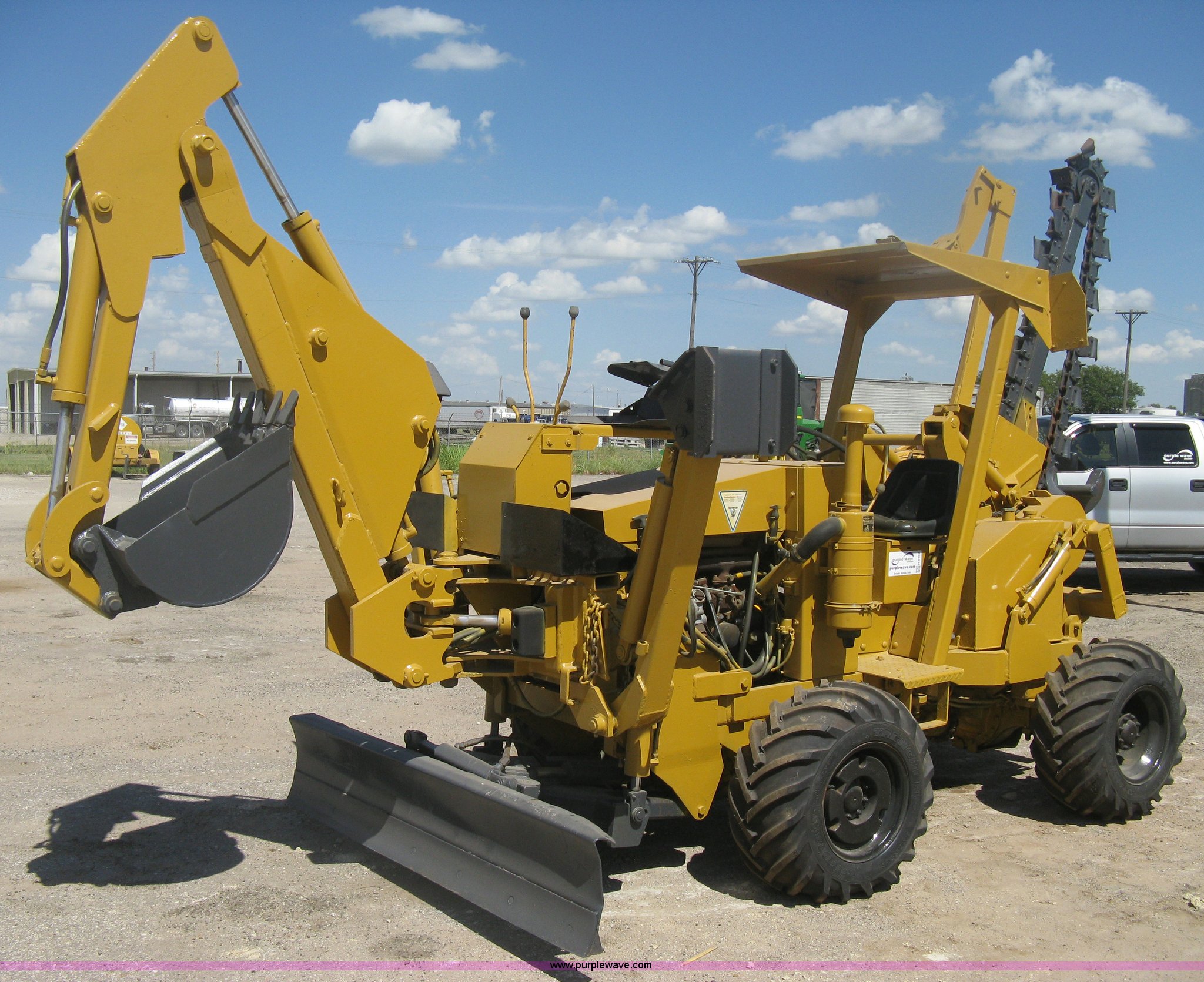 Purple Wave is selling a used Trencher or Rock Saw in Kansas. This item is a Vermeer M455 trencher with the following: 1,141 hours on meter, Ford Industrial four cylinder gas engine, Four speed manual transmission, Four wheel drive, Two post roll bar, Hard top canopy, Chain drive trencher, Approximately 80" from discharge auger to end of chain boom, Twin cylinder hydraulic lift, Serial 264, 80" backfill blade, Tilt, Outriggers with reversible street/dirt pads, Street pads missing, 48"L backhoe stick, 18" pin-on toothed bucket, Recently replaced 31x15.5-15NHS tires, Recently replaced starter, Manuals, Serial 103