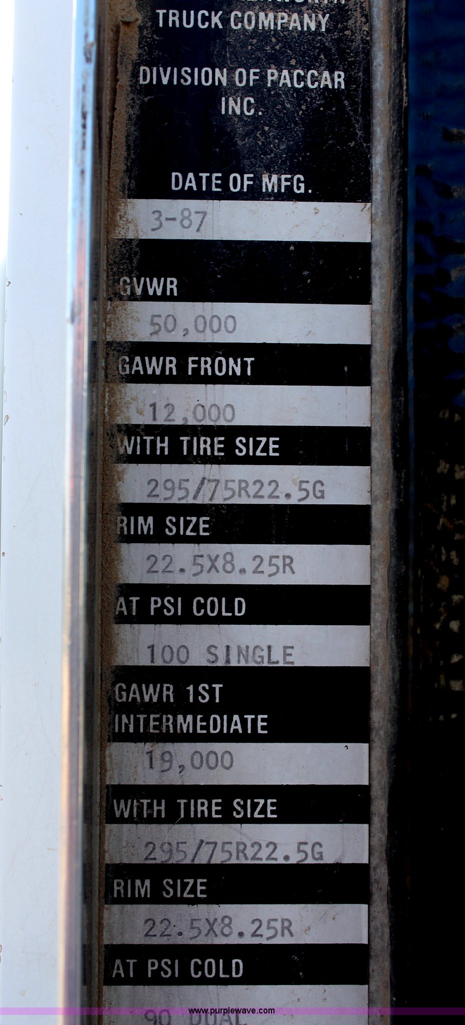 Purple Wave is selling a used Construction Dump Truck in Kansas. This item is a 1987 Kenworth T600A dump truck with the following: 738,489 miles on odometer, 7,400 hours on meter, Cummins NT 14.0L L6 diesel engine, Nine speed manual transmission, Twin screw, AC and heat, Recently recharged, AM/FM, Heated mirrors, Air suspension seat, Hilbilt 151215 dump bed, 15'L, Single ram three stage hoist, Air operated end gate, Serial 7312443350490, Block heater, Dual 120 gallon fuel tanks, PTO, Spring suspension, Air brakes, Jake brake, Brake controller, 11R22.5 tires, GVWR 50,800 lbs, FAWR 12,000 lbs, IAWR 19,000 lbs, RAWR 19,000 lbs, Rear springs replaced 2012, Front left hub replaced September 2013
