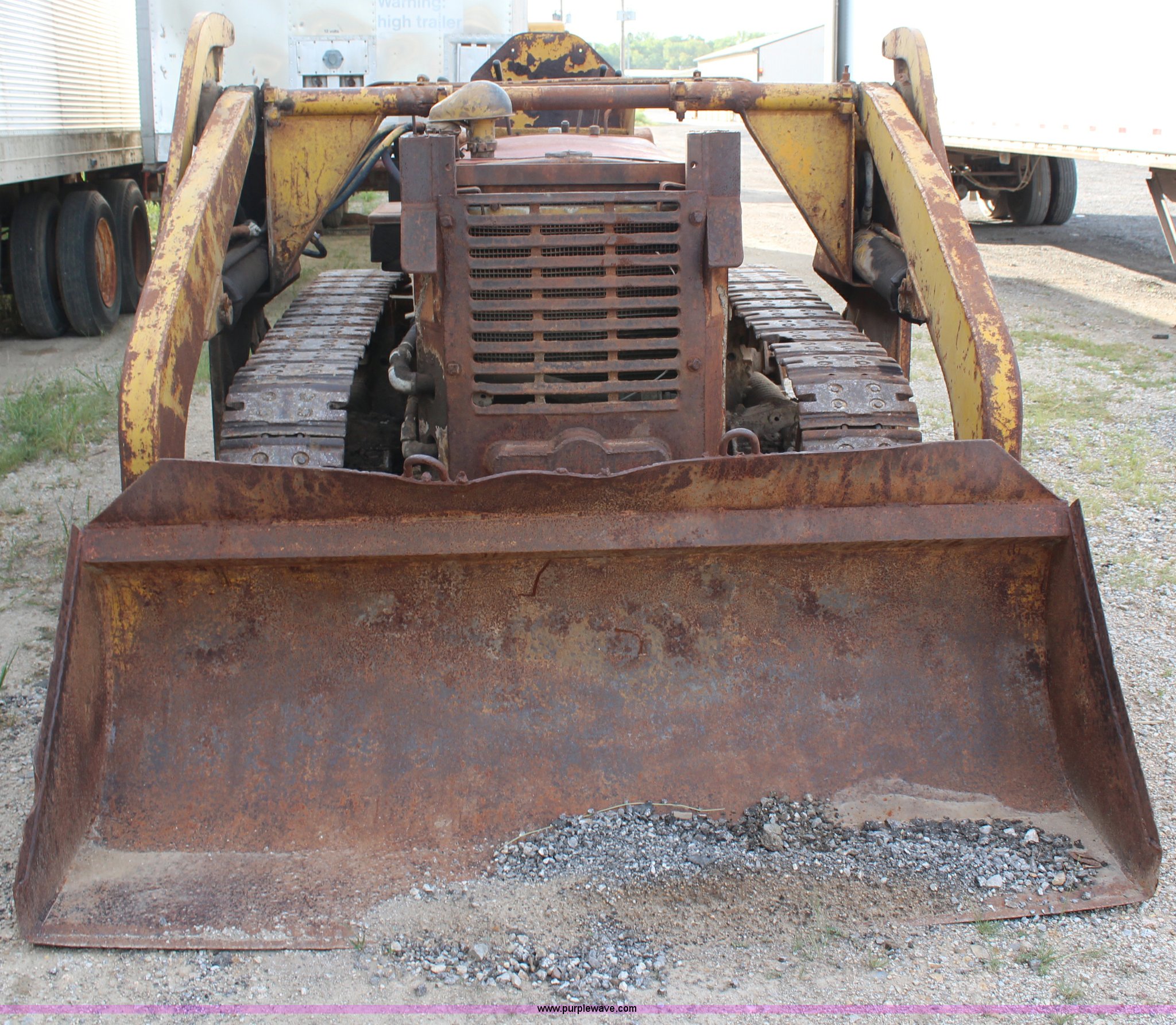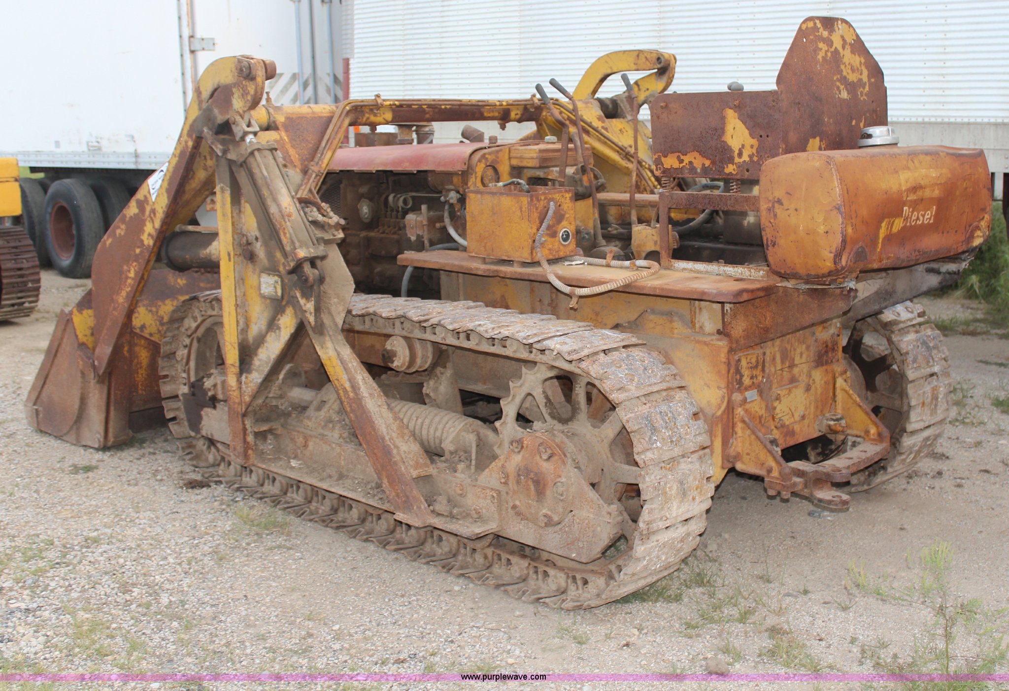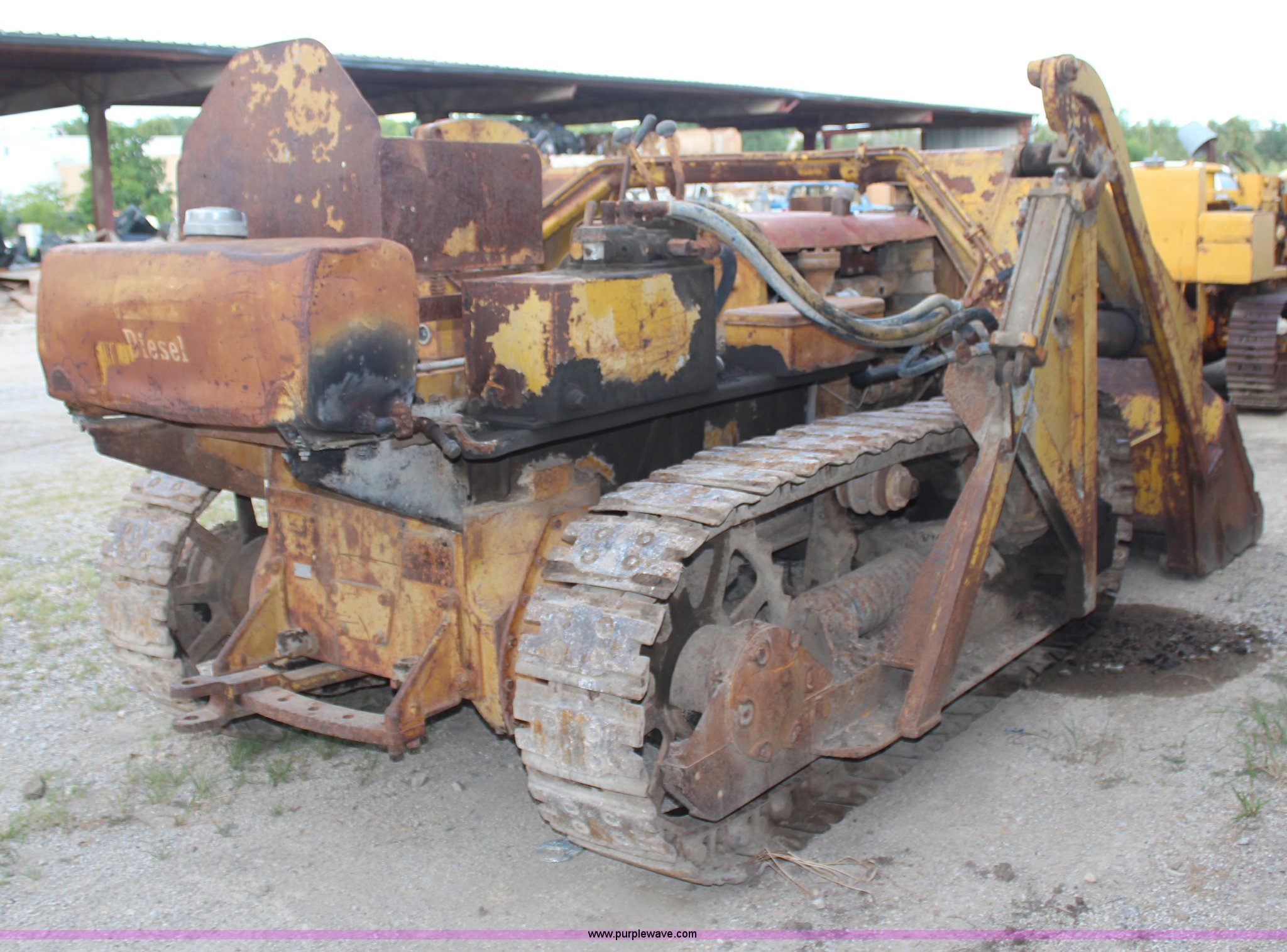 Purple Wave is selling a used Crawler Loader in Kansas. This item is a 1946 Caterpillar D4 track loader with the following: Four cylinder diesel engine, Five speed transmission, Teale dozer loader, Model D4J, Serial 857, 12.5"W tracks, Unit must be pull started, Unknown running condition of pony motor, Loader will not raise, Serial 05T5713W