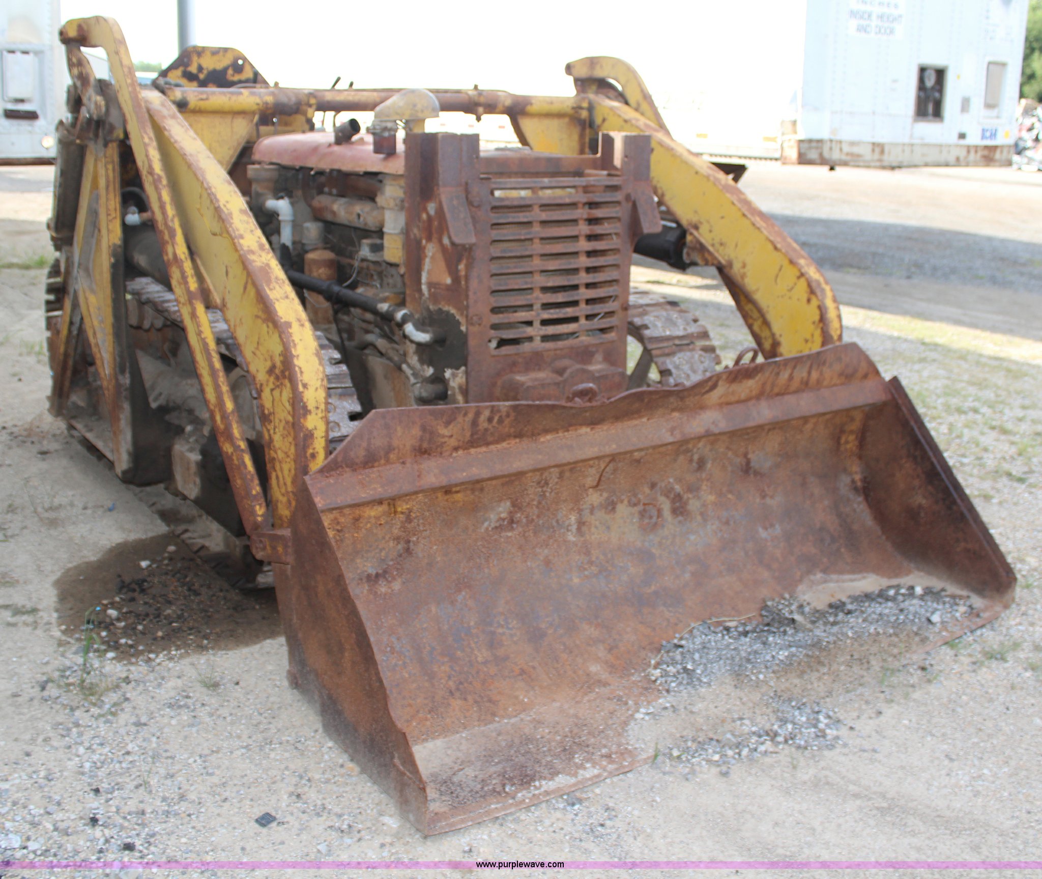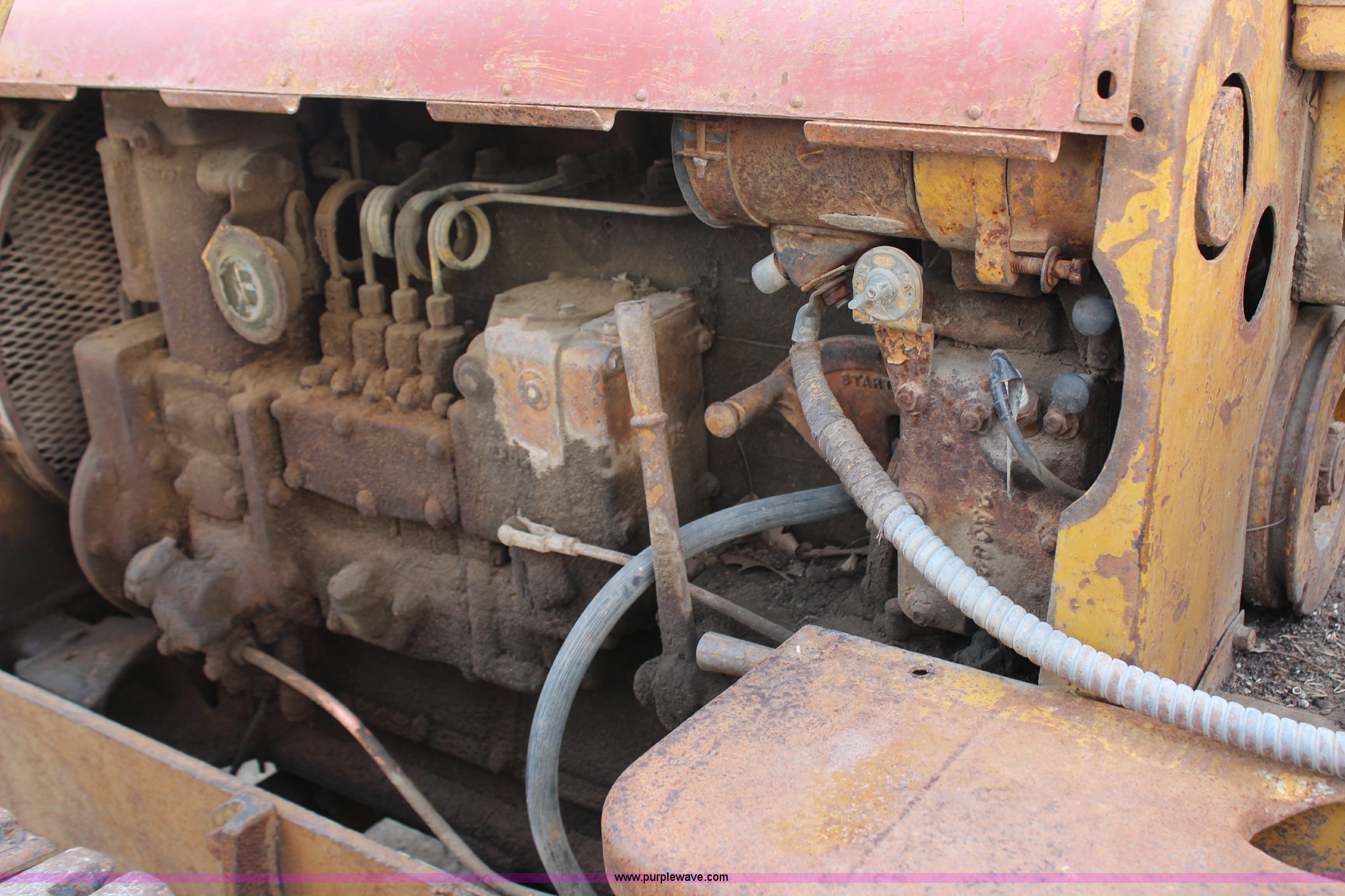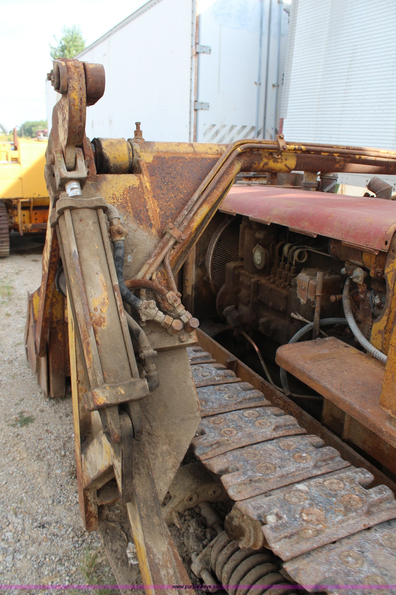 Purple Wave is selling a used Crawler Loader in Kansas. This item is a 1946 Caterpillar D4 track loader with the following: Four cylinder diesel engine, Five speed transmission, Teale dozer loader, Model D4J, Serial 857, 12.5"W tracks, Unit must be pull started, Unknown running condition of pony motor, Loader will not raise, Serial 05T5713W