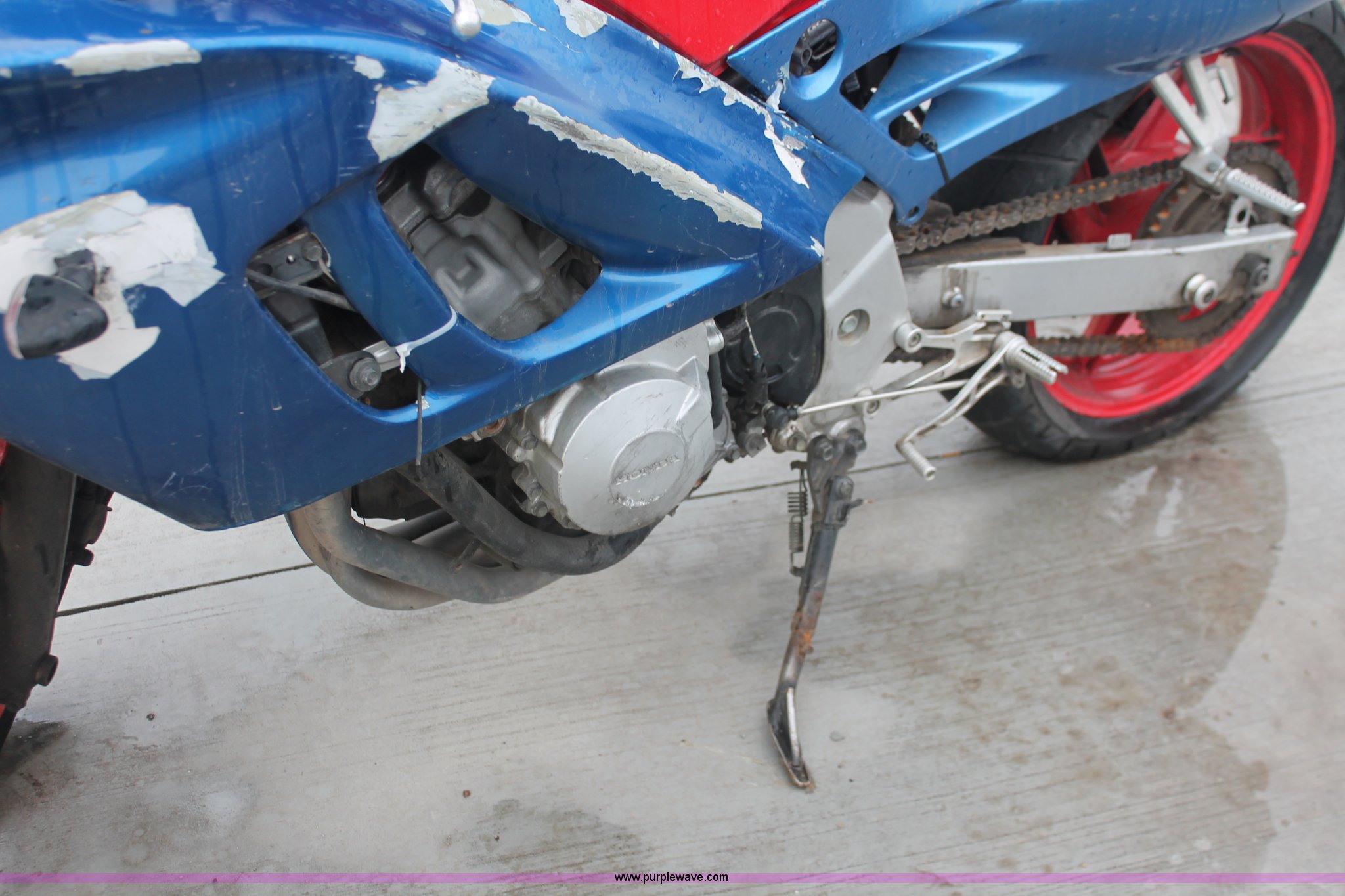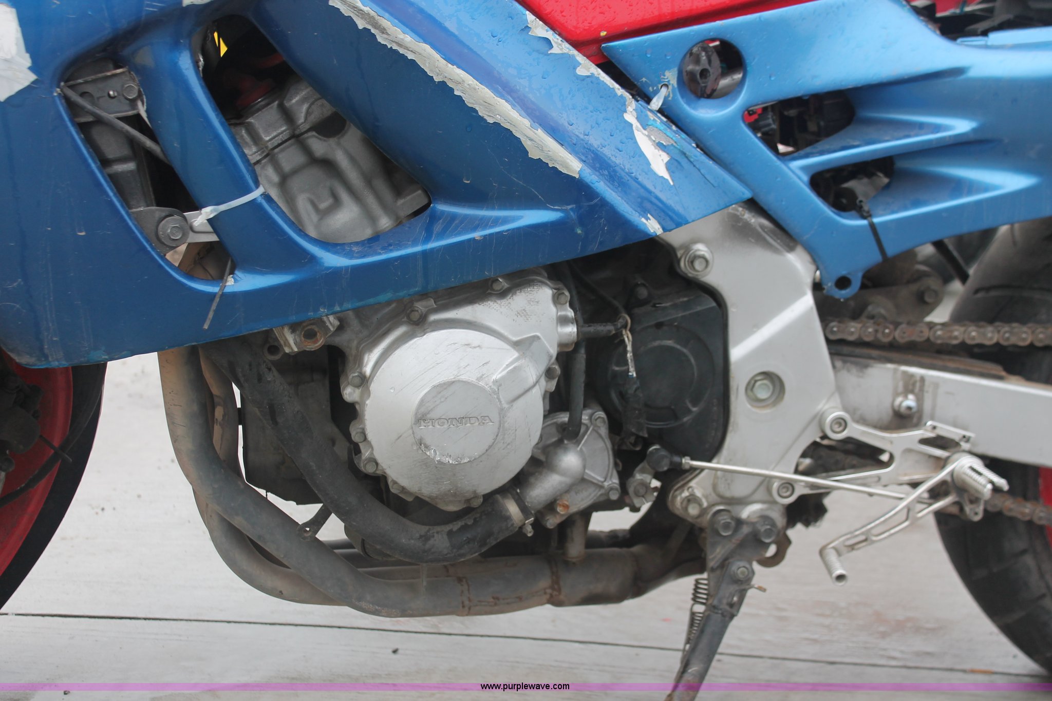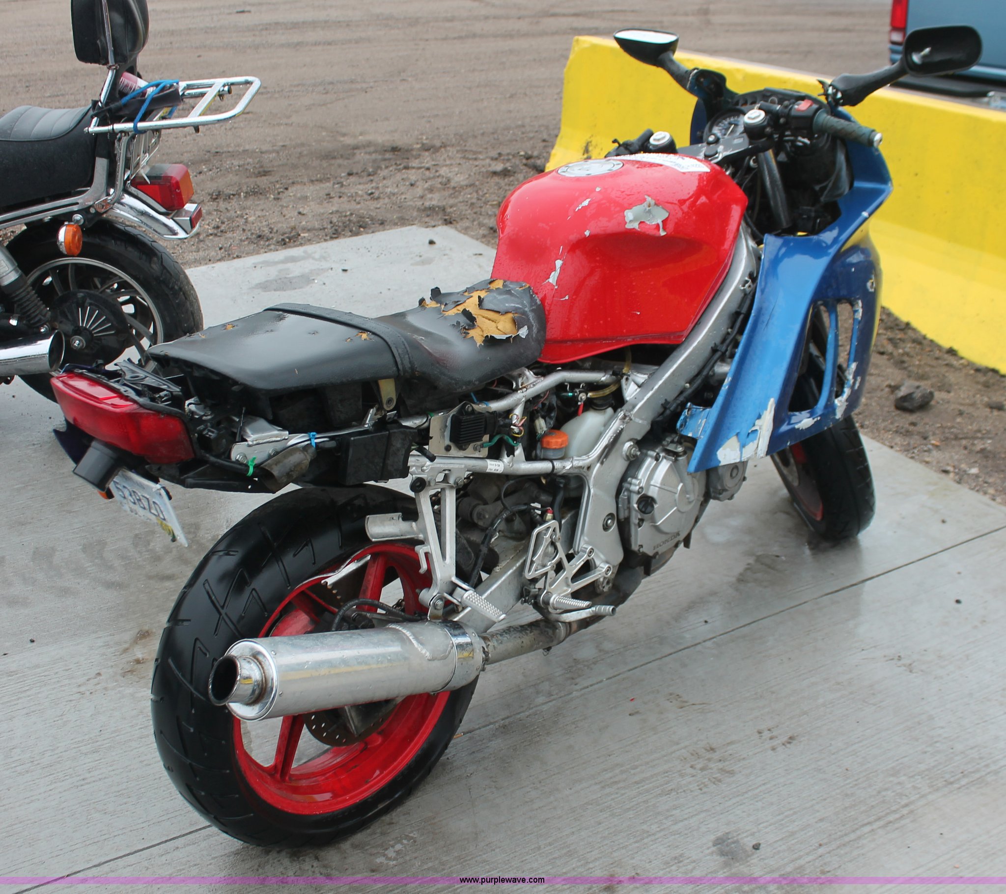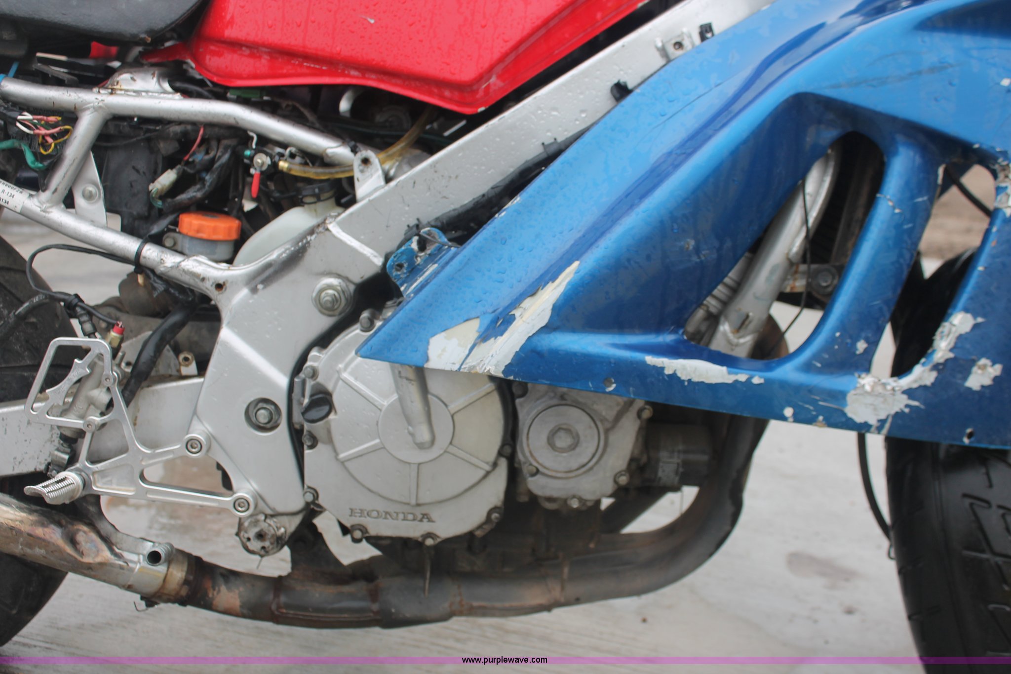 Purple Wave is selling a used Wrecked and Abandoned in Kansas. This item is a 1992 Honda motorcycle with the following: 28,426 miles on odometer, Gas engine, Manual transmission, Exterior body damage, Seat damage, Front and rear wheel damaged, Case# 13C050949