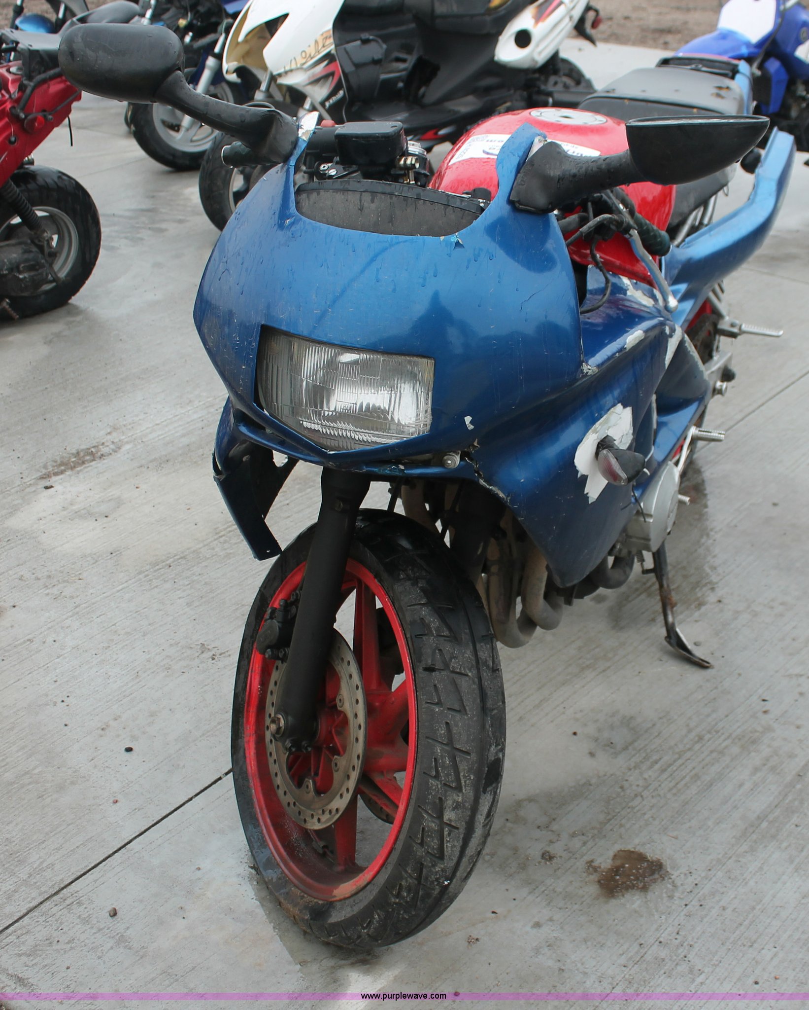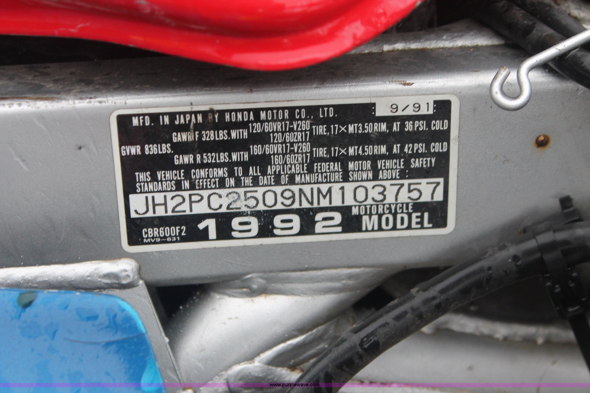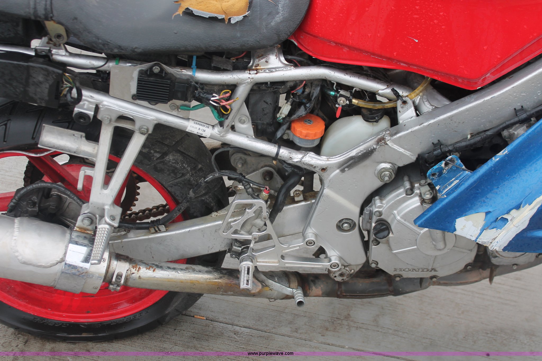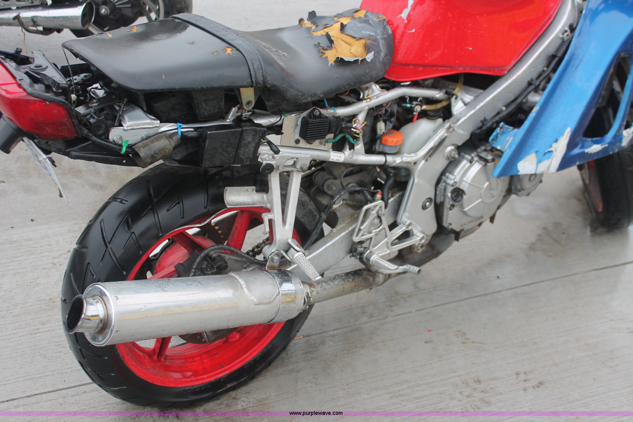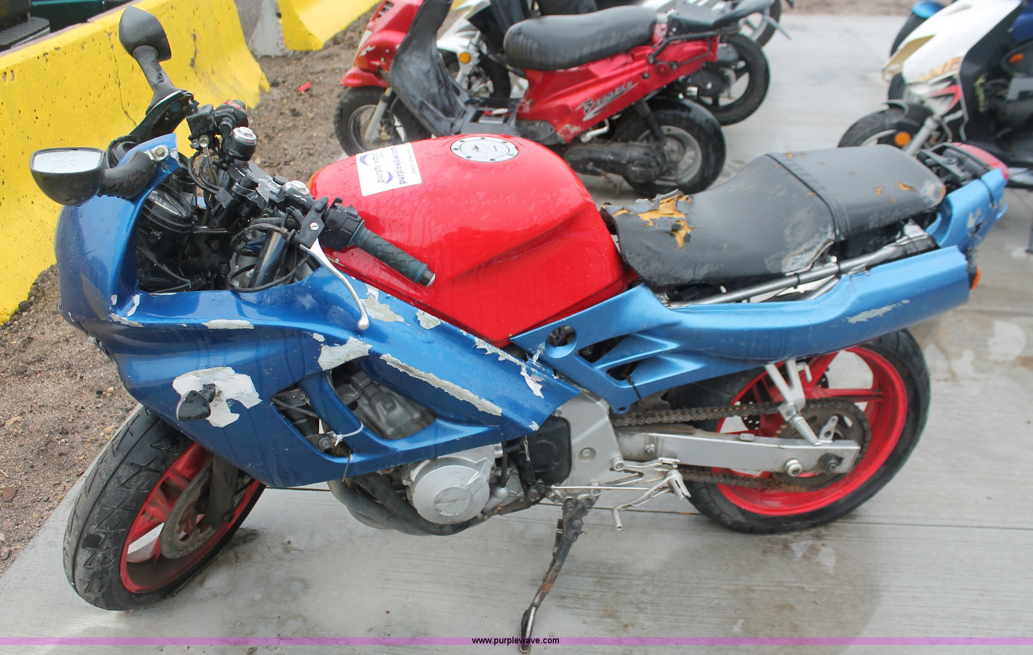Purple Wave is selling a used Wrecked and Abandoned in Kansas. This item is a 1992 Honda motorcycle with the following: 28,426 miles on odometer, Gas engine, Manual transmission, Exterior body damage, Seat damage, Front and rear wheel damaged, Case# 13C050949