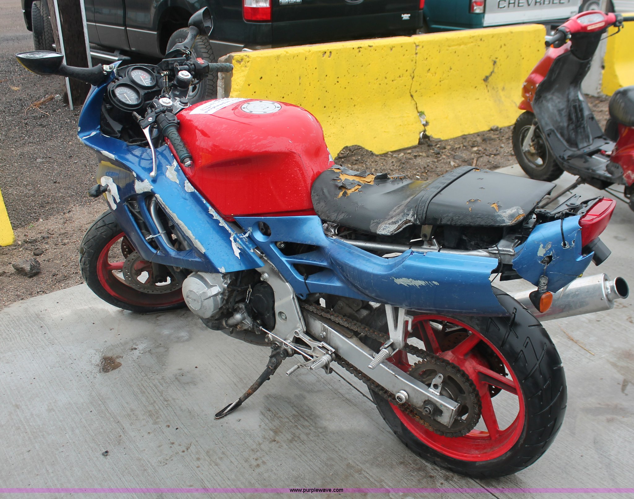 1992 Honda motorcycle. 28,426 miles on odometer, Gas engine, Manual transmission, Exterior body damage, Seat damage, Front and rear wheel damaged, Case# 13C050949. Vehicle is abandoned. No additional information is available. Vehicle does not have keys unless notated otherwise in the item listing.. View City Of Wichita Terms for title acquisition and item removal requirements.. JH2PC2509NM103757. Happy Hooker Towing and Transport. 3760 S Broadway. Wichita, KS 67216