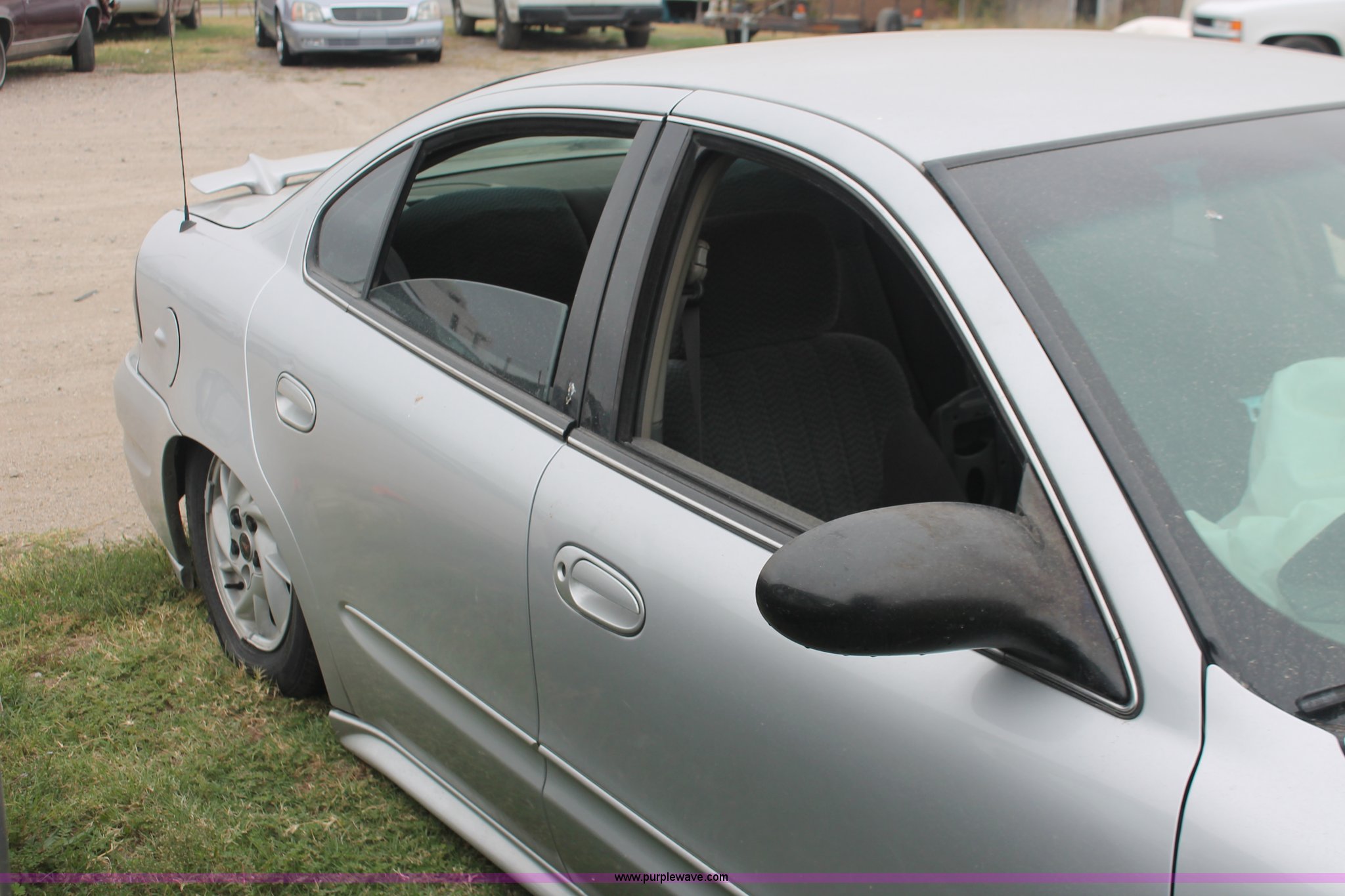 Purple Wave is selling a used Wrecked and Abandoned in Kansas. This item is a 2003 Pontiac Grand AM SE with the following: Unknown miles on odometer, 3.4L V6 OHV 12V gas engine, Automatic transmission, AM/FM/CD, Keys, 215/60R15 tires, Air bags deployed, Cracked windshield, Windows down, Flat tires, Driver's door collision damage, Case# 13C057694