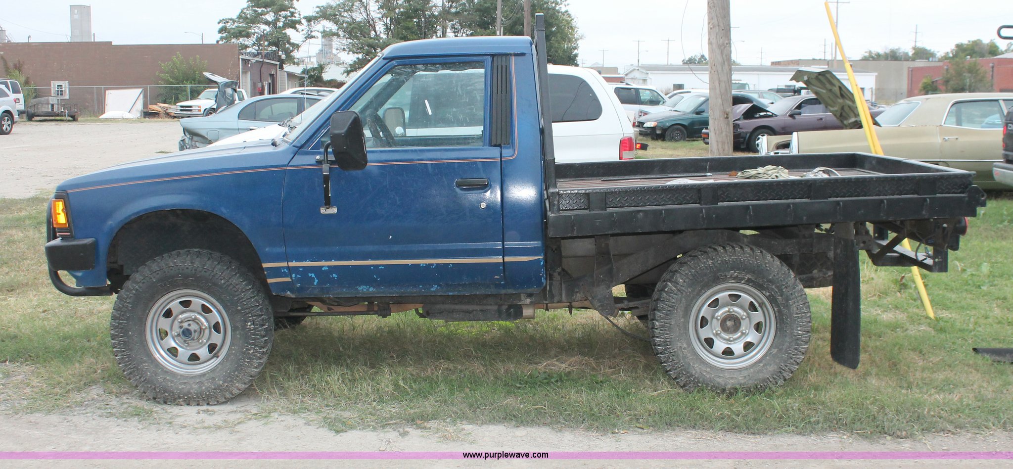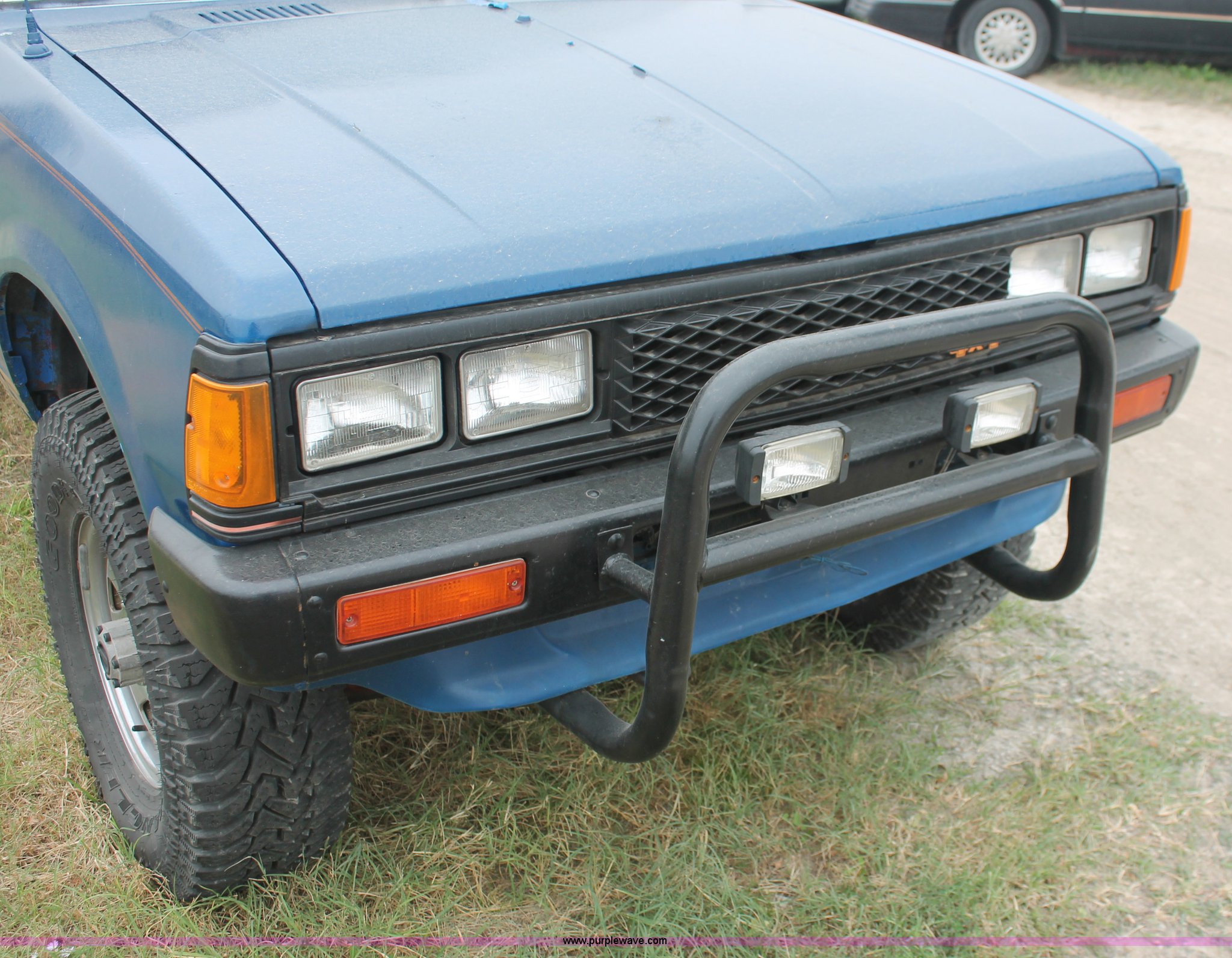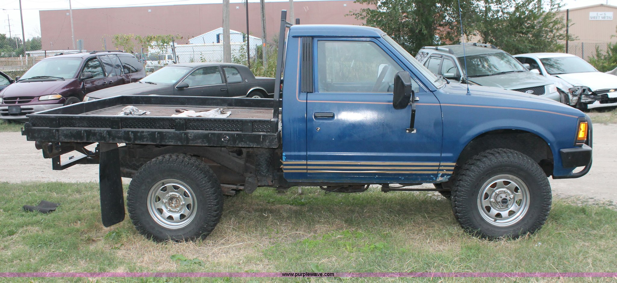 Purple Wave is selling a used Wrecked and Abandoned in Kansas. This item is a 1984 Nissan Datsun pickup truck with the following: 186,660 miles on odometer, 2.4L L4 gas engine, Five speed manual transmission, Four wheel drive, AM/FM/CD, Grill guard, 6' flatbed, 4"H stake rails, Sliding rear window, Receiver hitch, Trailer wiring, Goodyear Wrangler 31x10.50R15LT tires, Recently replaced, Case# 13C46951