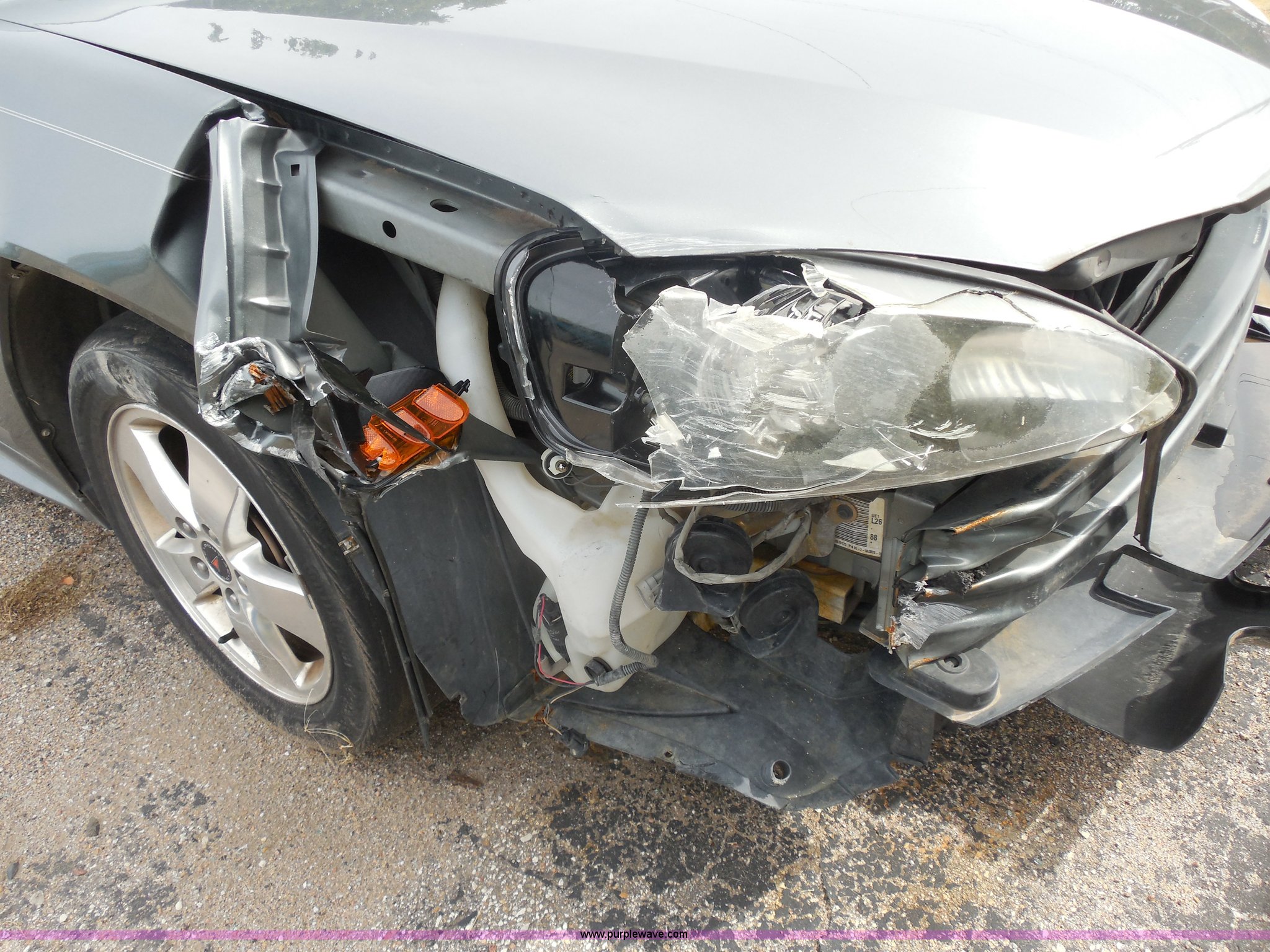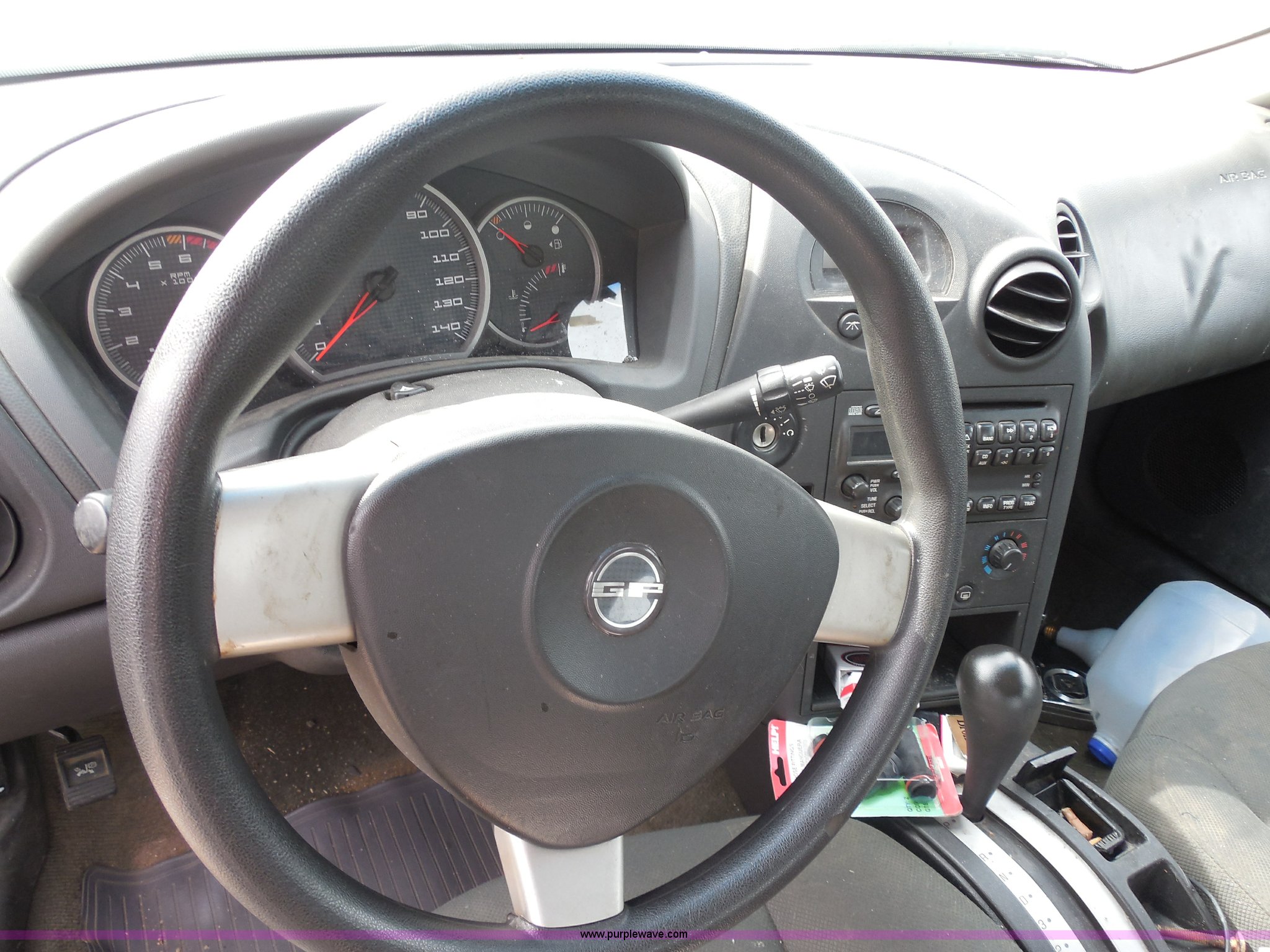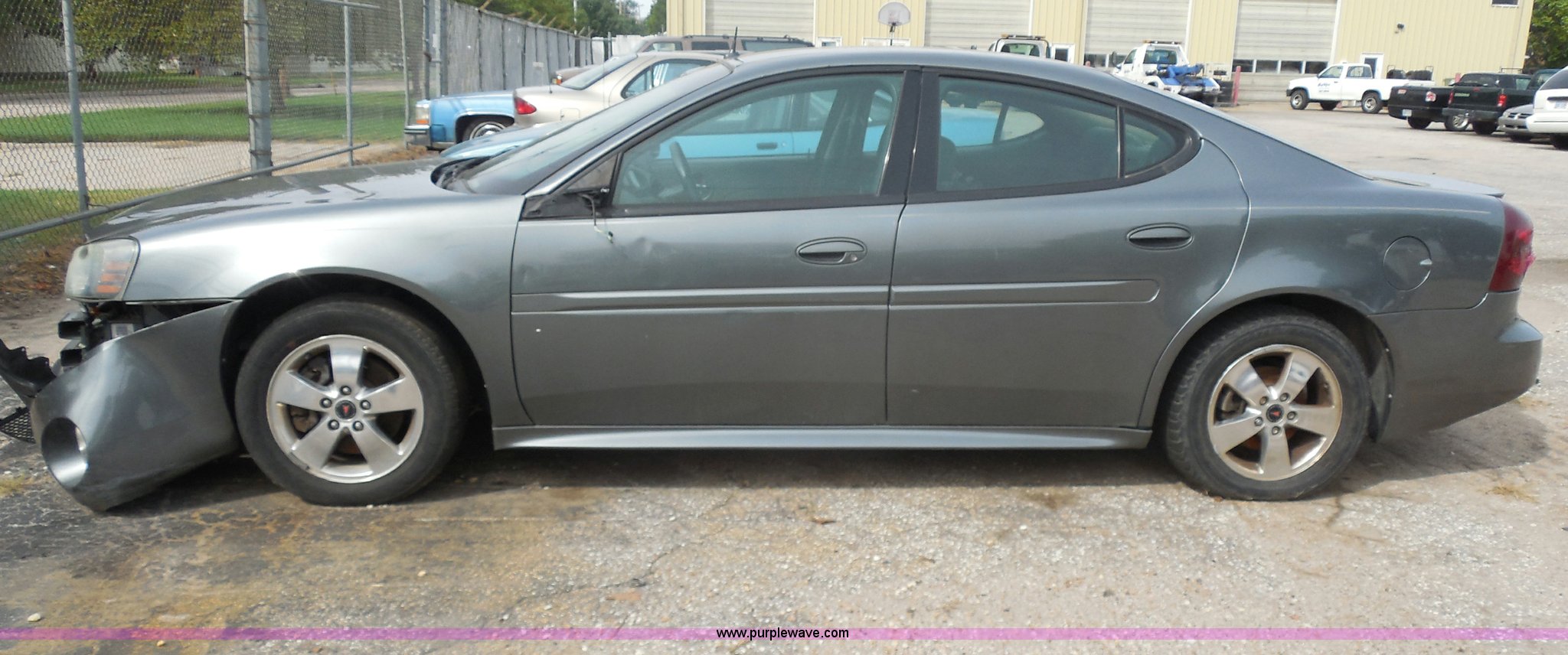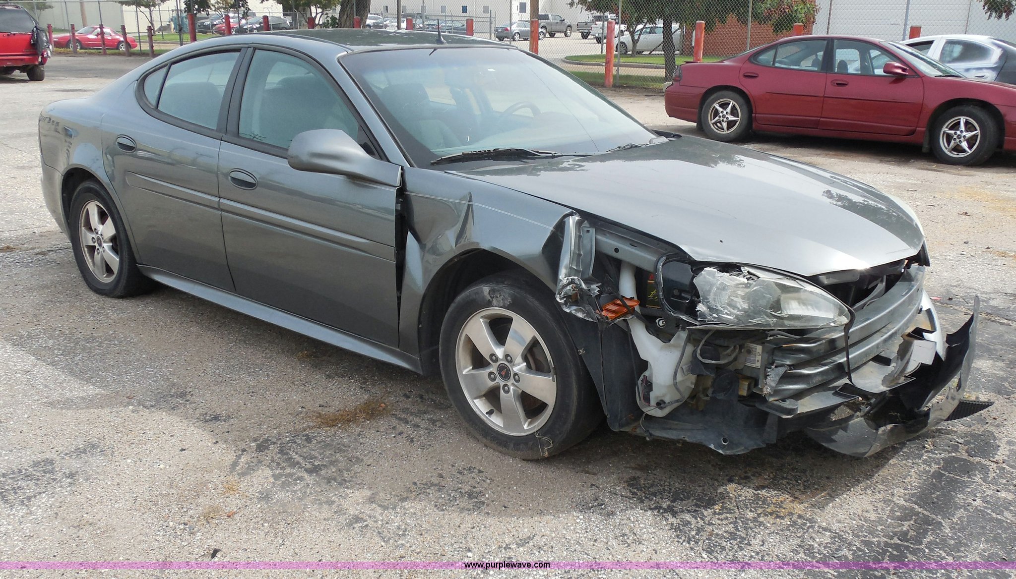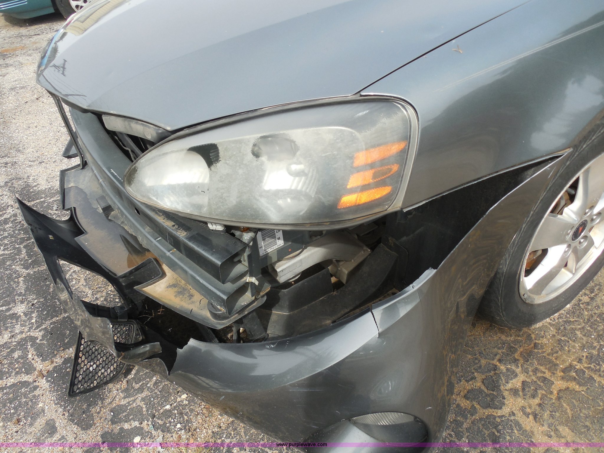 Purple Wave is selling a used Wrecked and Abandoned in Kansas. This item is a 2005 Pontiac Grand Prix with the following: Unknown miles on odometer, 3.8L V6 OHV 12V gas engine, Automatic transmission, AC and heat, Tilt, Cruise, AM/FM/CD, Power windows and locks, Cloth interior, Navigation system, P205/60R16 tires, Front bumper damage, Missing driver's side mirror, Cracked windshield, Case# 13C50460