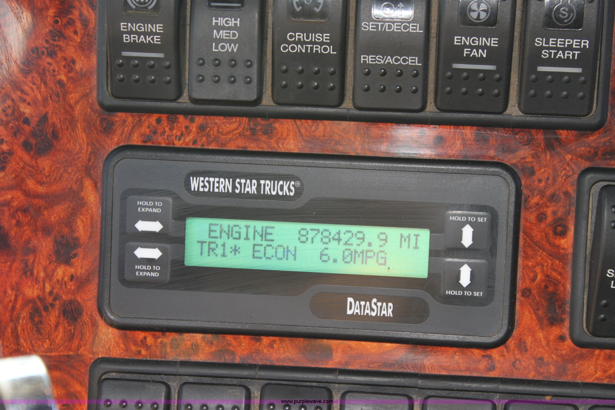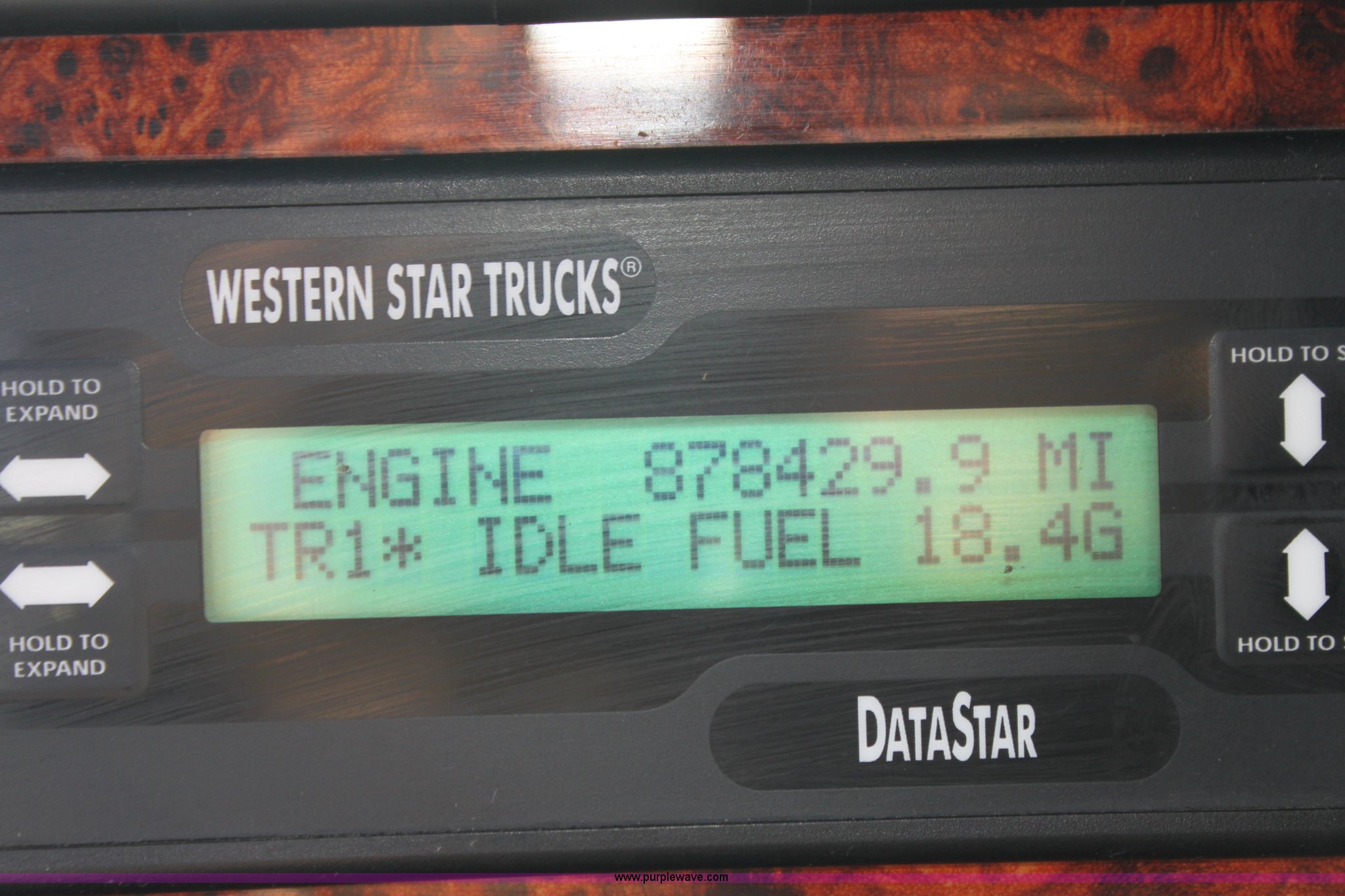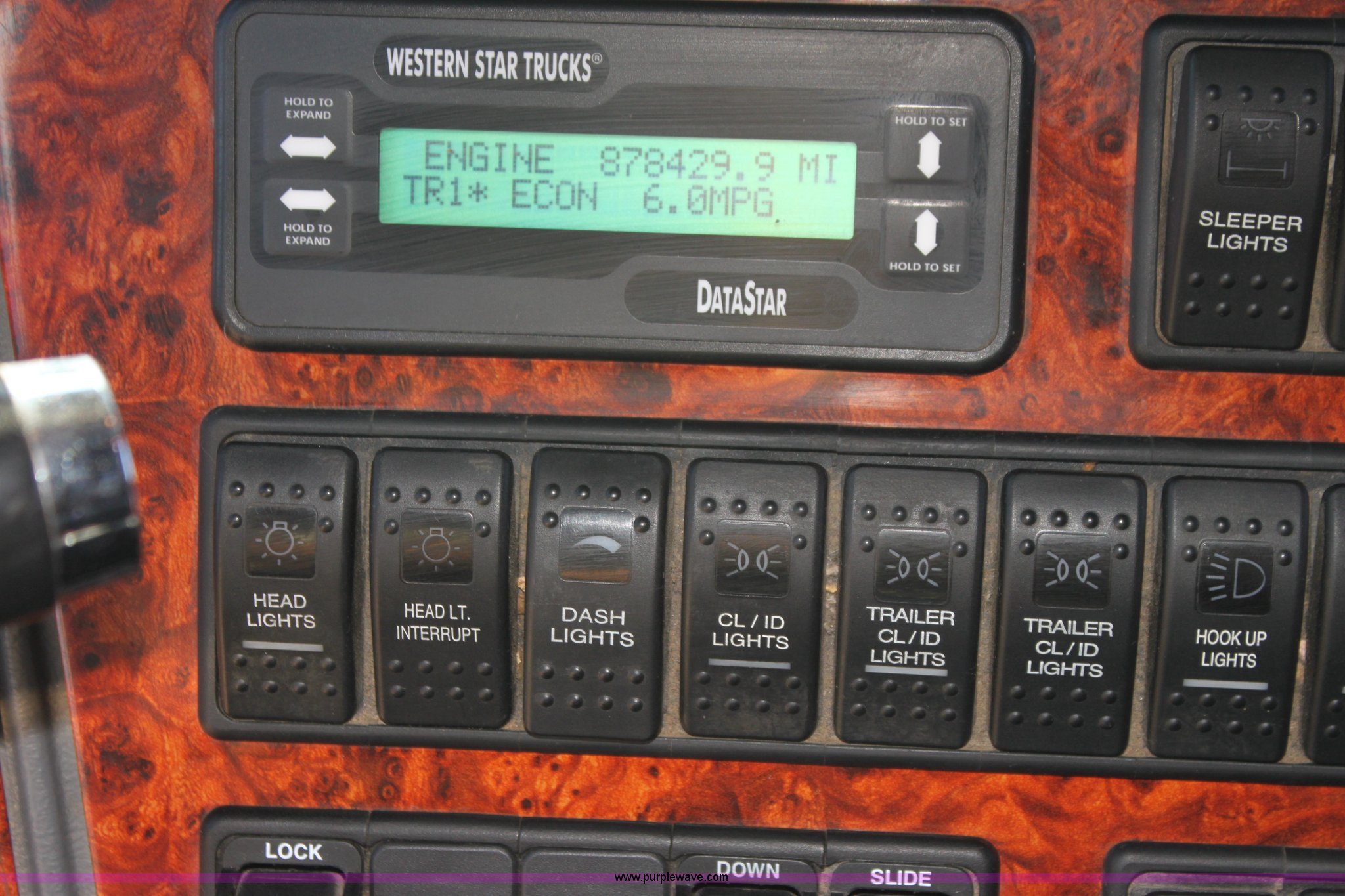 Purple Wave is selling a used Truck Tractor in Kansas. This item is a 2006 Western Star 4900EX semi truck with the following: 878,429 miles on odometer, 22,177 hours on meter, Caterpillar C15 Acert 14.6L L6 diesel engine, 13 speed manual transmission, AC and heat, Tilt, Cruise, AM/FM/CD, Power windows and mirrors, Heated mirrors, Stratoshpere Starlight sleeper, Visor, Chrome bumper, Block heater, Air slide fifth wheel, Dual fuel tanks, Dual front exhaust stacks, Aluminum quarter fenders, Dump valves, Air suspension, Air brakes, Jake brake, 295/80R24.5 tires, ABS light on