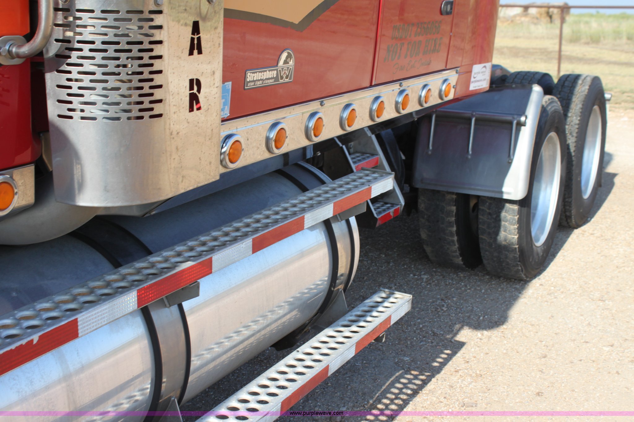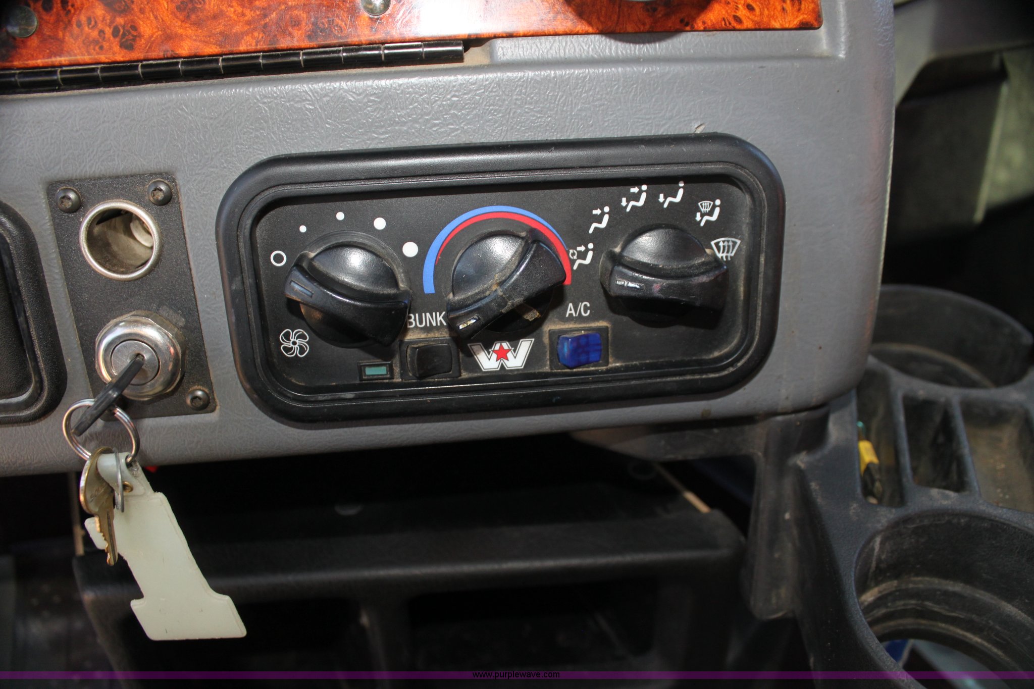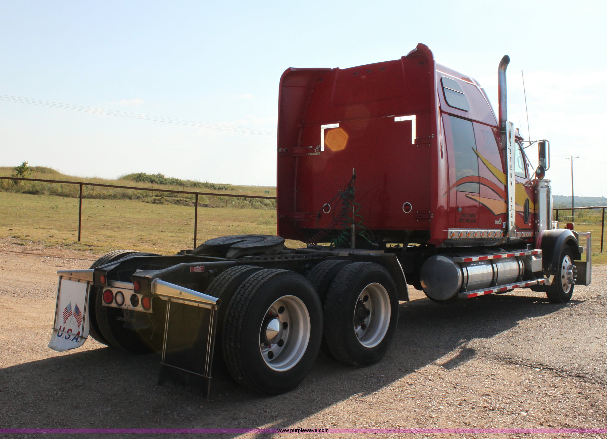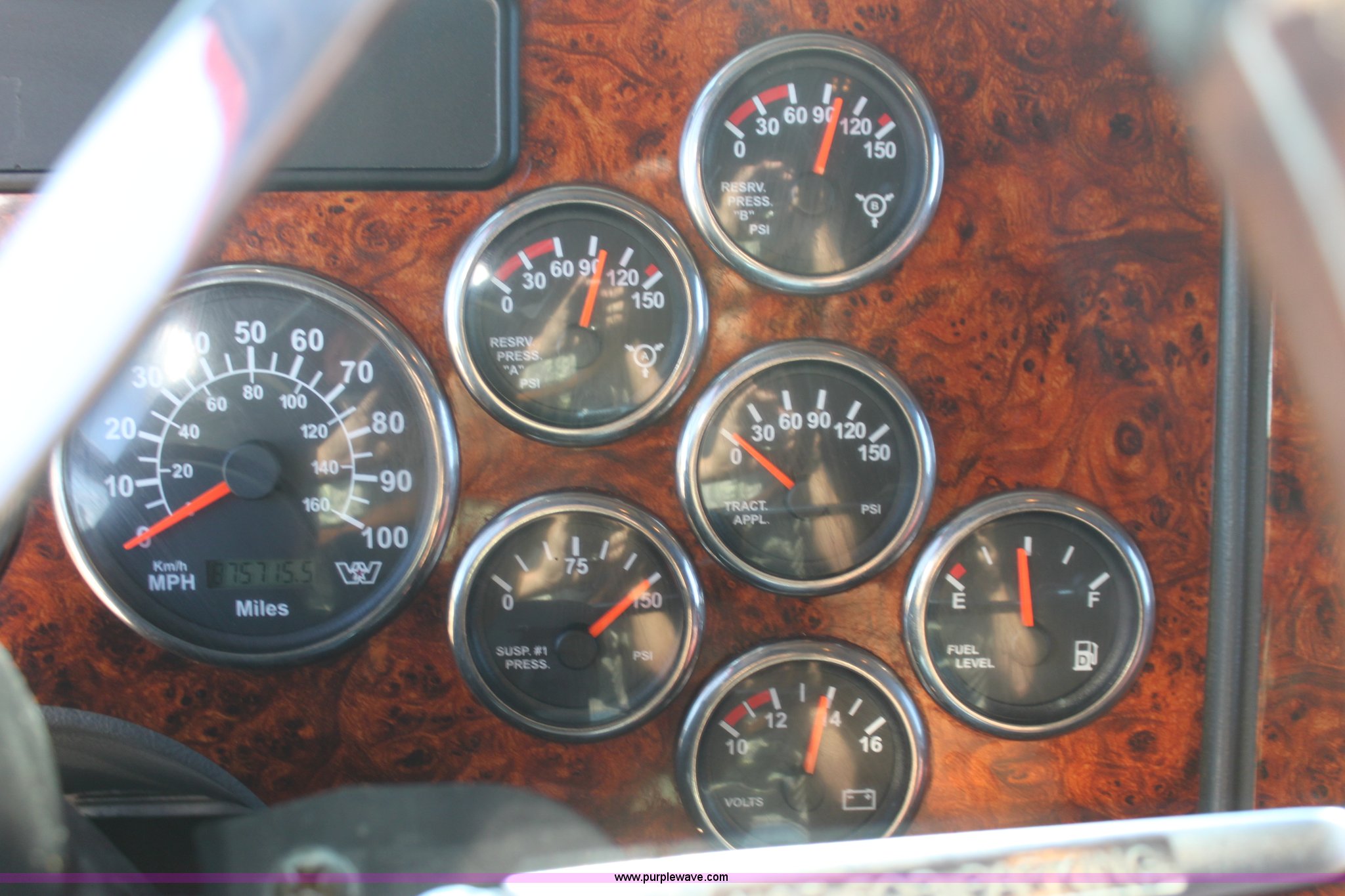 Purple Wave is selling a used Truck Tractor in Kansas. This item is a 2006 Western Star 4900EX semi truck with the following: 878,429 miles on odometer, 22,177 hours on meter, Caterpillar C15 Acert 14.6L L6 diesel engine, 13 speed manual transmission, AC and heat, Tilt, Cruise, AM/FM/CD, Power windows and mirrors, Heated mirrors, Stratoshpere Starlight sleeper, Visor, Chrome bumper, Block heater, Air slide fifth wheel, Dual fuel tanks, Dual front exhaust stacks, Aluminum quarter fenders, Dump valves, Air suspension, Air brakes, Jake brake, 295/80R24.5 tires, ABS light on