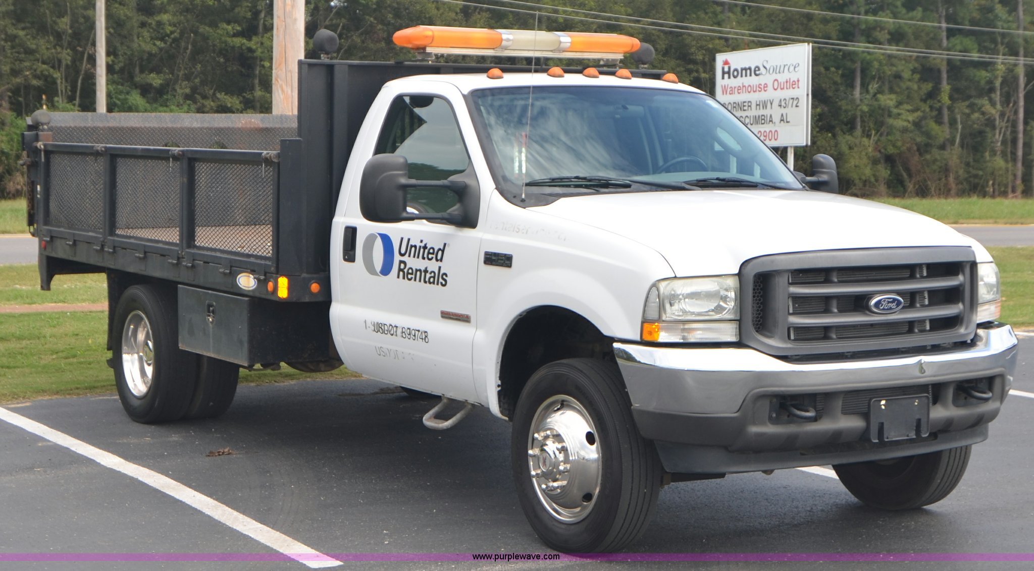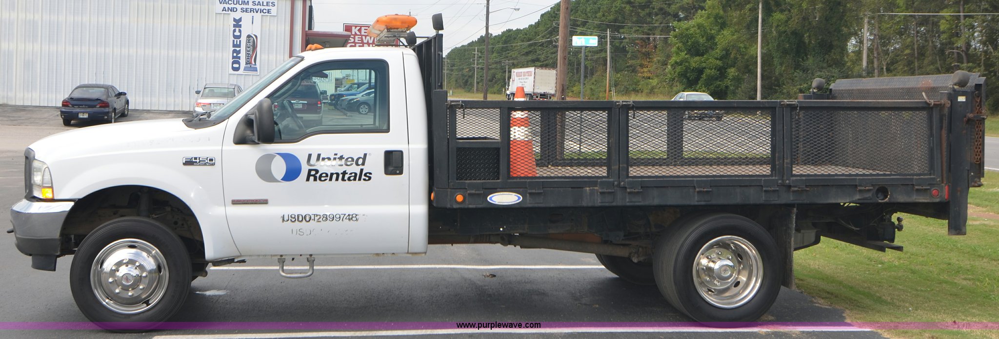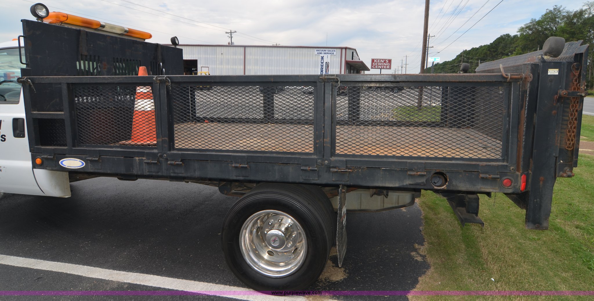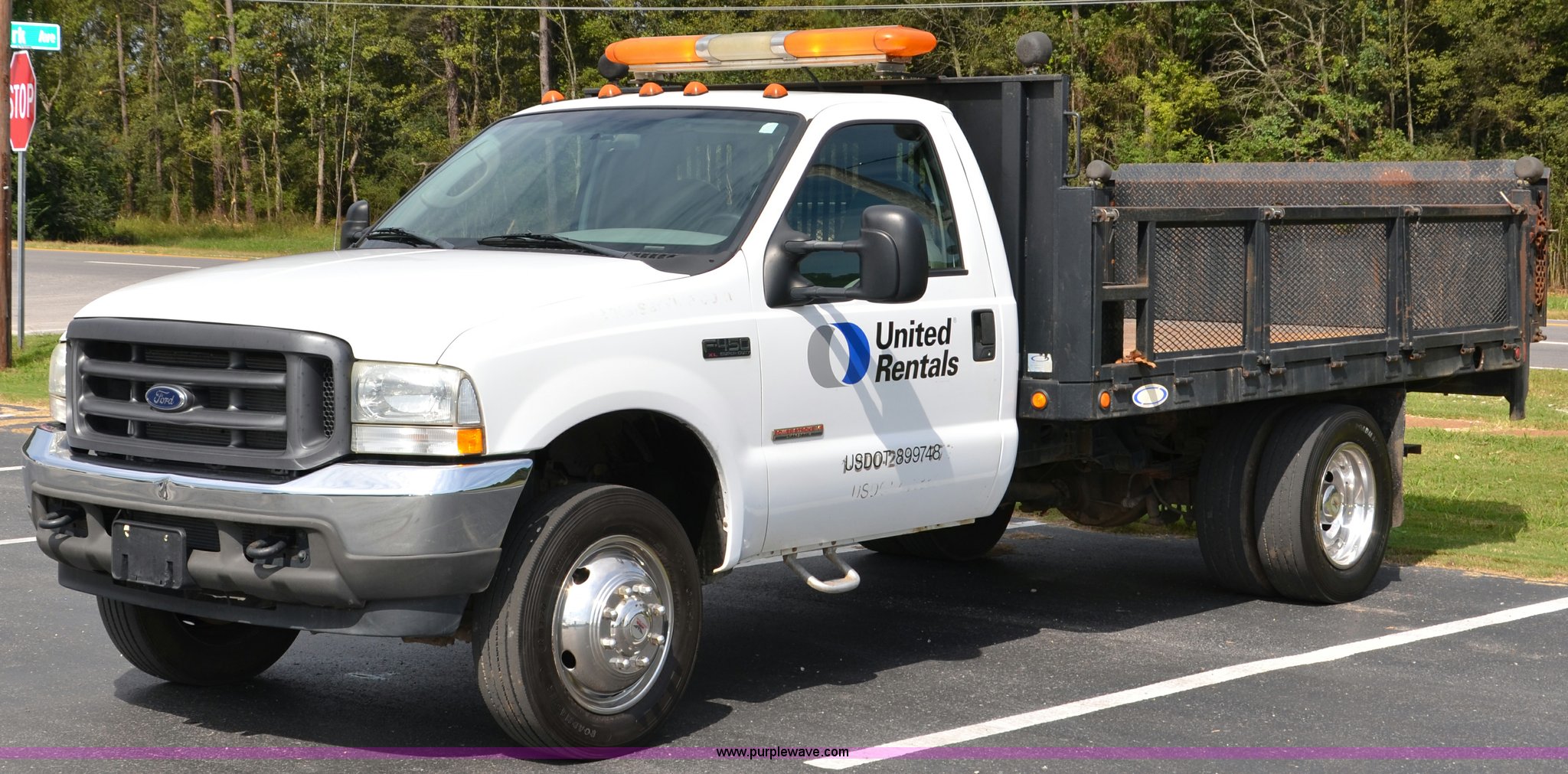Purple Wave is selling a used Flat Bed Truck in Alabama. This item is a 2004 Ford F450 Super Duty utility truck with the following: 171,773 miles on odometer, 6.0L V8 OHV 32V turbo diesel engine, Automatic transmission, AC and heat, Cruise, AM/FM, Manual windows and locks, Vinyl interior, 12' stake bed, Fold down sides, Hydraulic lift gate, Overhead utility lights, Receiver hitch, Trailer wiring, 225/70R19.5 tires, GVWR 15,000 lbs, FAWR 6,000 lbs, RAWR 11,000 lbs, EIN 498304RA