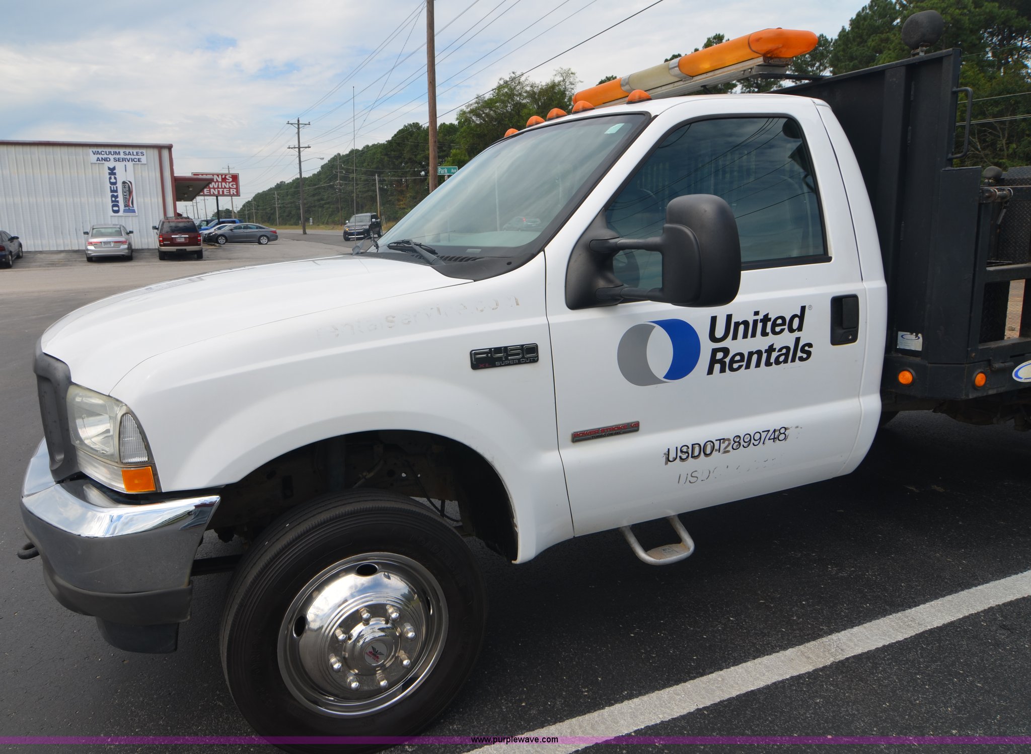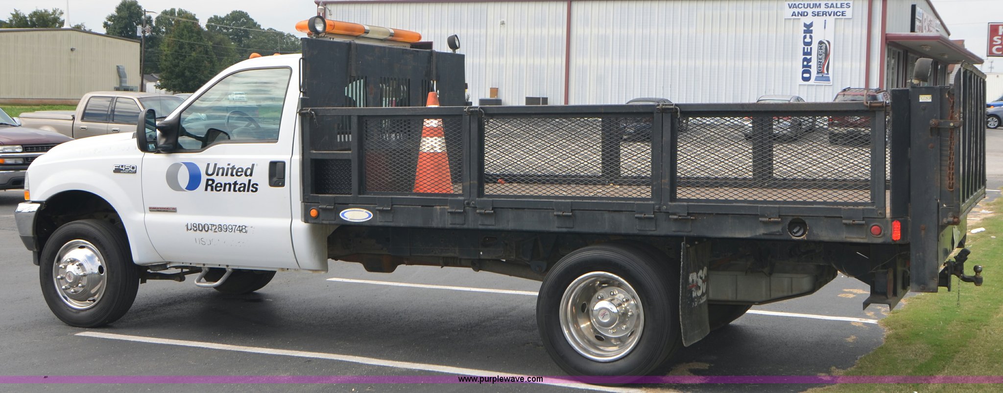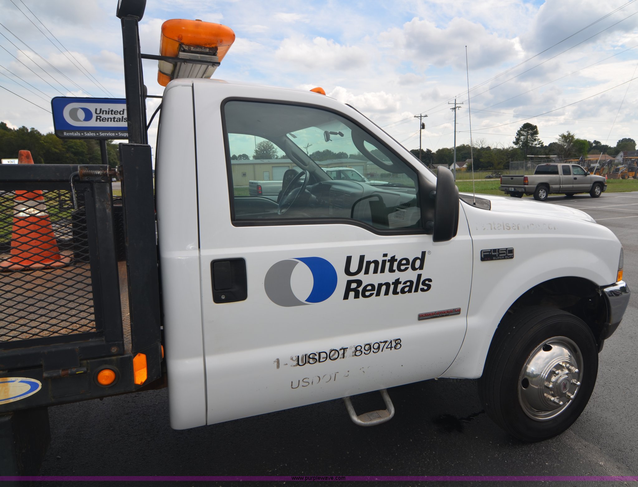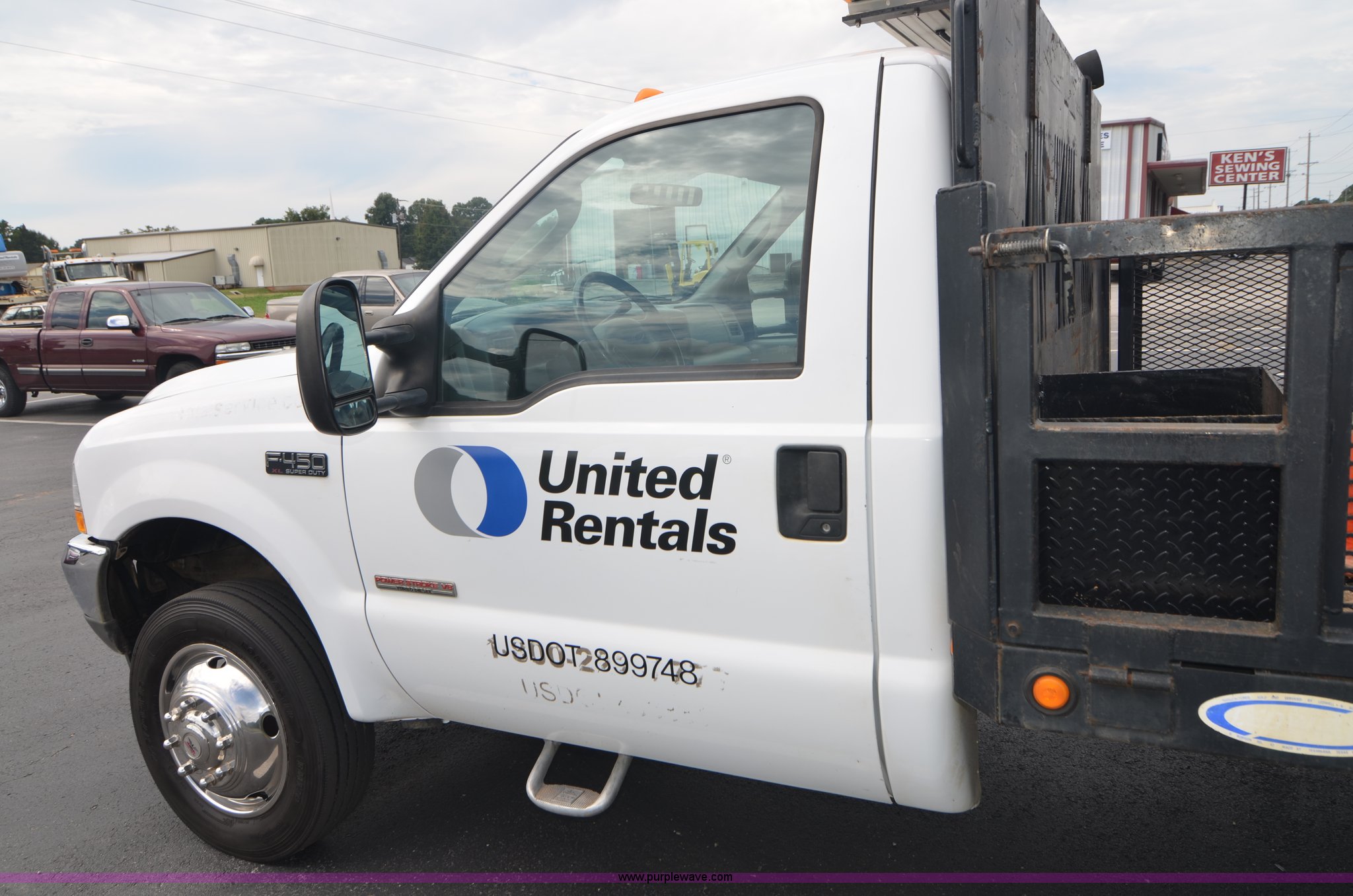 Purple Wave is selling a used Flat Bed Truck in Alabama. This item is a 2004 Ford F450 Super Duty utility truck with the following: 171,773 miles on odometer, 6.0L V8 OHV 32V turbo diesel engine, Automatic transmission, AC and heat, Cruise, AM/FM, Manual windows and locks, Vinyl interior, 12' stake bed, Fold down sides, Hydraulic lift gate, Overhead utility lights, Receiver hitch, Trailer wiring, 225/70R19.5 tires, GVWR 15,000 lbs, FAWR 6,000 lbs, RAWR 11,000 lbs, EIN 498304RA