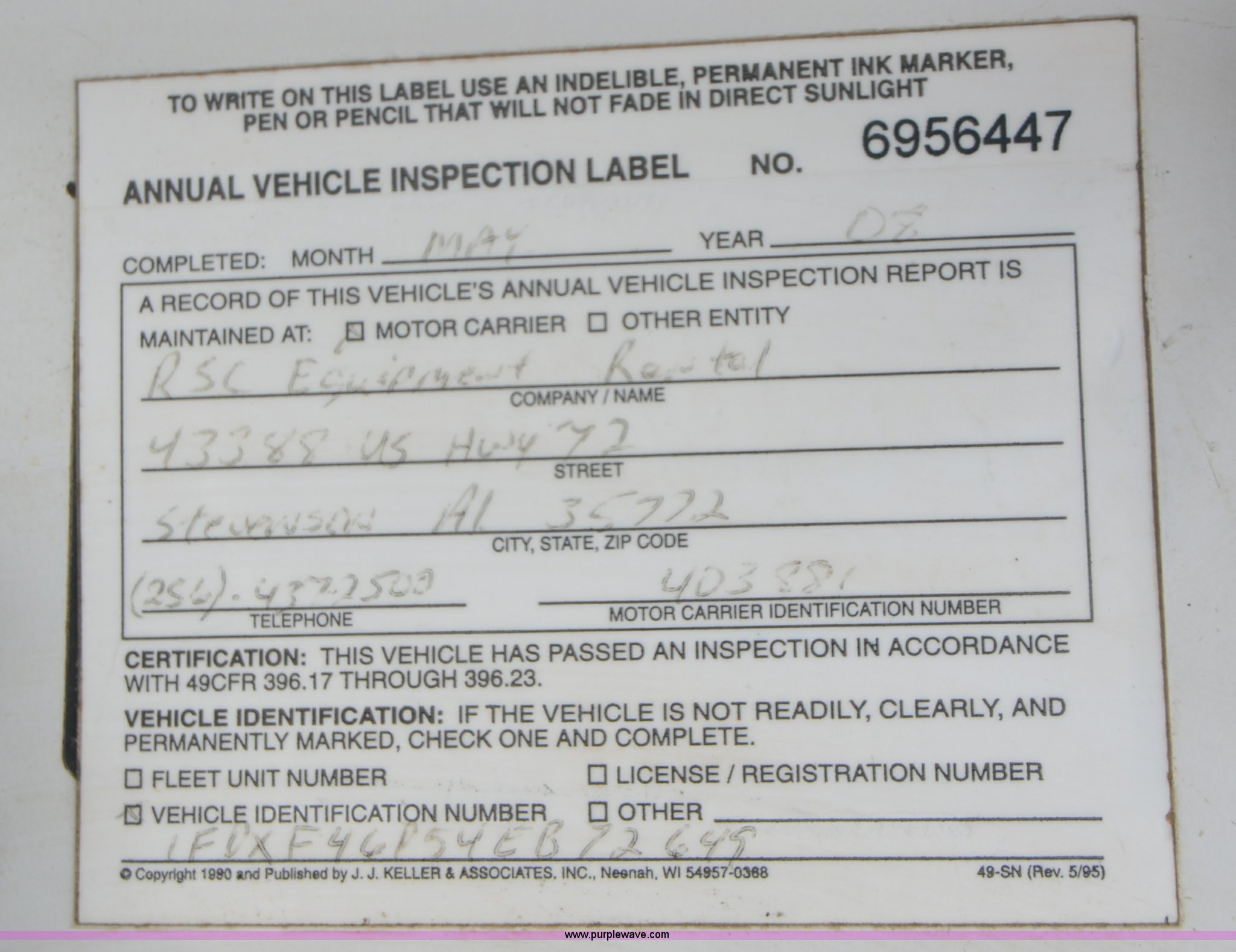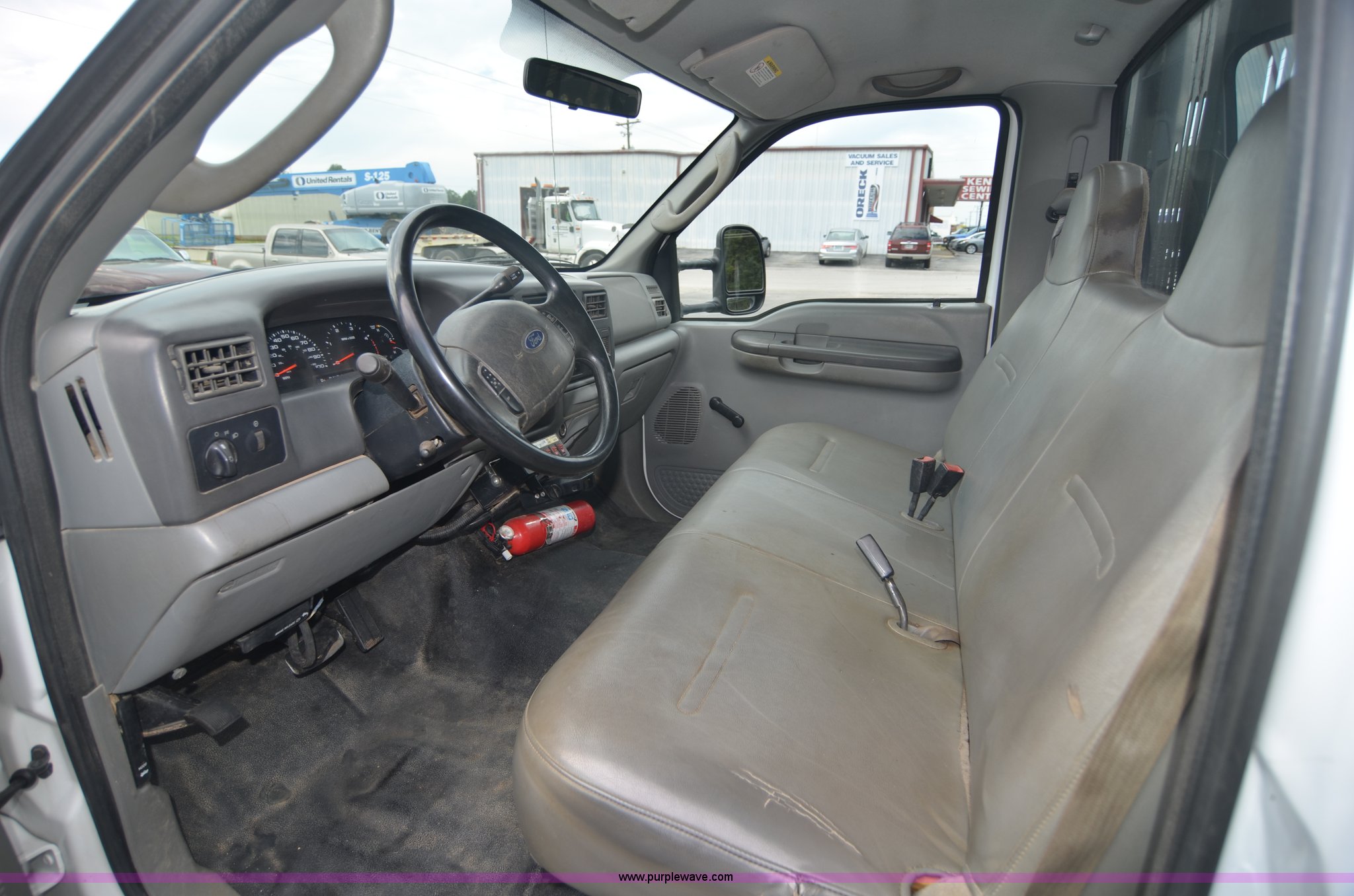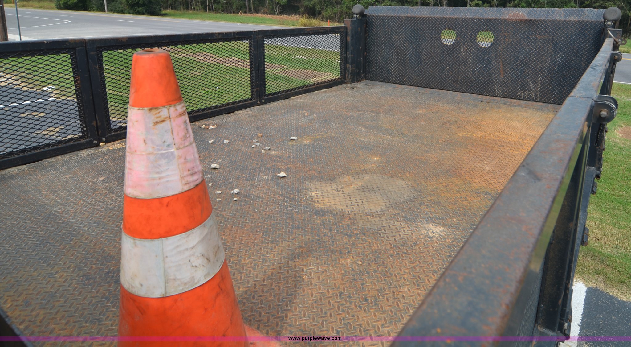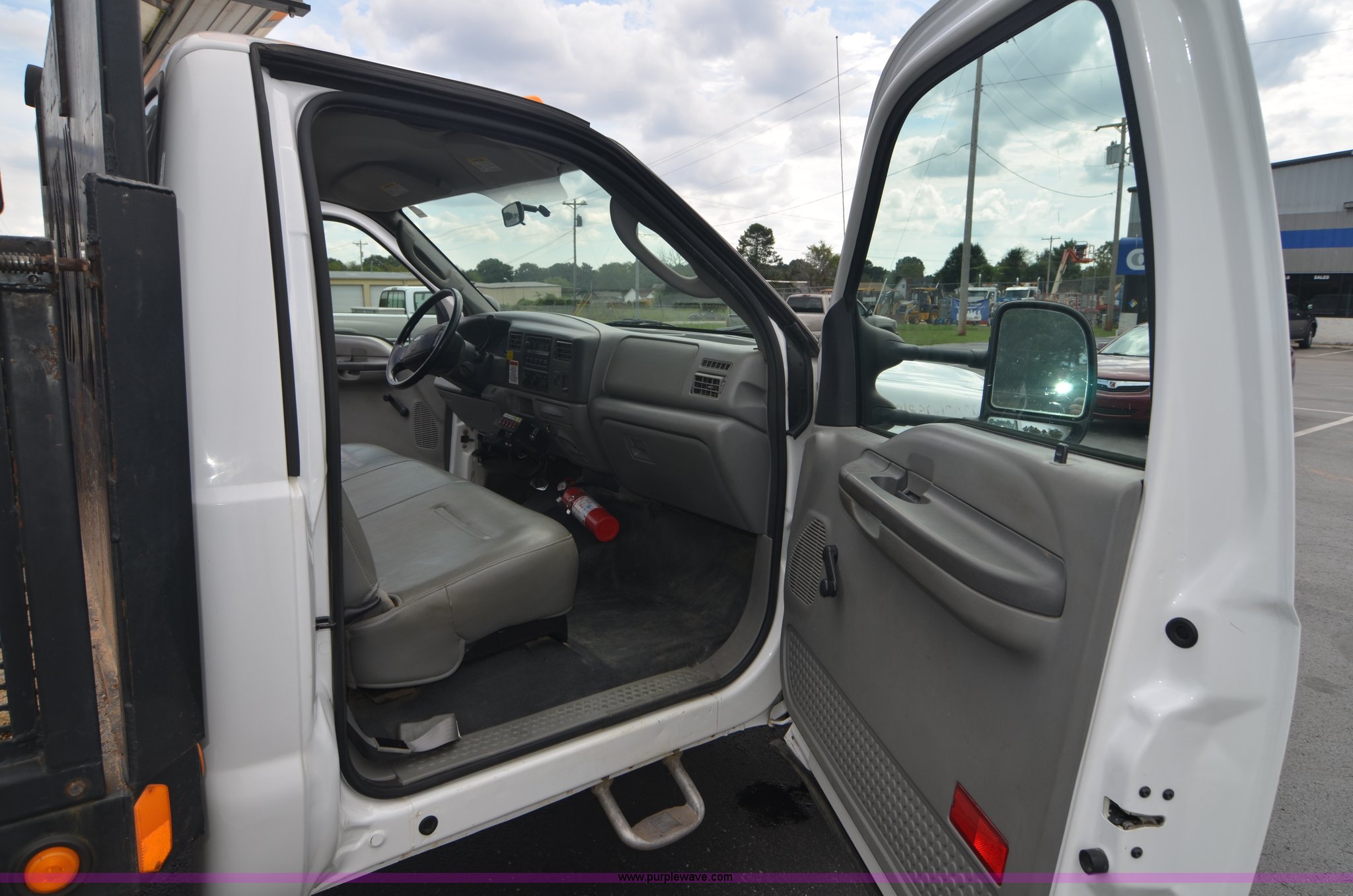 Purple Wave is selling a used Flat Bed Truck in Alabama. This item is a 2004 Ford F450 Super Duty utility truck with the following: 171,773 miles on odometer, 6.0L V8 OHV 32V turbo diesel engine, Automatic transmission, AC and heat, Cruise, AM/FM, Manual windows and locks, Vinyl interior, 12' stake bed, Fold down sides, Hydraulic lift gate, Overhead utility lights, Receiver hitch, Trailer wiring, 225/70R19.5 tires, GVWR 15,000 lbs, FAWR 6,000 lbs, RAWR 11,000 lbs, EIN 498304RA