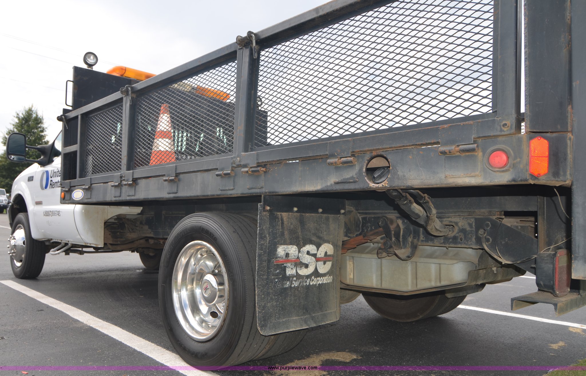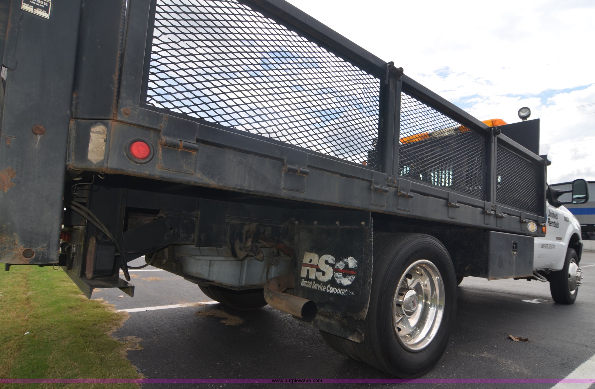 2004 Ford F450 Super Duty utility truck. 171,773 miles on odometer, 6.0L V8 OHV 32V turbo diesel engine, Automatic transmission, AC and heat, Cruise, AM/FM, Manual windows and locks, Vinyl interior, 12' stake bed Fold down sides, Hydraulic lift gate, Overhead utility lights, Receiver hitch, Trailer wiring, 225/70R19.5 tires, GVWR 15,000 lbs, FAWR 6,000 lbs, RAWR 11,000 lbs, EIN 498304RA. Title distribution may be delayed up to 30 days from verification of funds. 1FDXF46P54EB72649. View equipment video. United Rentals - Muscle Shoals. 1002 E 2nd St. Muscle Shoals, AL 35661