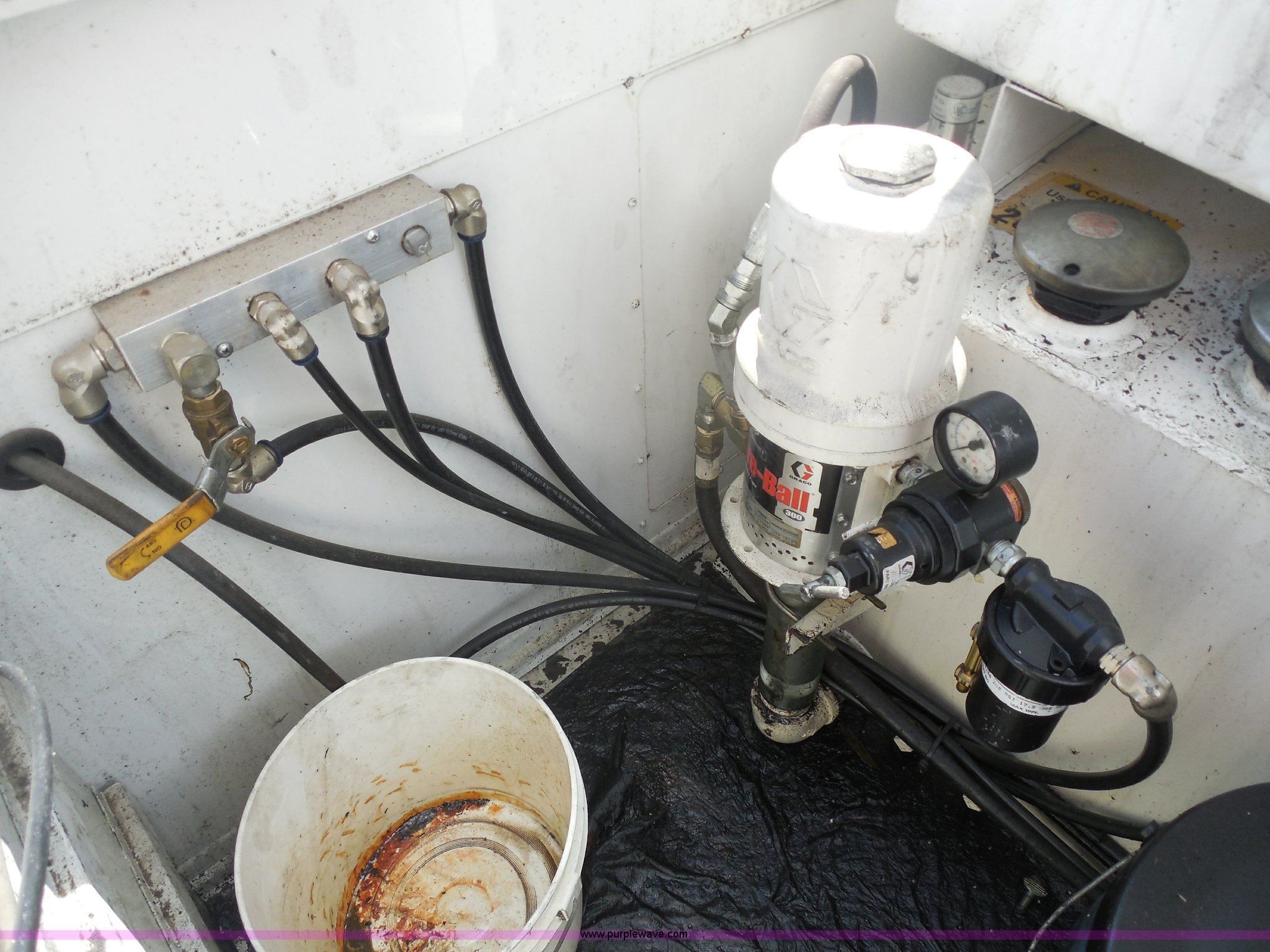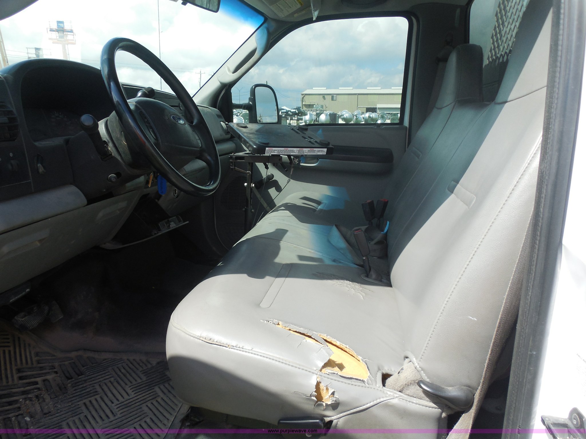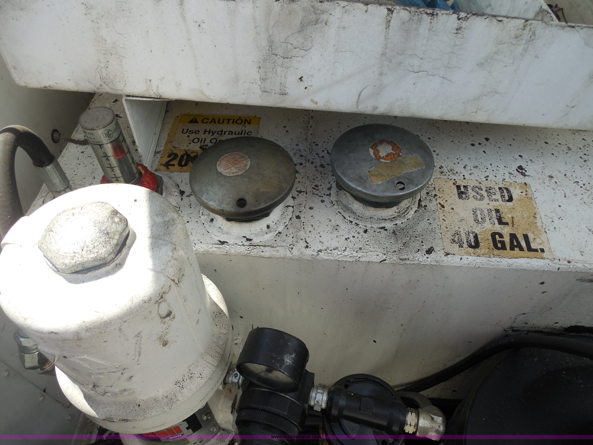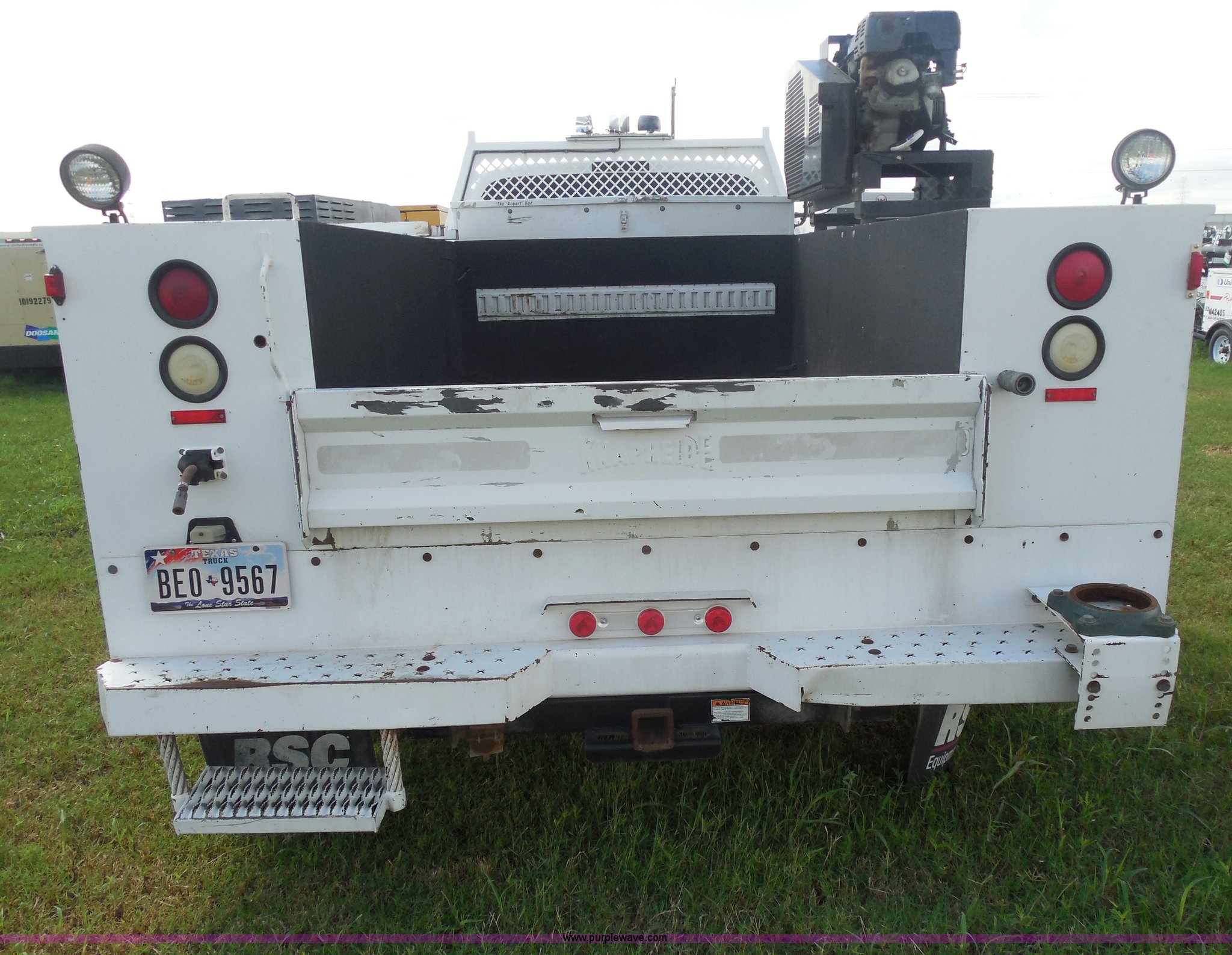 Purple Wave is selling a used Service Truck in Texas. This item is a 2007 Ford F550 service truck with the following: 140,022 actual miles, 6.0L V8 OHV 32V turbo diesel engine, Automatic transmission, AC and heat, Tilt, Cruise, AM/FM/CD, Manual windows and locks, Vinyl interior, Auxiliary control panel, Knapheide utility bed, Model 6132D54J, (3) oil/hydraulic tanks, Graco Fire-Ball air powered pumps, Diaphragm pump for waste oil, Champion air compressor, Model AS2-SH09-CHP, Honda 9 HP gas engine, Dead battery, (3) hose reels, Grease/hydraulic/oil,, Front tow hooks, 225/70R19.5 tires, EIN 671490RA